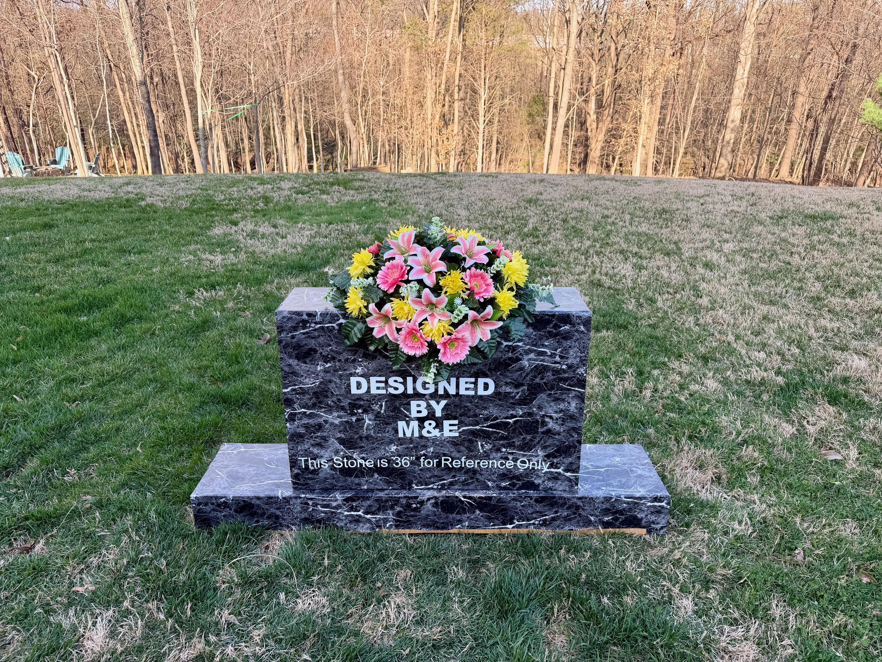 - Saddle arrangement photos are shown on either a 36” or 24” headstone only as examples.