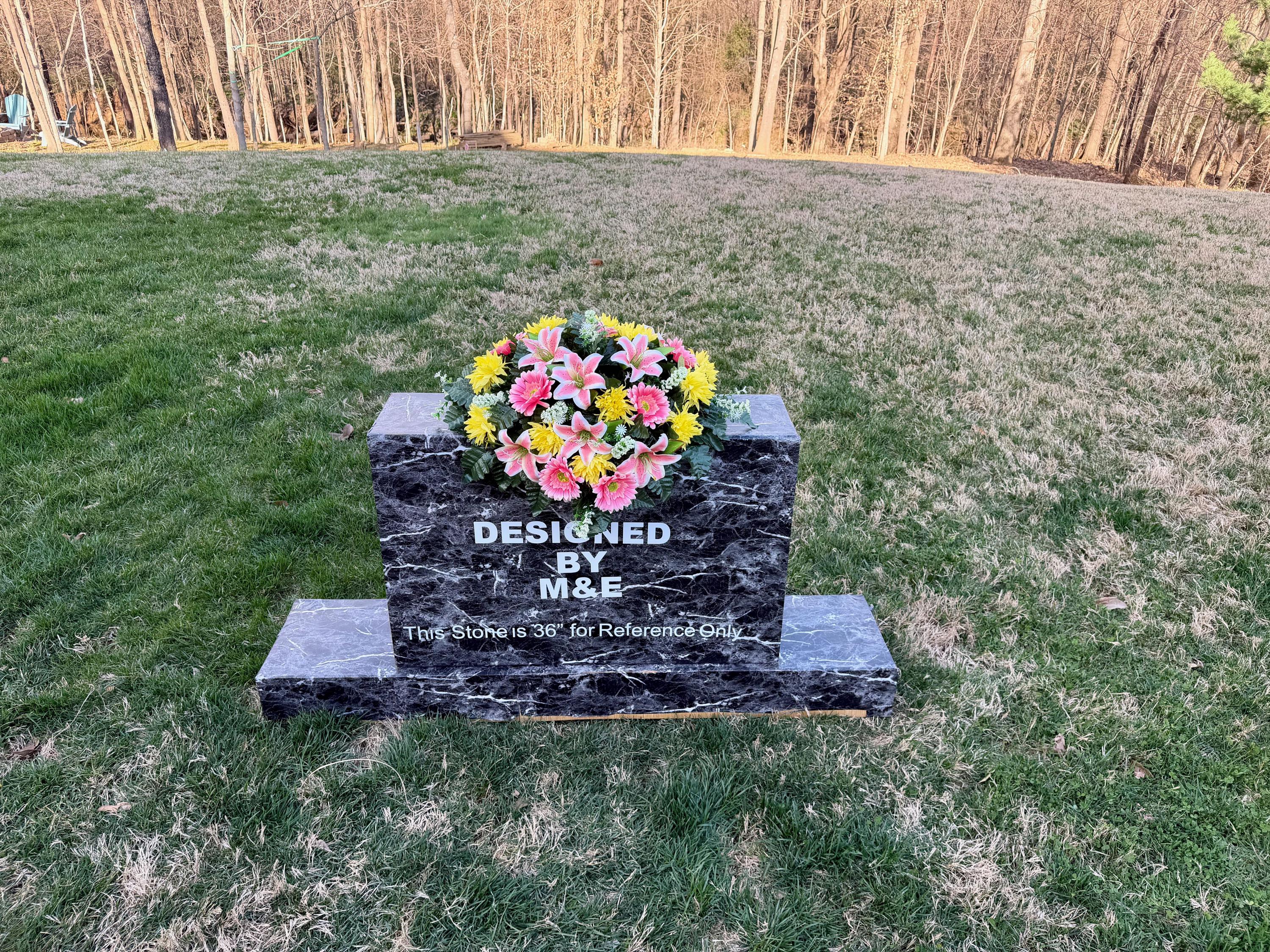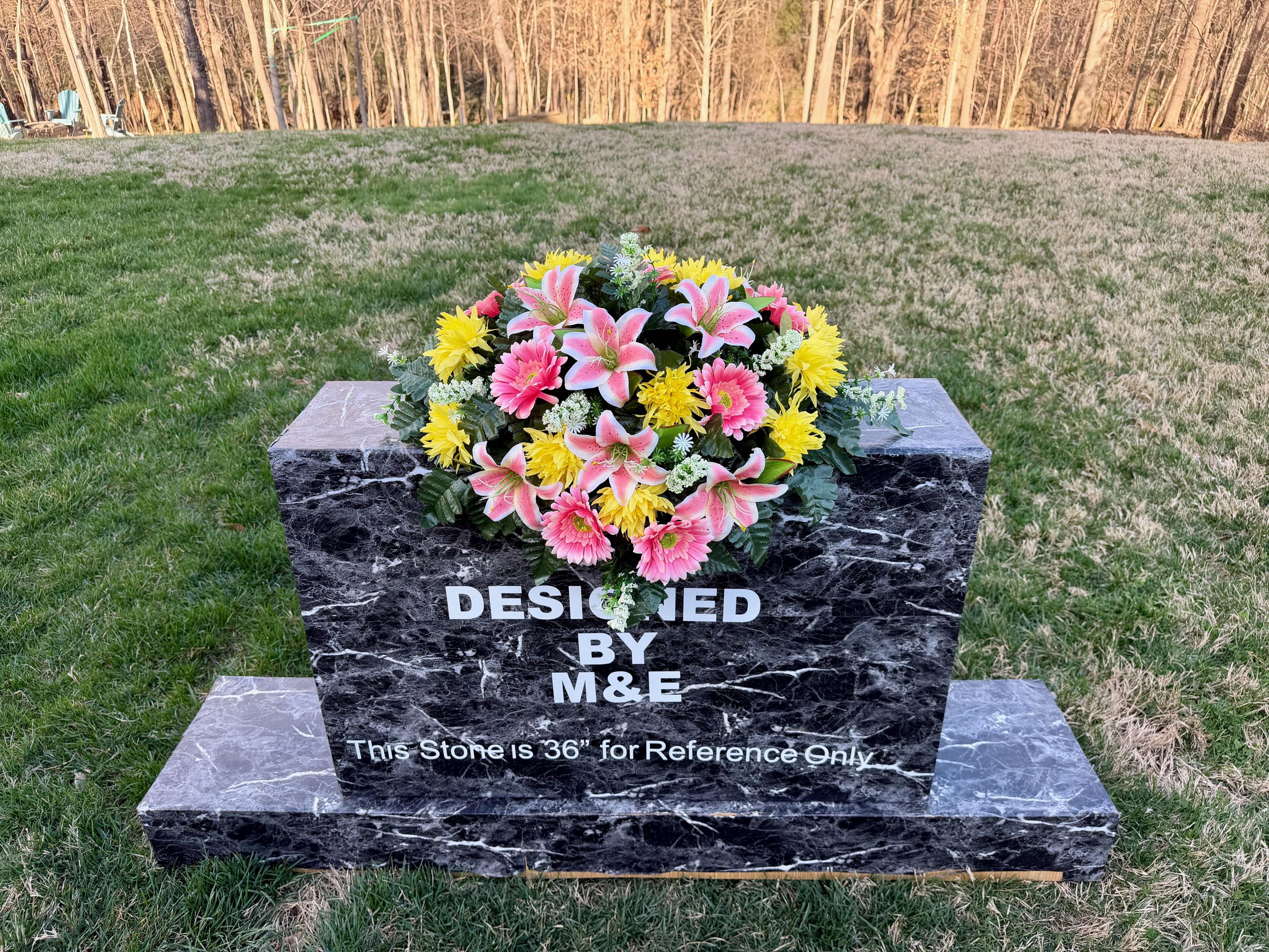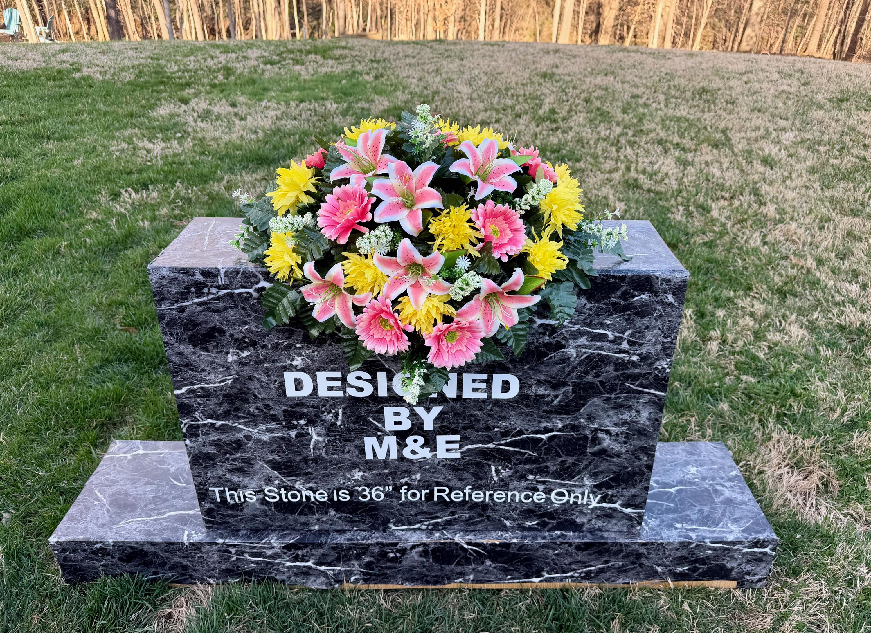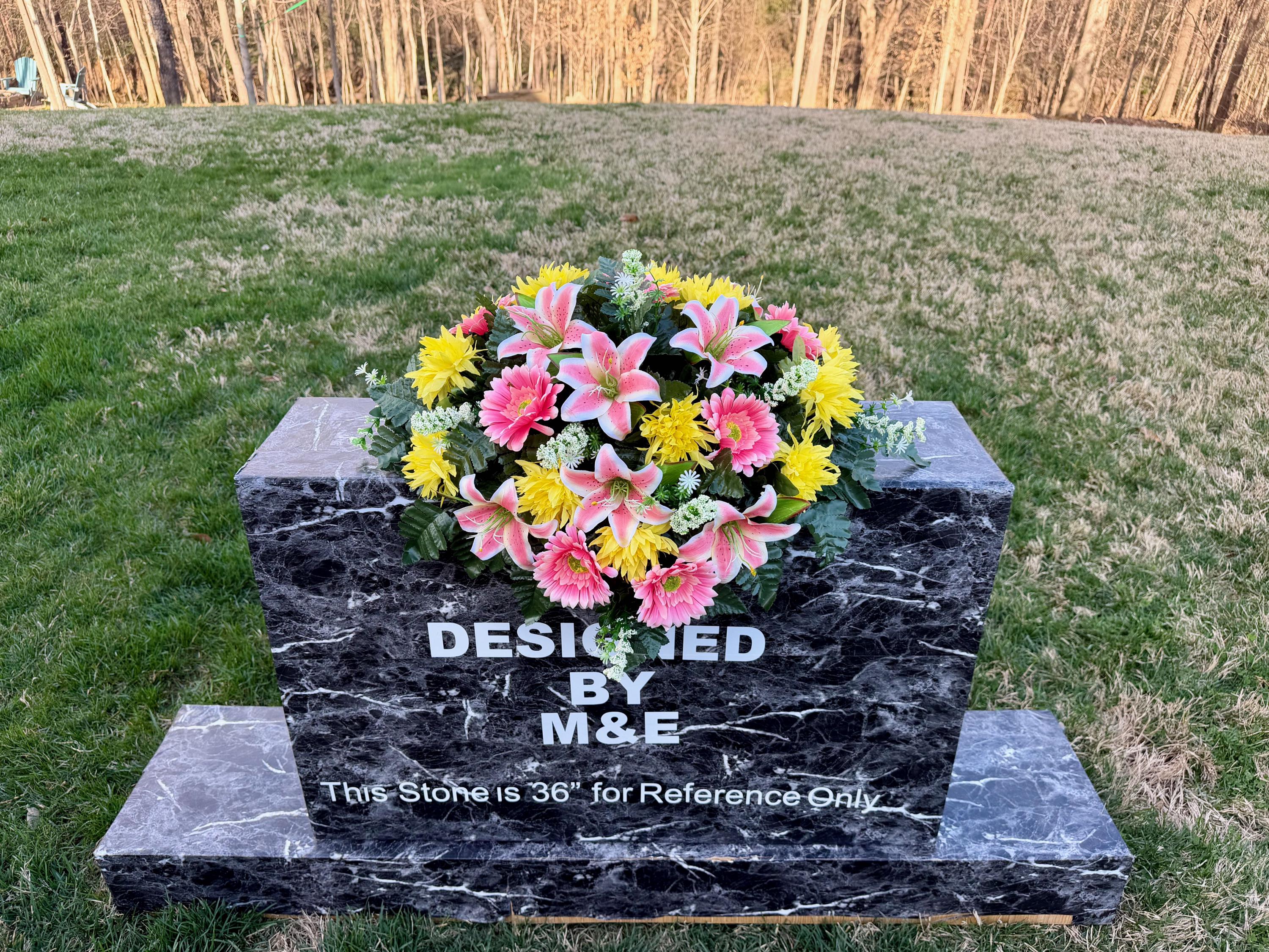 We’re a small, family-operated business consisting of myself, my husband, and my daughter. We personally manage every order and strive for excellent customer service. All our arrangements use high-quality silk flowers, though all silk blooms may fade over time. Each stem is glued into foam to withstand the elements. Designed by M&E uses only premium silks, and we put genuine care into every piece we create. Rest assured, the arrangement shown in our photos is exactly the one you’ll receive, as I design and assemble each one myself. If you’re searching for something unique or have a particular flower, color, or matching vases in mind, please contact me to discuss a custom order.