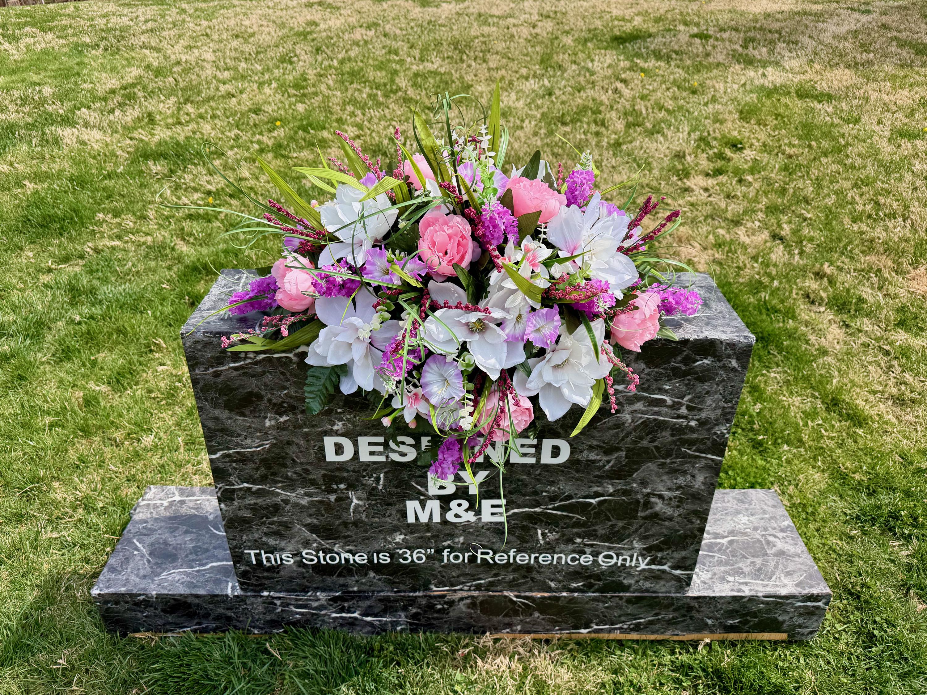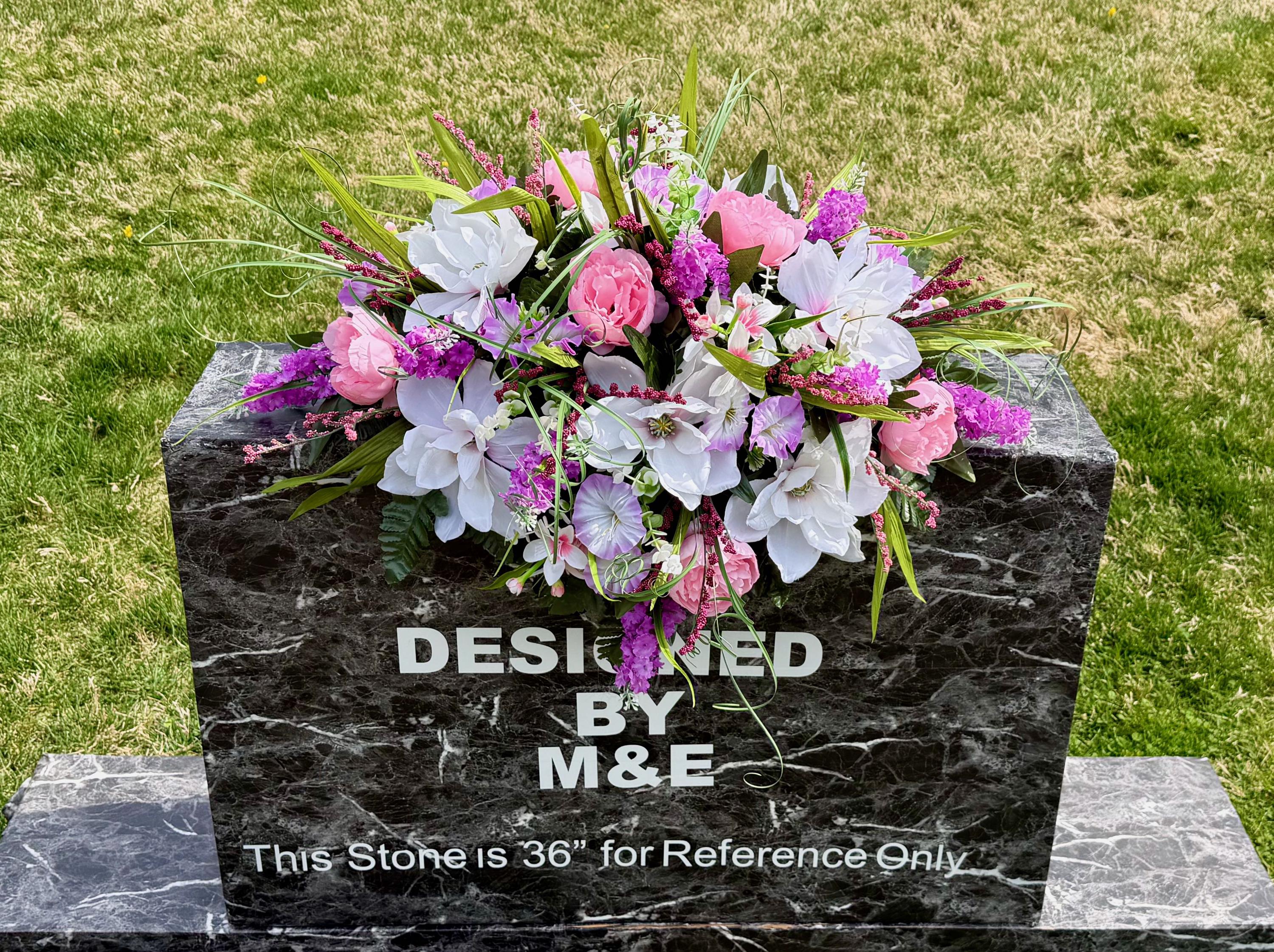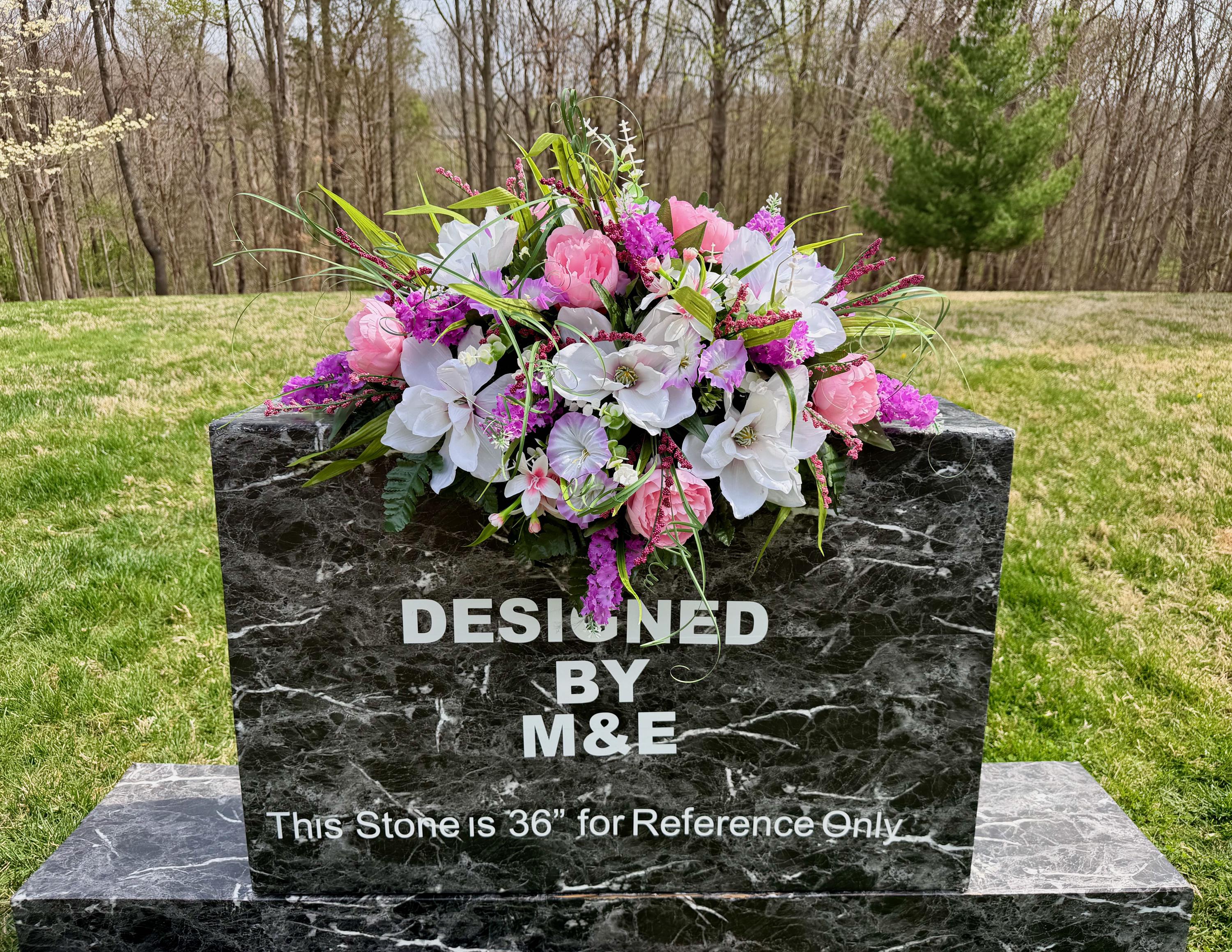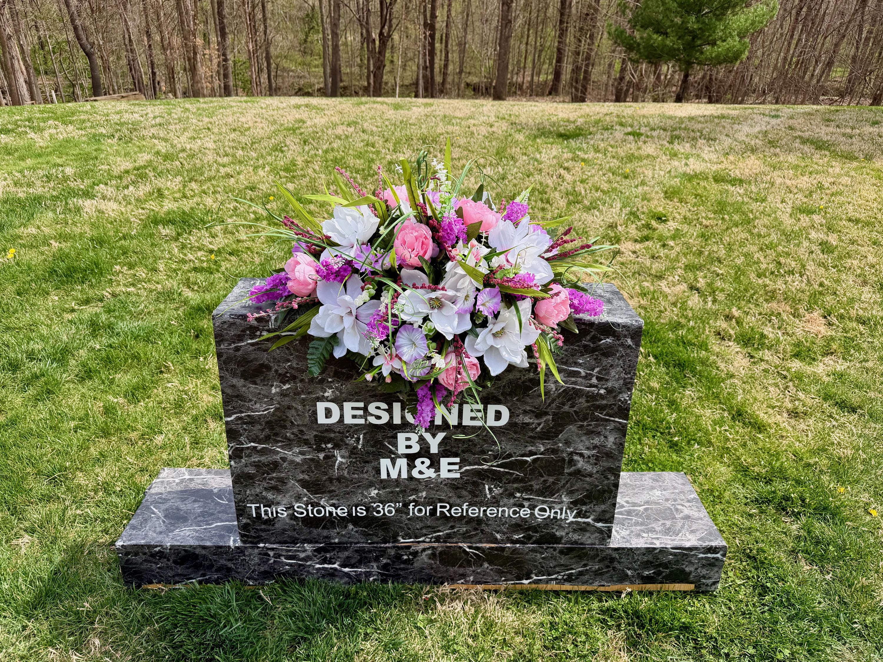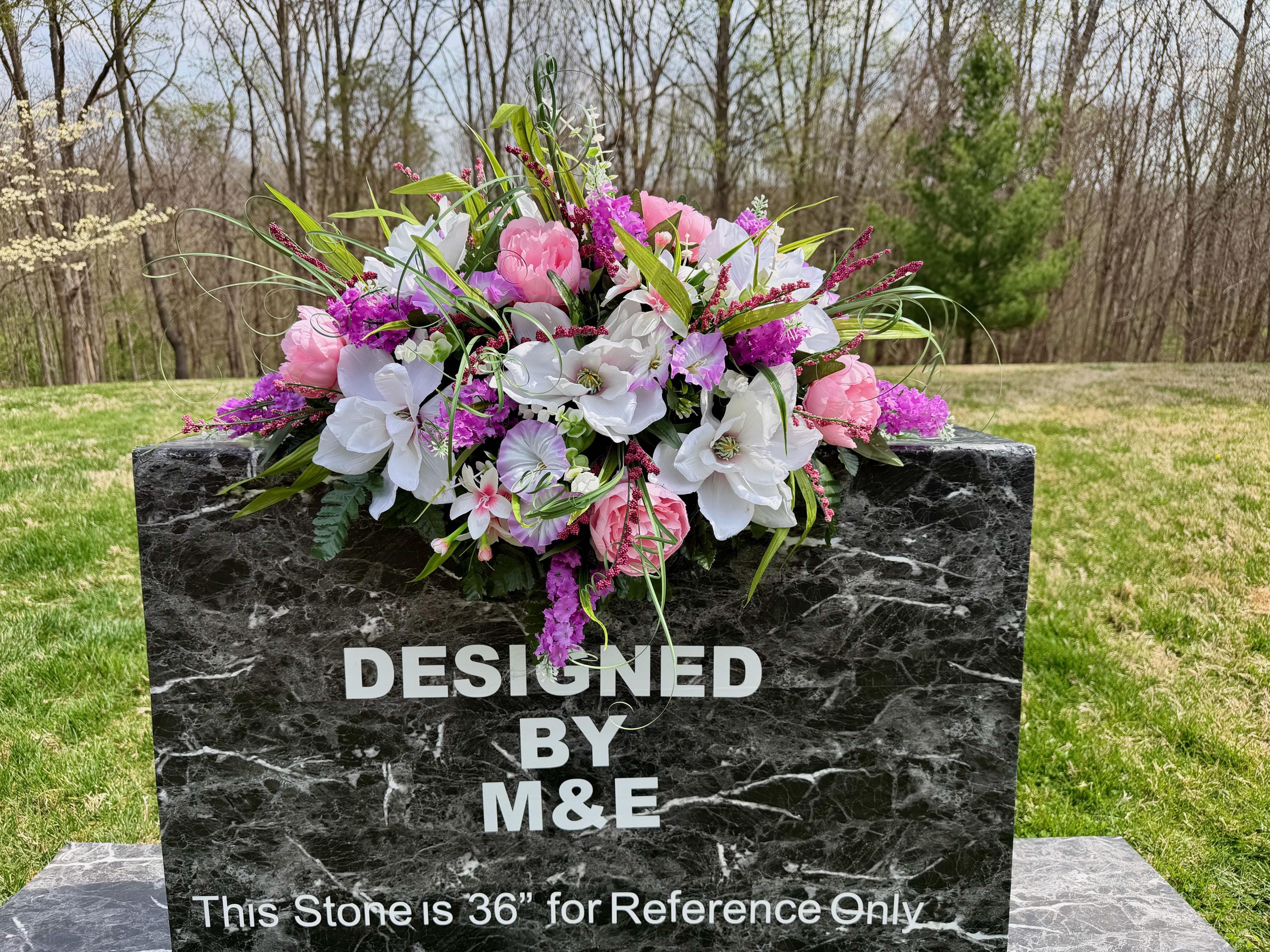 We’re a small, family-operated business consisting of myself, my husband, and my daughter. We personally manage every order and strive for excellent customer service. All our arrangements use high-quality silk flowers, though all silk blooms may fade over time. Each stem is glued into foam to withstand the elements. Designed by M&E uses only premium silks, and we put genuine care into every piece we create. Rest assured, the arrangement shown in our photos is exactly the one you’ll receive, as I design and assemble each one myself. If you’re searching for something unique or have a particular flower, color, or matching vases in mind, please contact me to discuss a custom order.