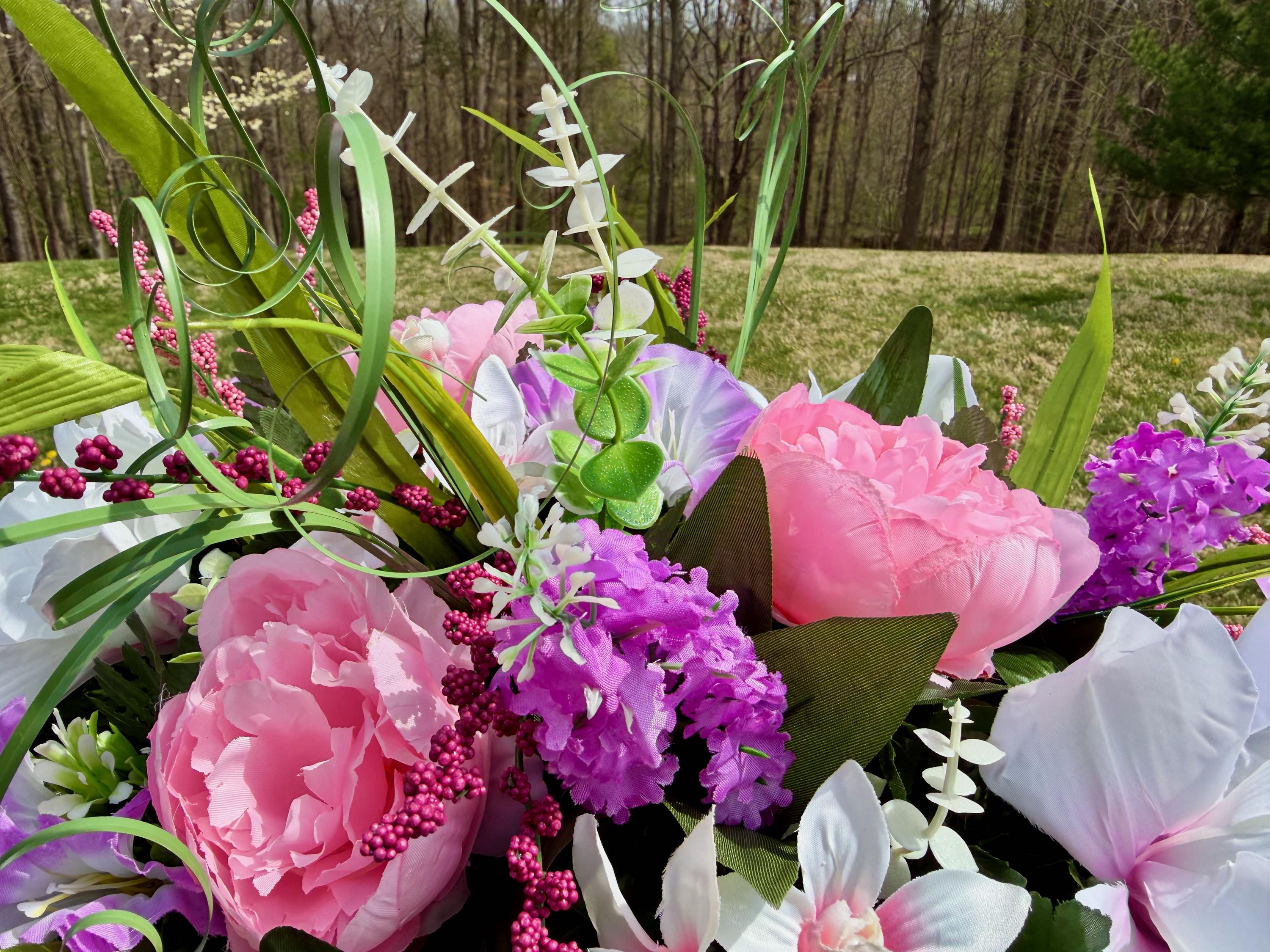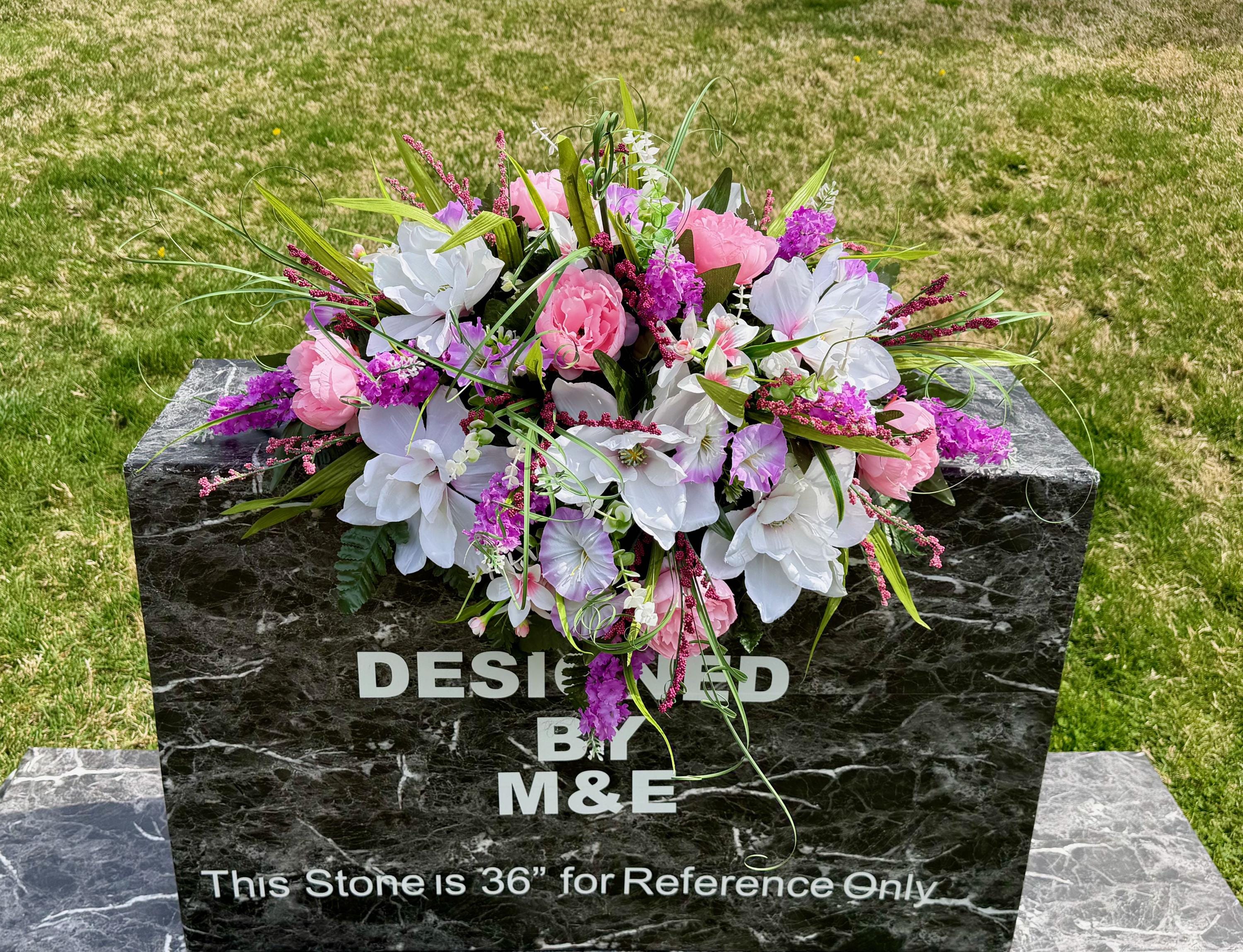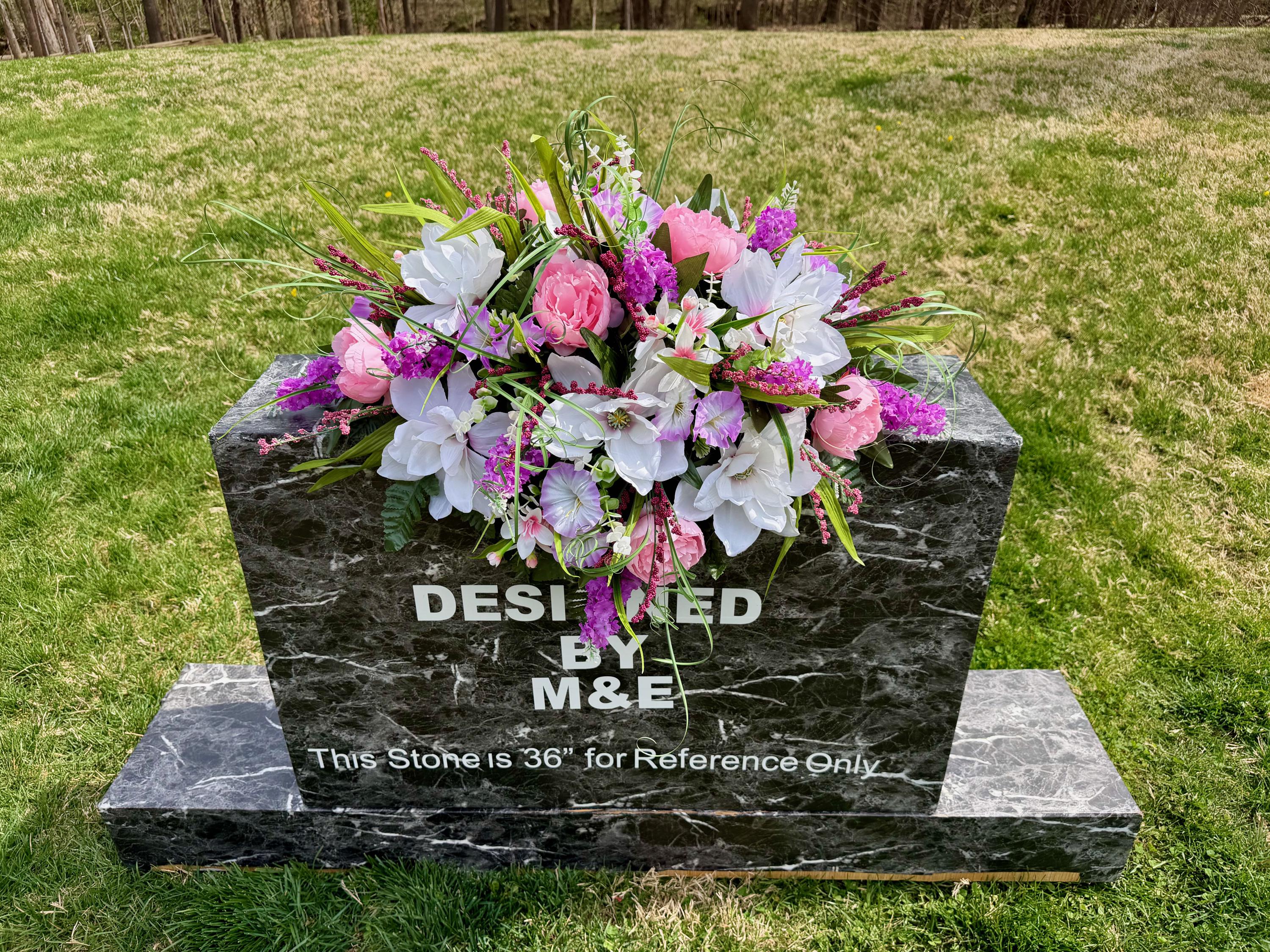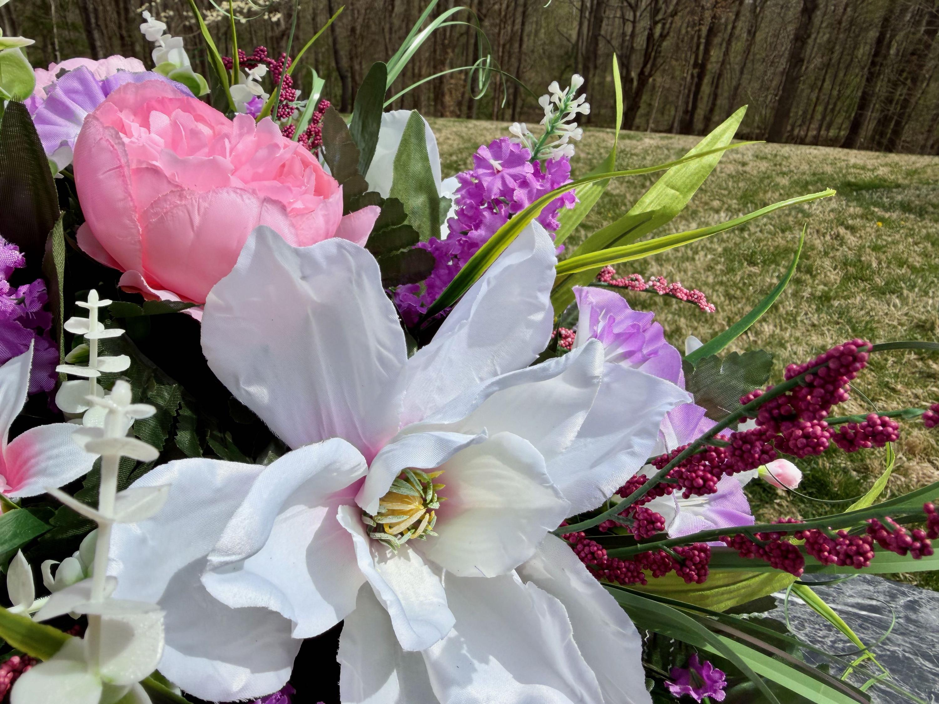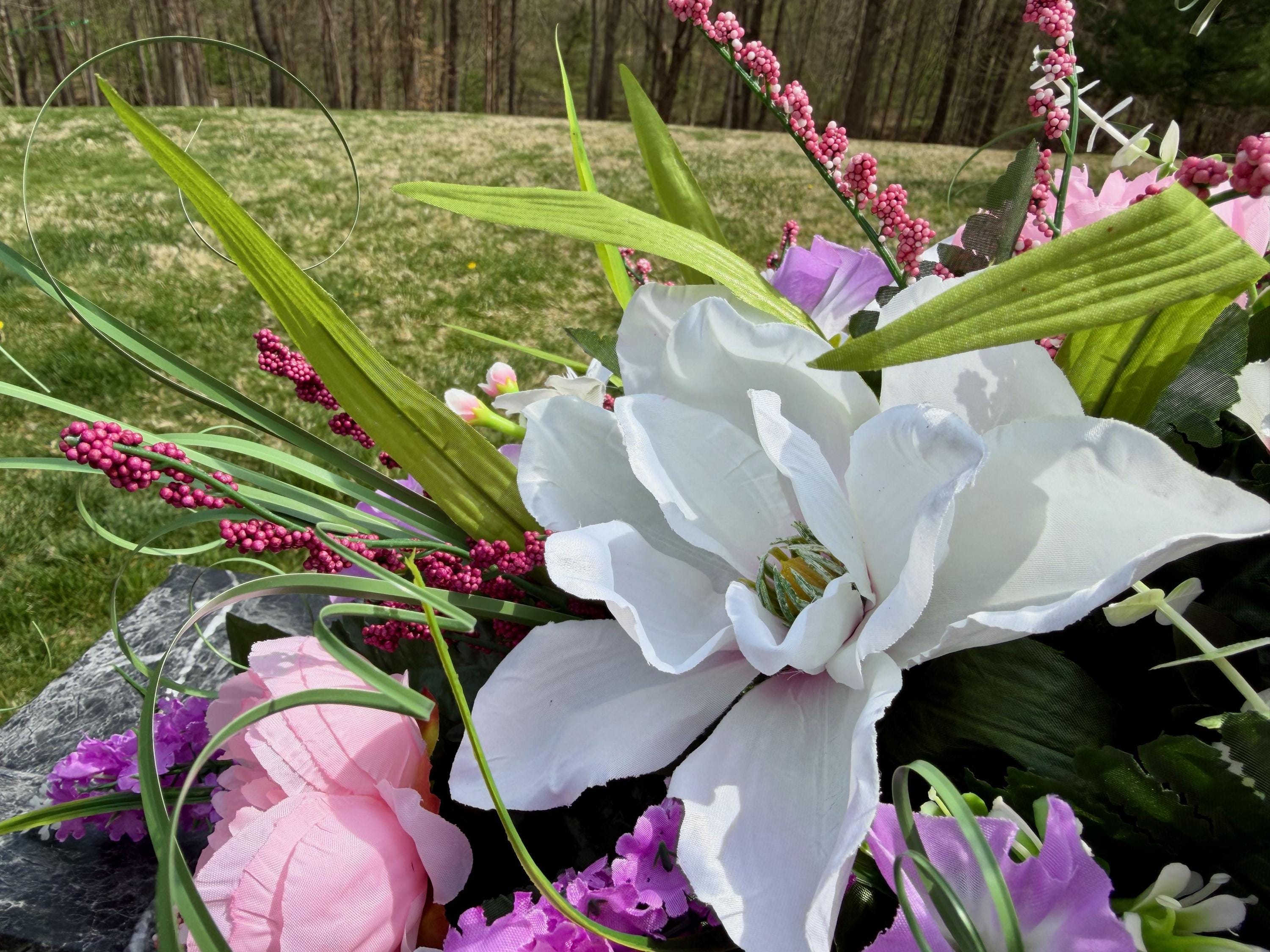 We’re a small, family-operated business consisting of myself, my husband, and my daughter. We personally manage every order and strive for excellent customer service. All our arrangements use high-quality silk flowers, though all silk blooms may fade over time. Each stem is glued into foam to withstand the elements. Designed by M&E uses only premium silks, and we put genuine care into every piece we create. Rest assured, the arrangement shown in our photos is exactly the one you’ll receive, as I design and assemble each one myself. If you’re searching for something unique or have a particular flower, color, or matching vases in mind, please contact me to discuss a custom order.