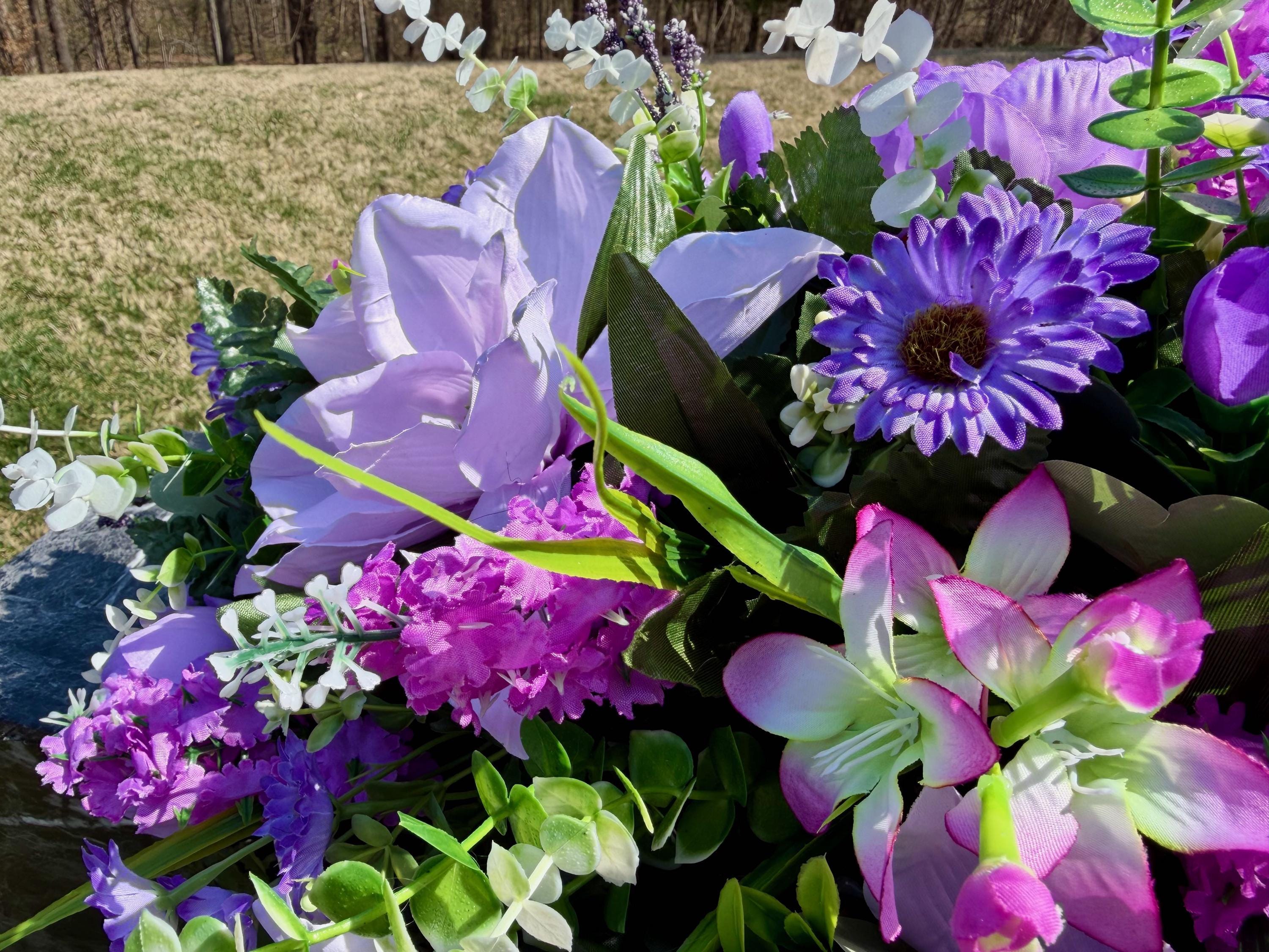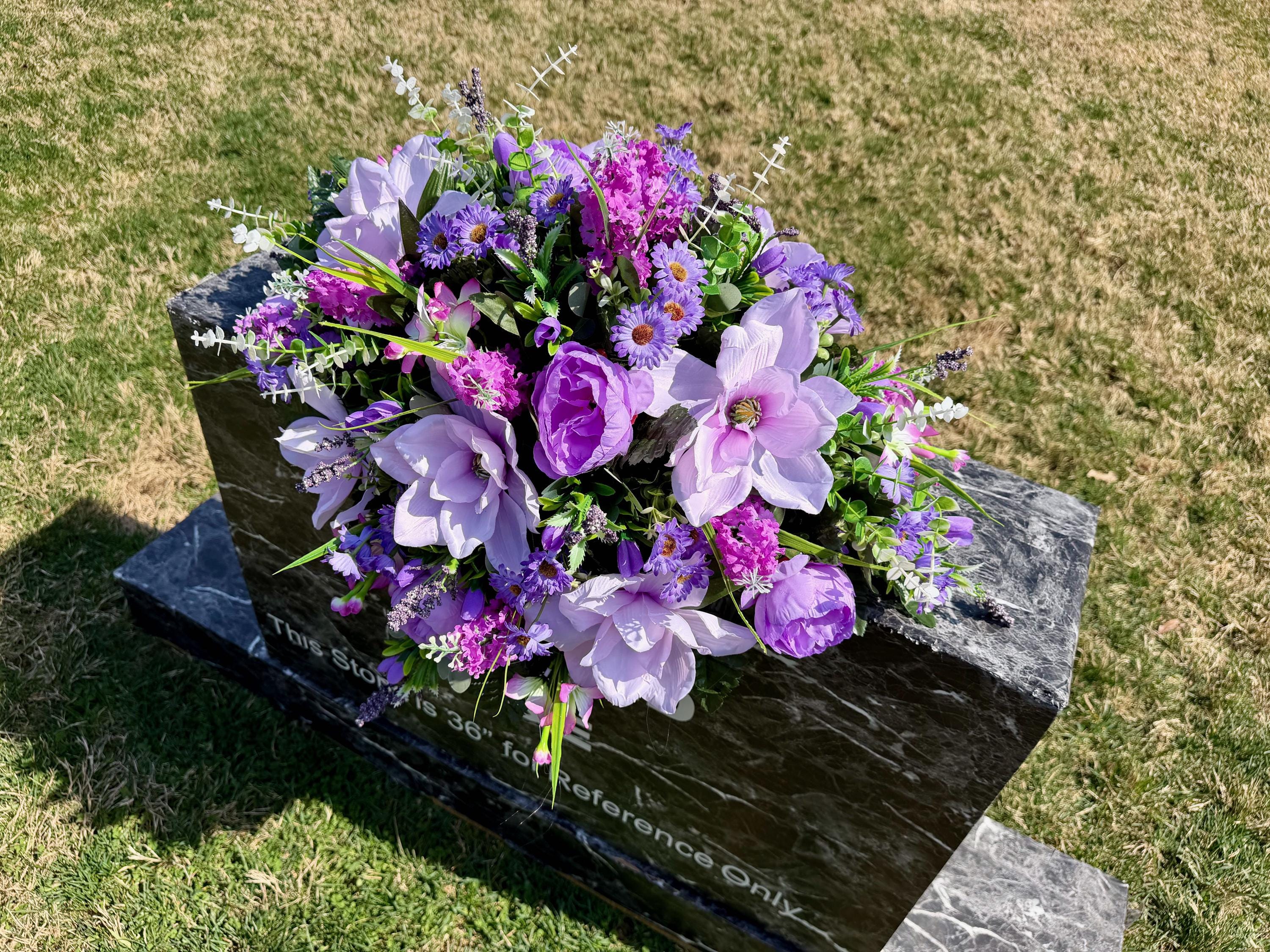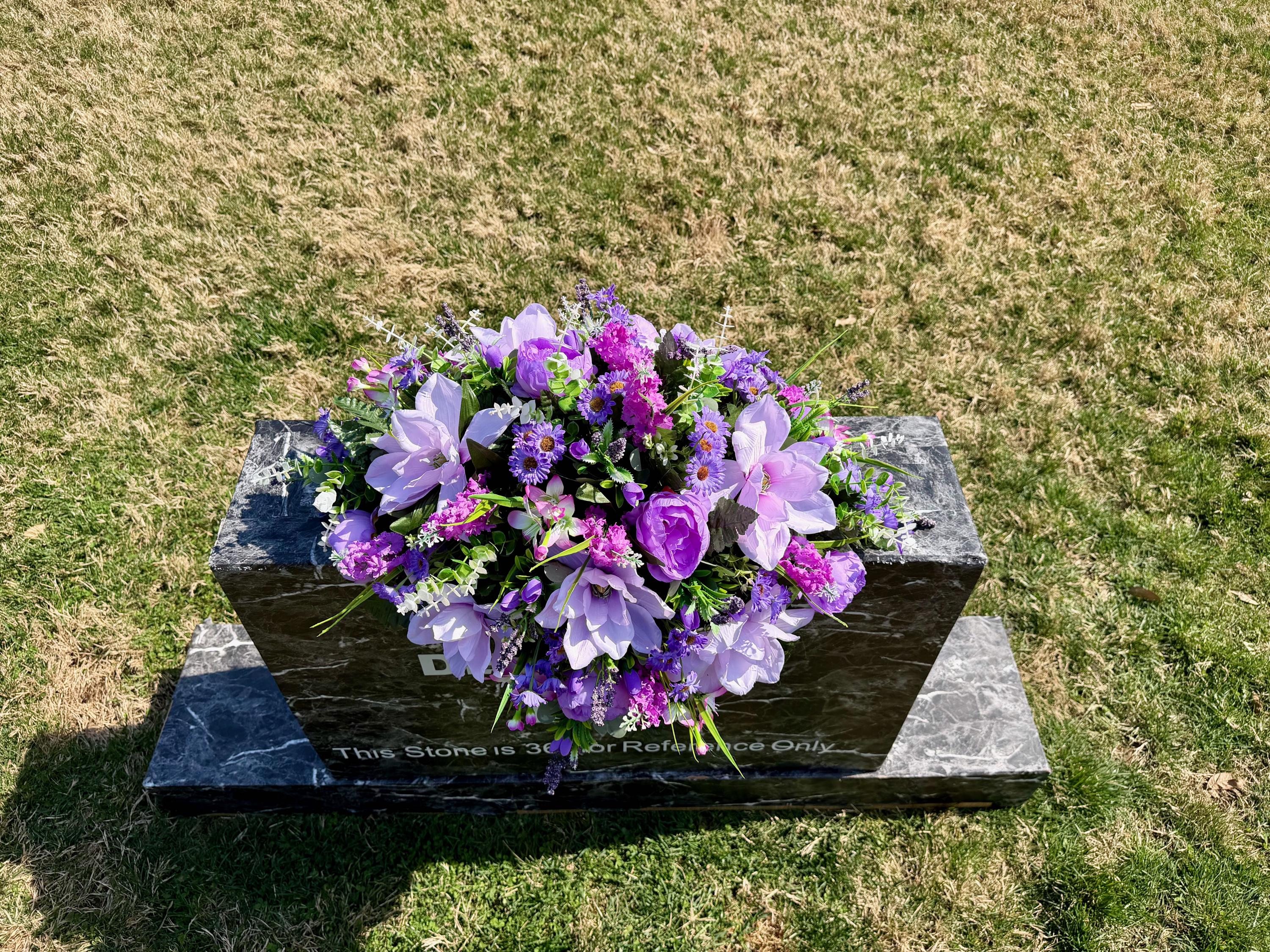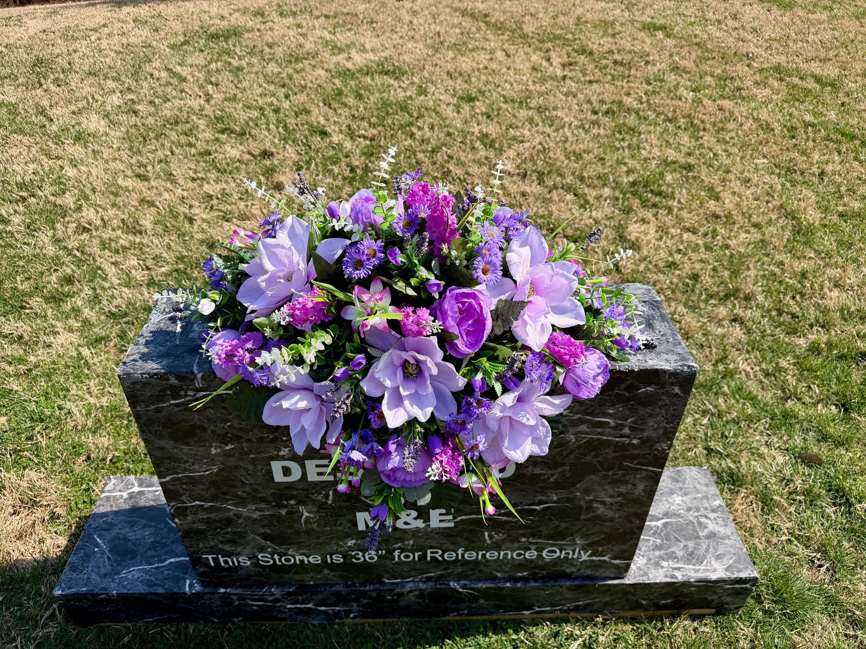 Violet and Greens Cemetery Saddle, Grave Decorations, Memorial Gravesite Flowers