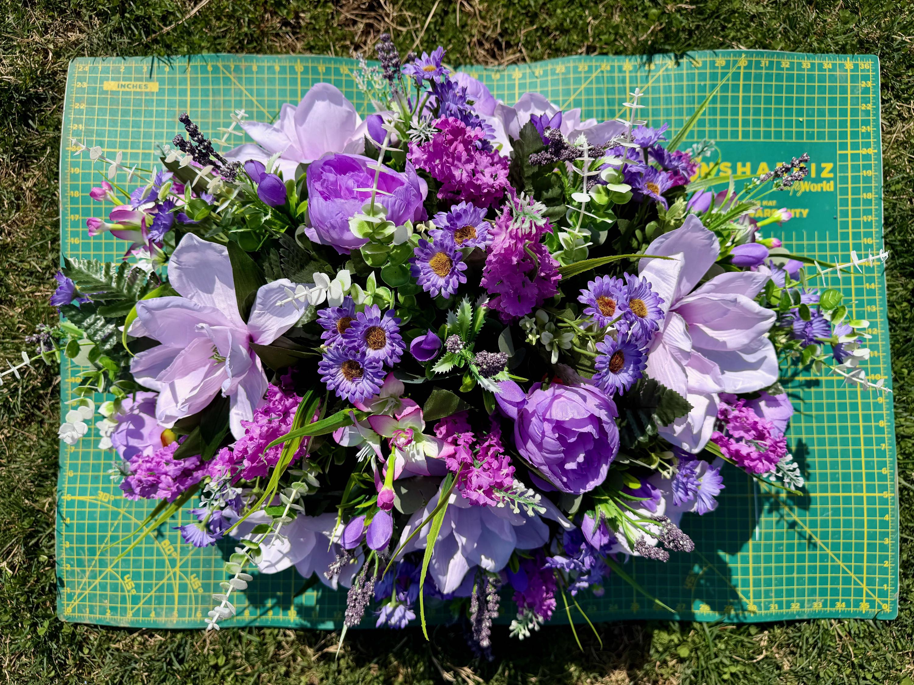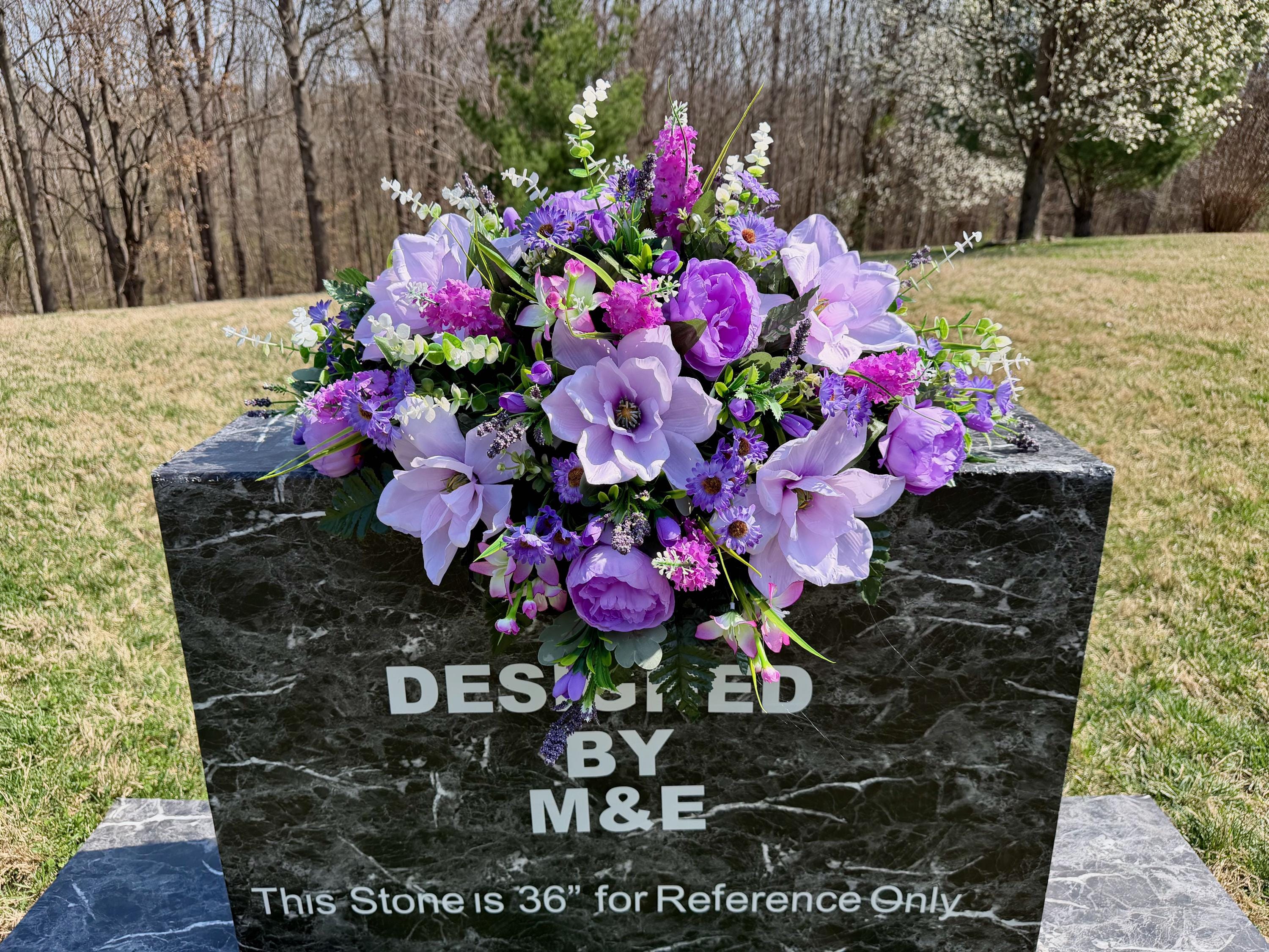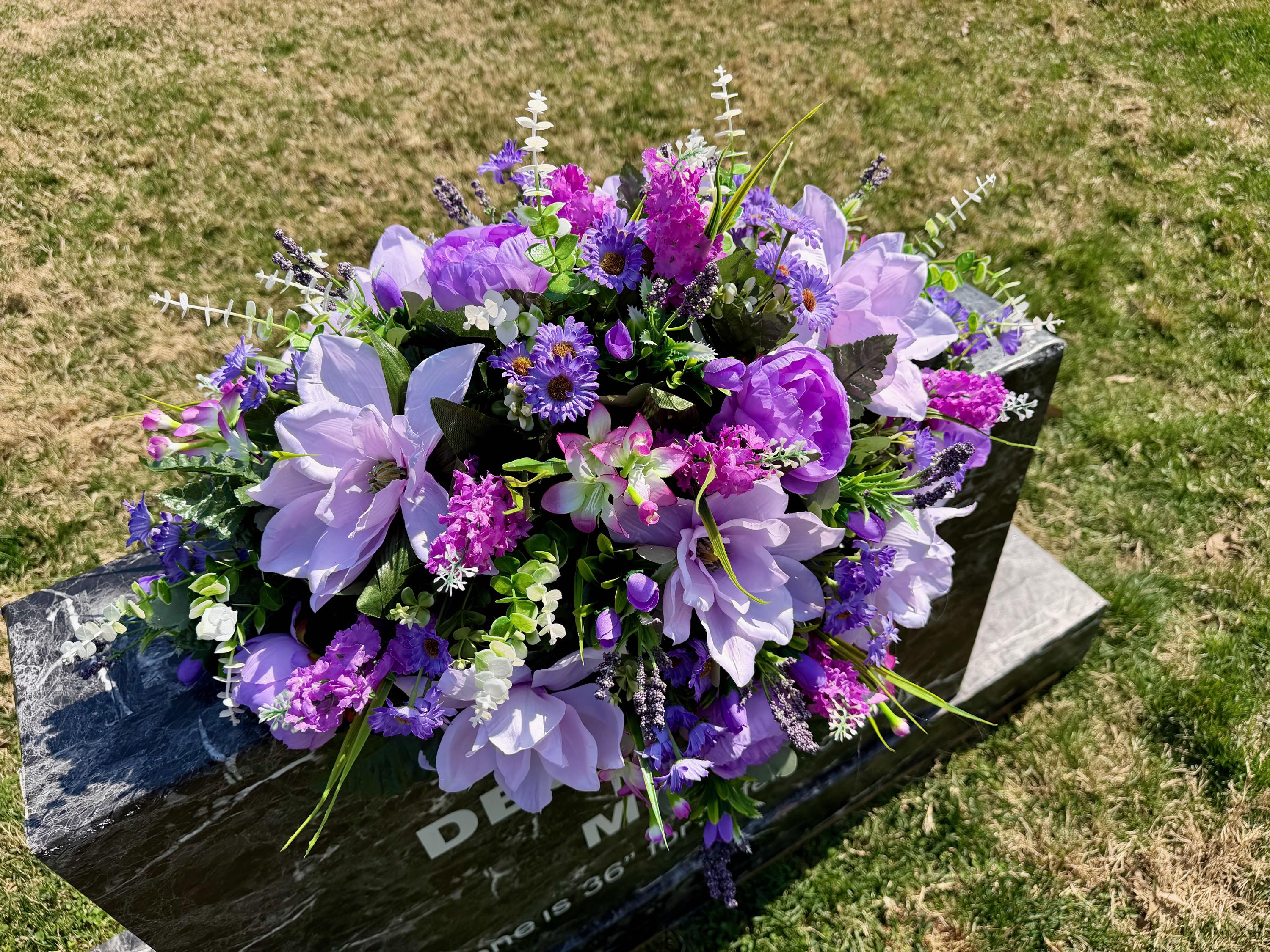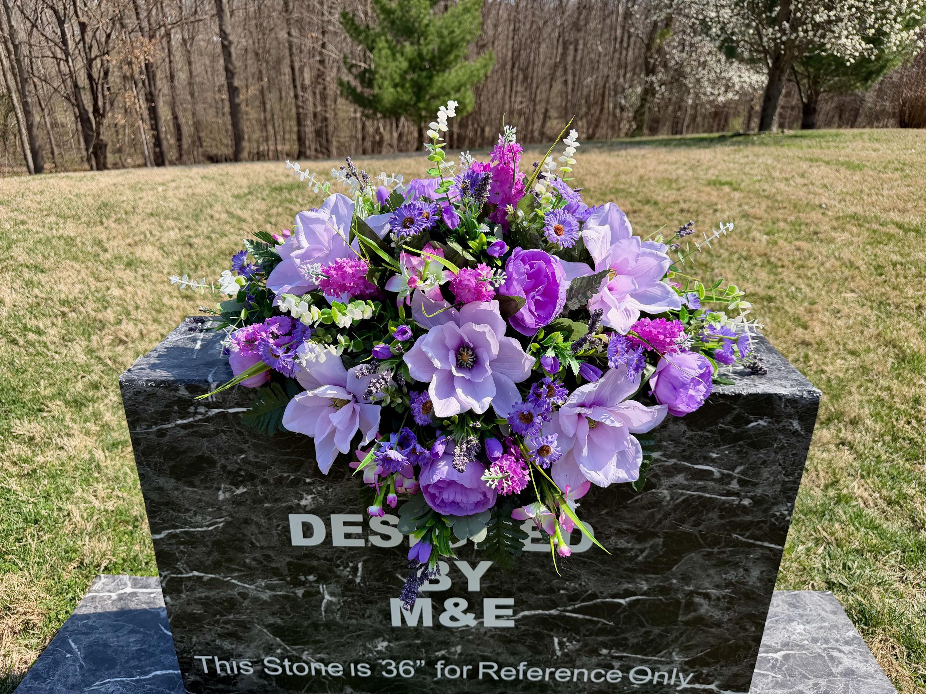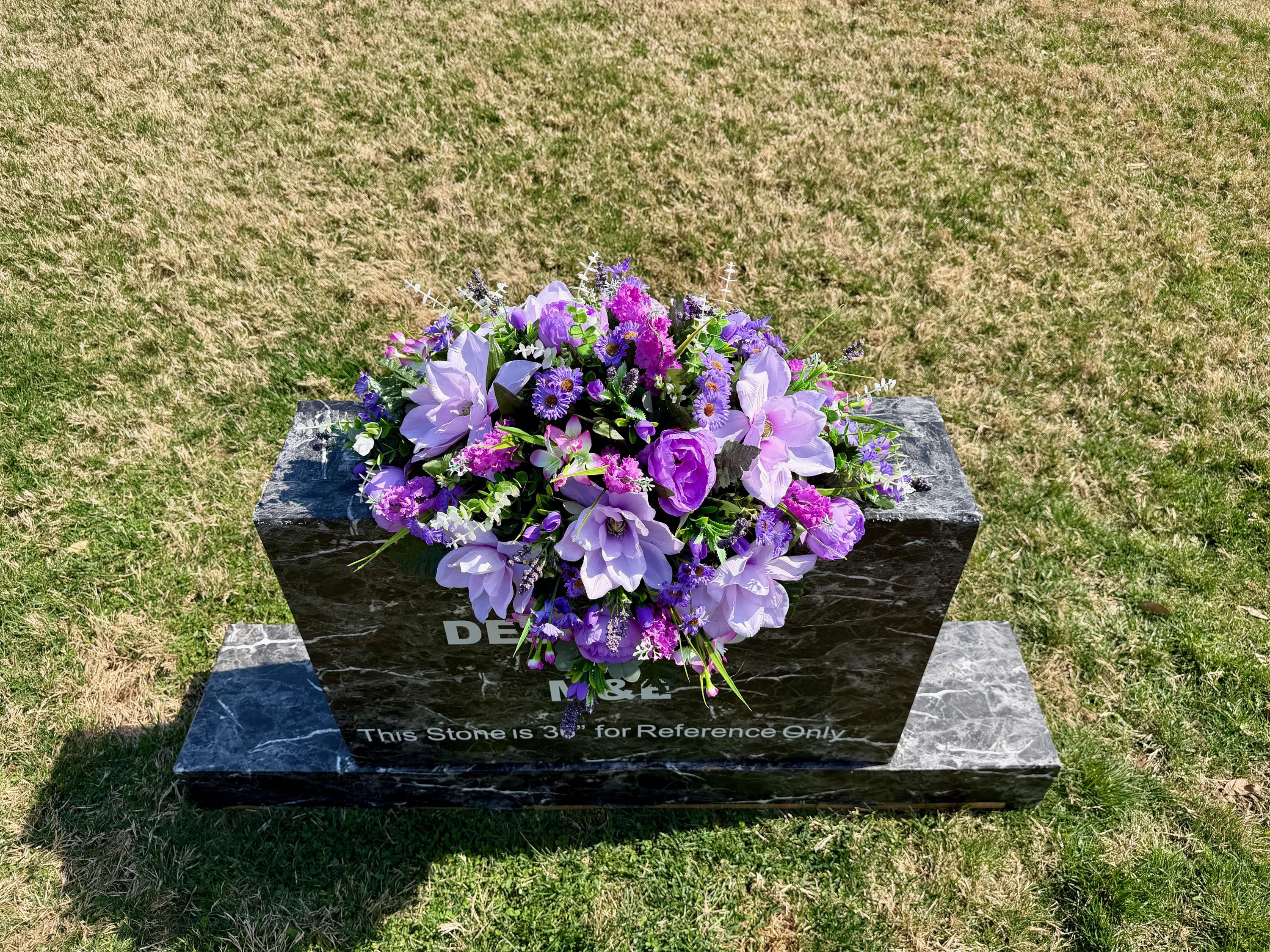 Violet and Greens Cemetery Saddle, Grave Decorations, Memorial Gravesite Flowers