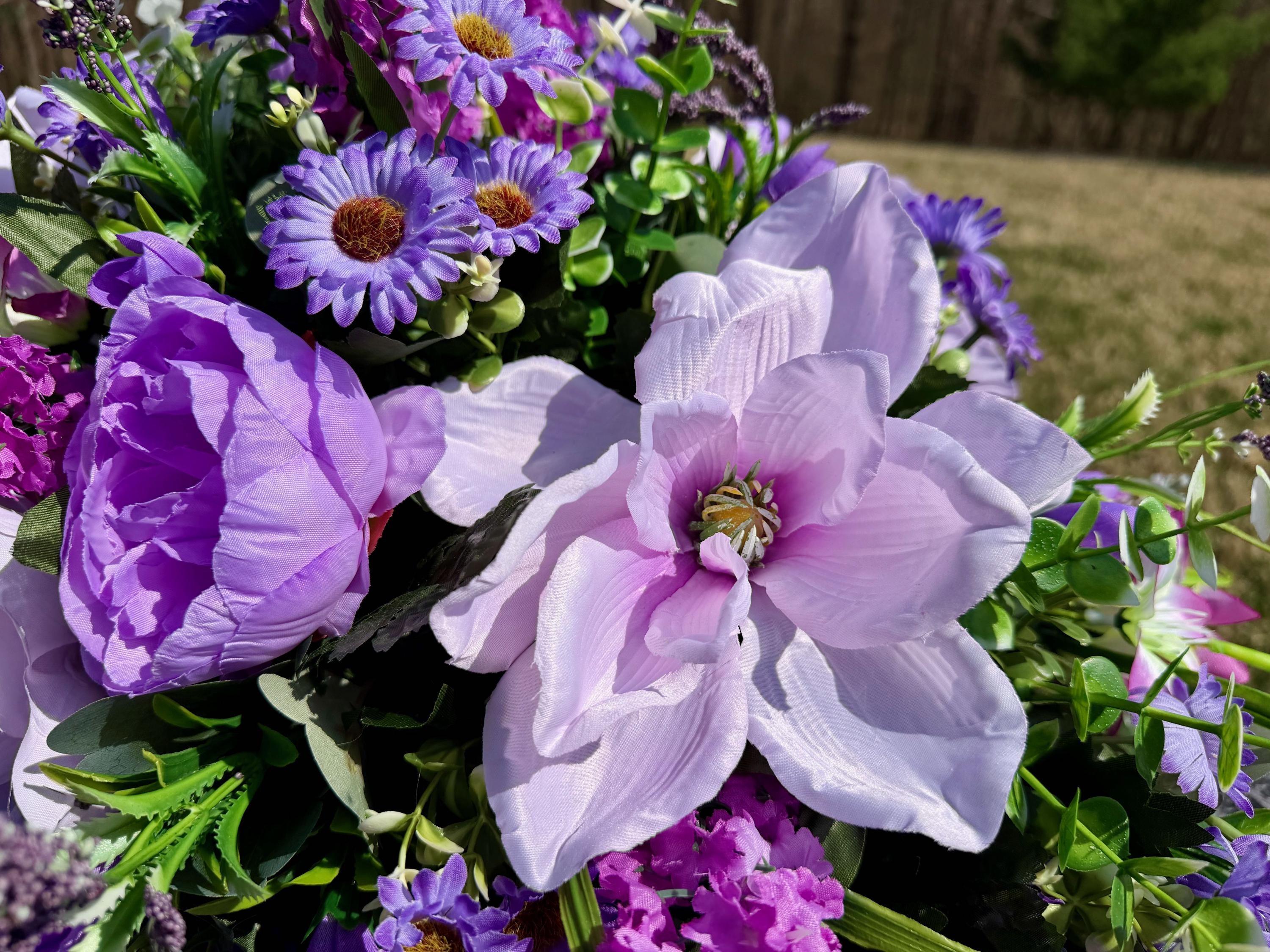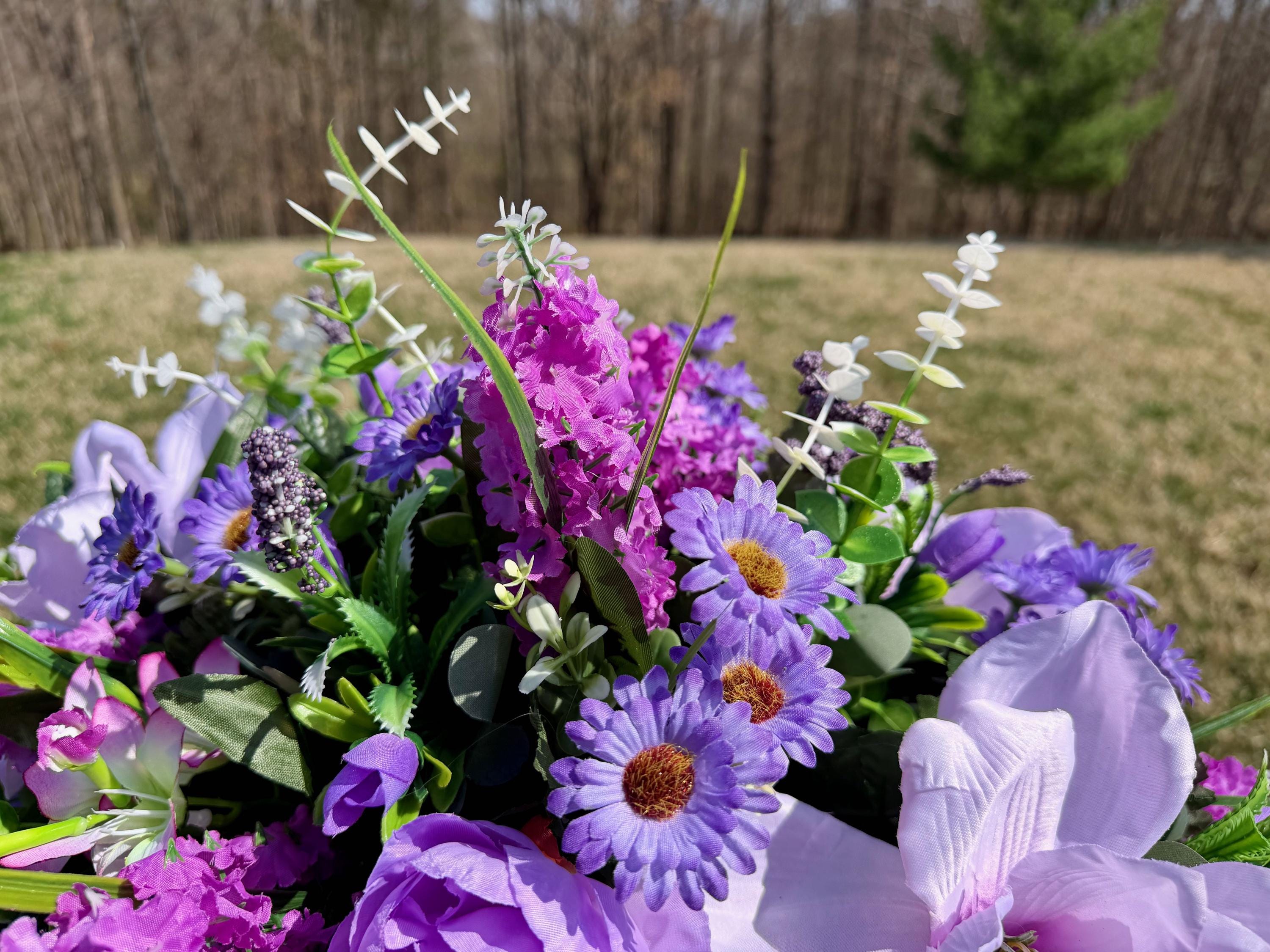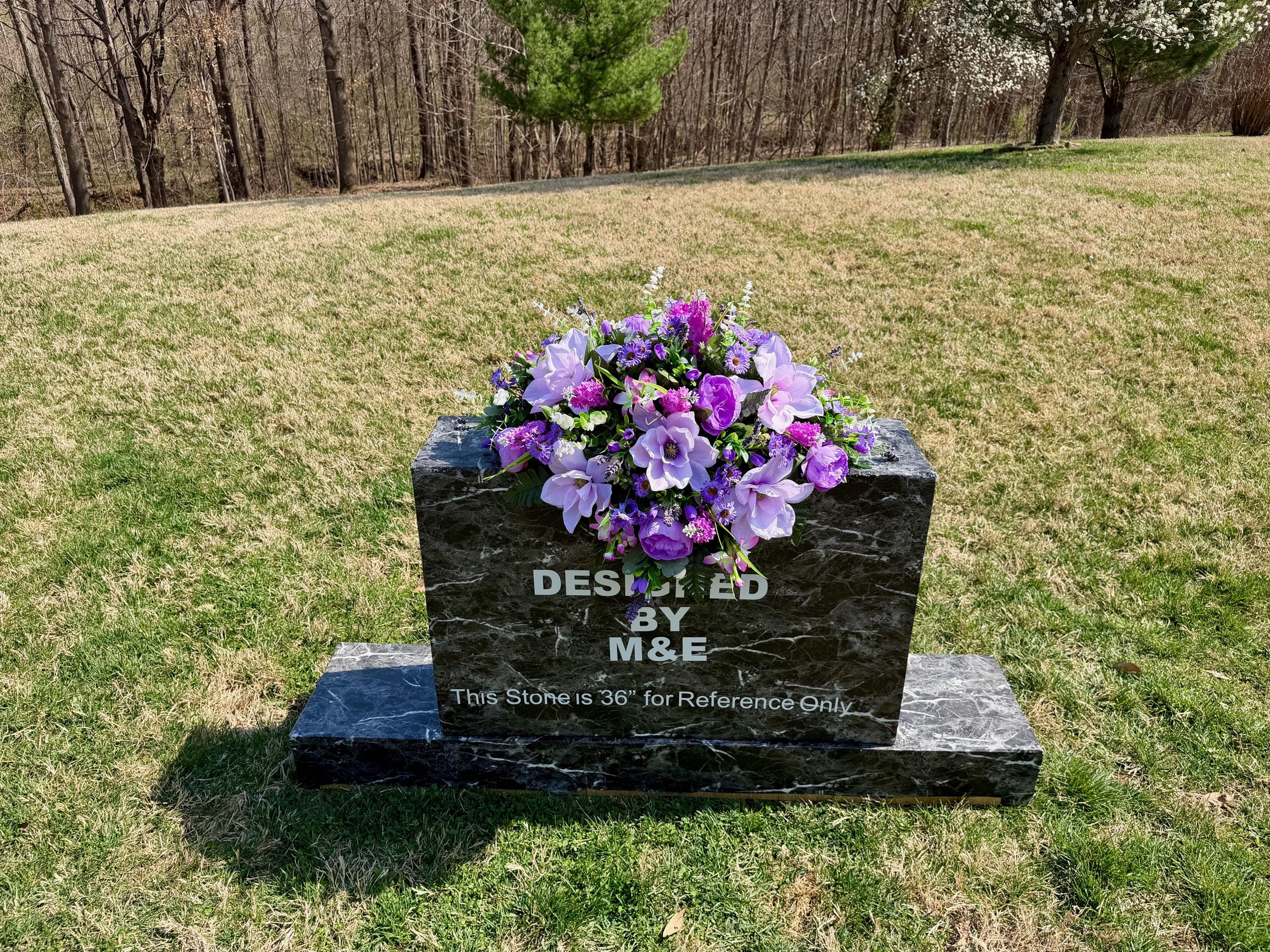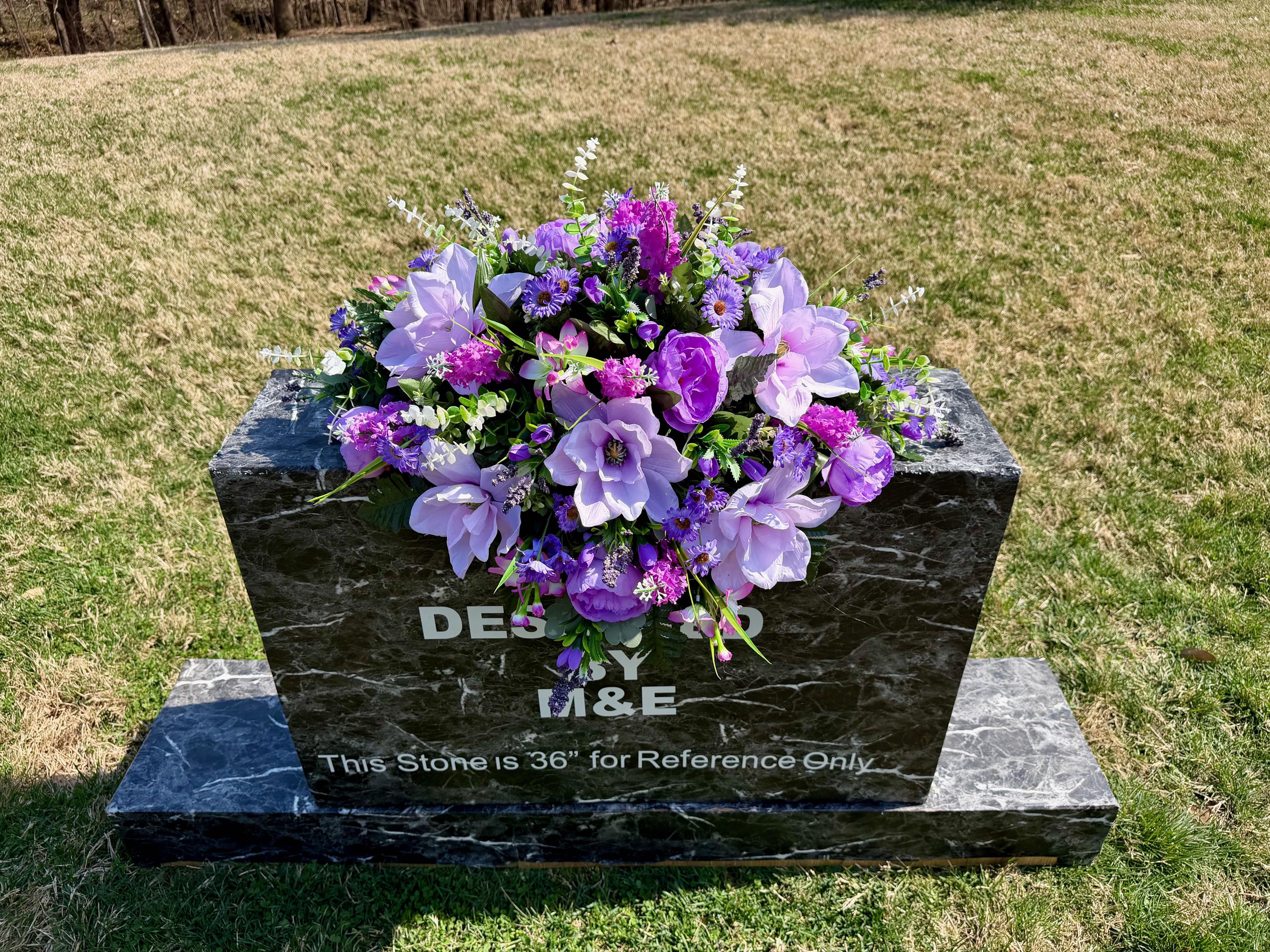 Violet and Greens Cemetery Saddle, Grave Decorations, Memorial Gravesite Flowers