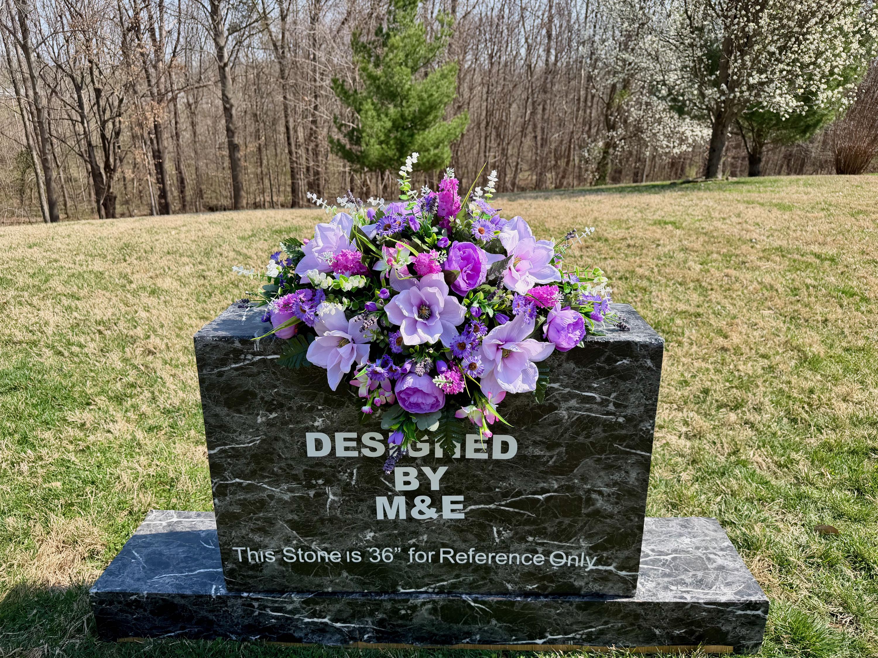 We’re a small, family-operated business consisting of myself, my husband, and my daughter. We personally manage every order and strive for excellent customer service. All our arrangements use high-quality silk flowers, though all silk blooms may fade over time. Each stem is glued into foam to withstand the elements. Designed by M&E uses only premium silks, and we put genuine care into every piece we create. Rest assured, the arrangement shown in our photos is exactly the one you’ll receive, as I design and assemble each one myself. If you’re searching for something unique or have a particular flower, color, or matching vases in mind, please contact me to discuss a custom order.