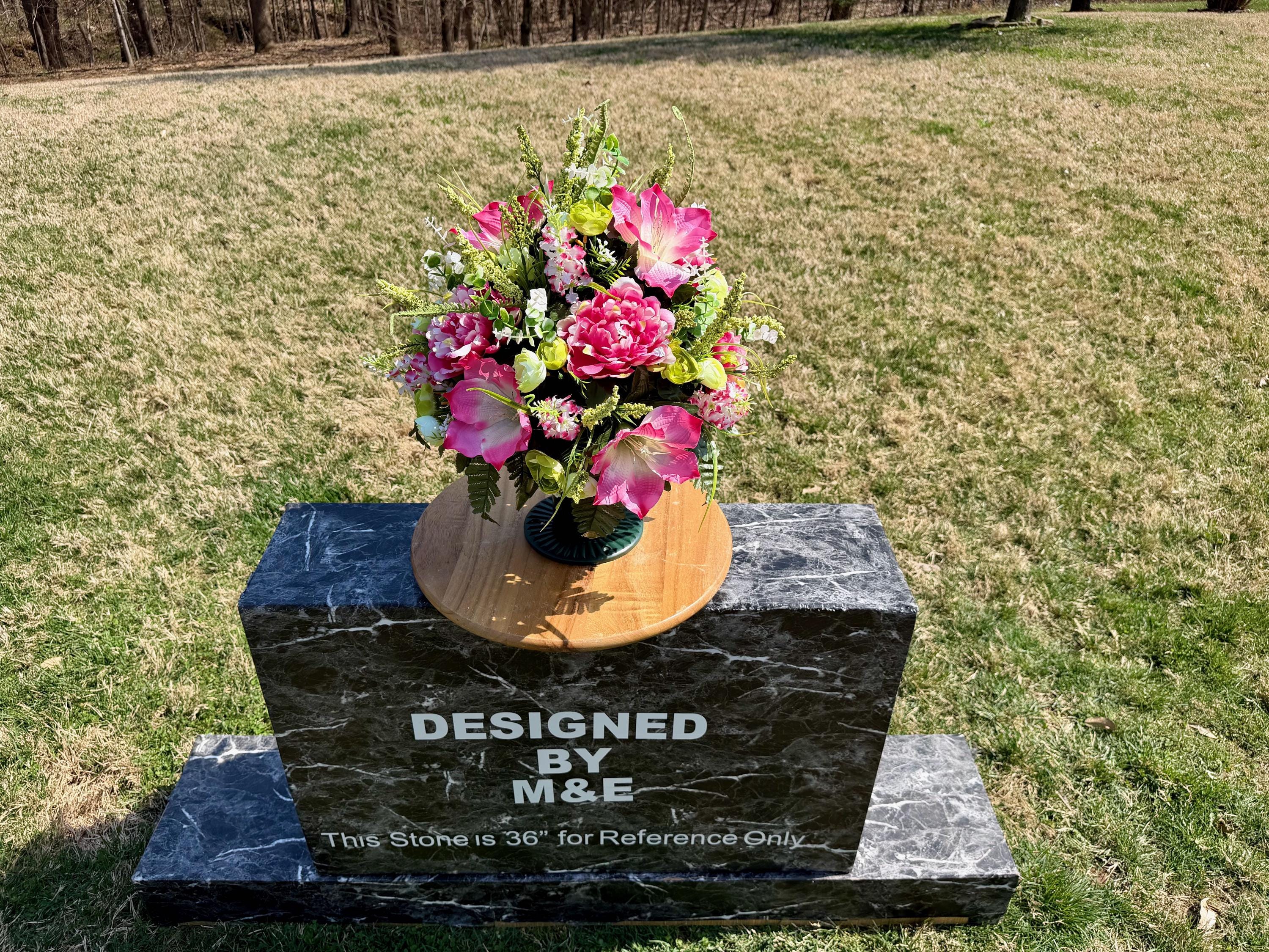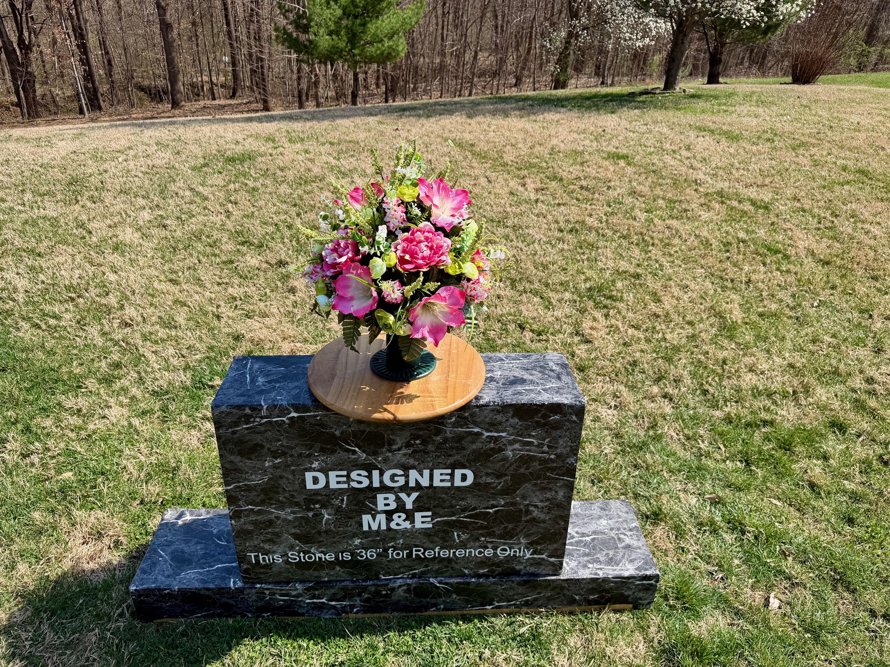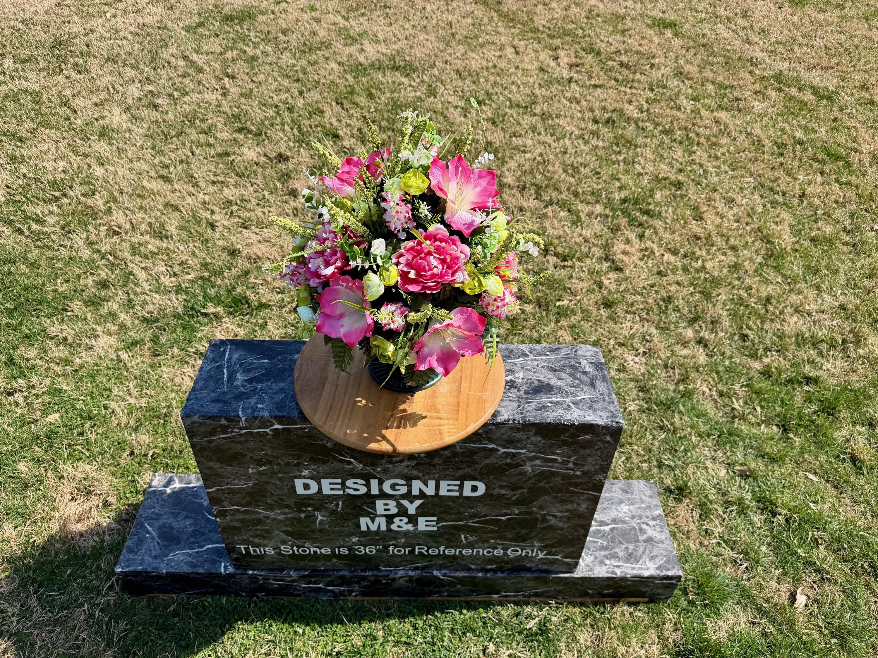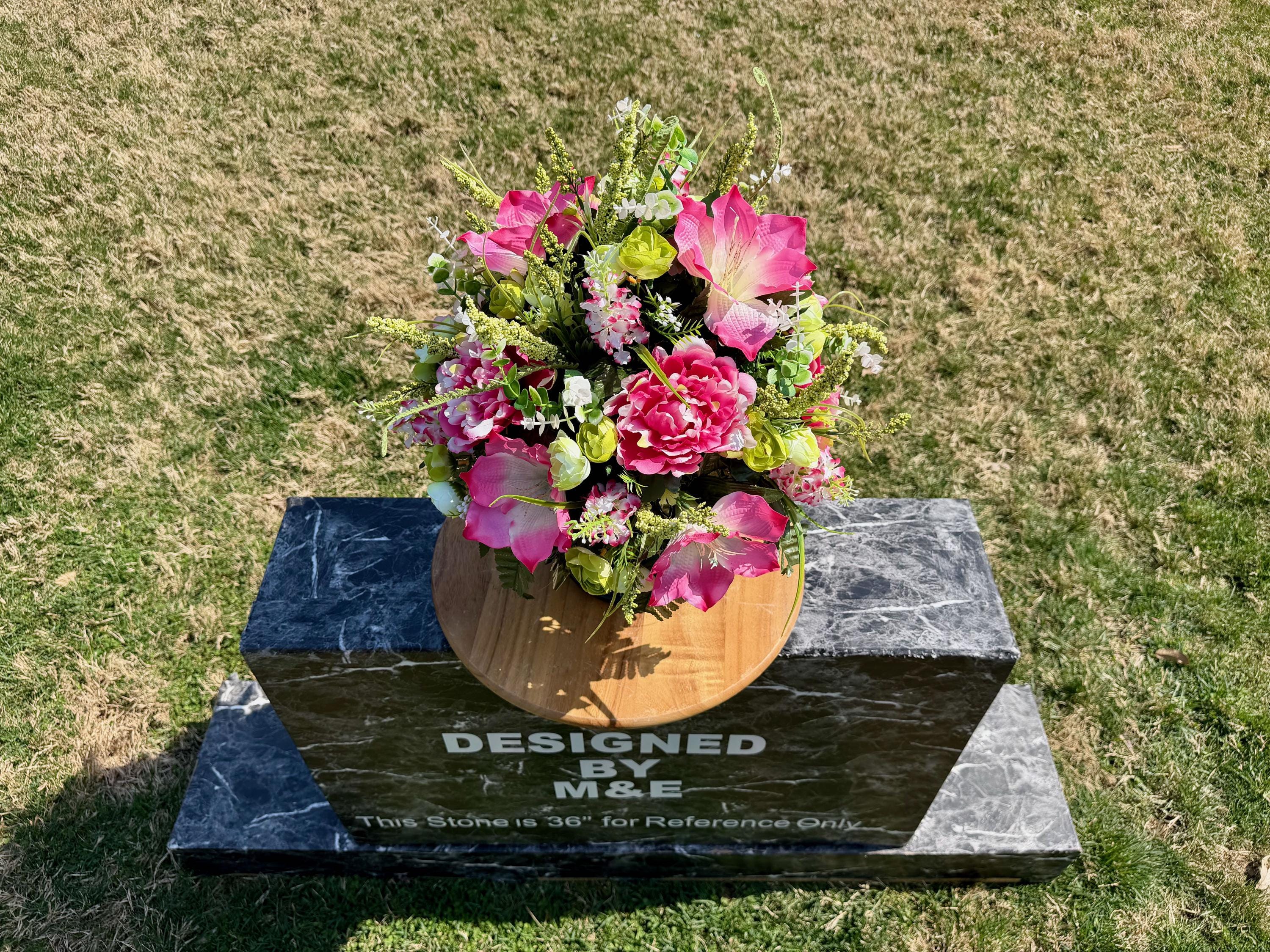 We’re a small, family-operated business consisting of myself, my husband, and my daughter. We personally manage every order and strive for excellent customer service. All our arrangements use high-quality silk flowers, though all silk blooms may fade over time. Each stem is glued into foam to withstand the elements. Designed by M&E uses only premium silks, and we put genuine care into every piece we create. Rest assured, the arrangement shown in our photos is exactly the one you’ll receive, as I design and assemble each one myself. If you’re searching for something unique or have a particular flower, color, or matching vases in mind, please contact me to discuss a custom order.