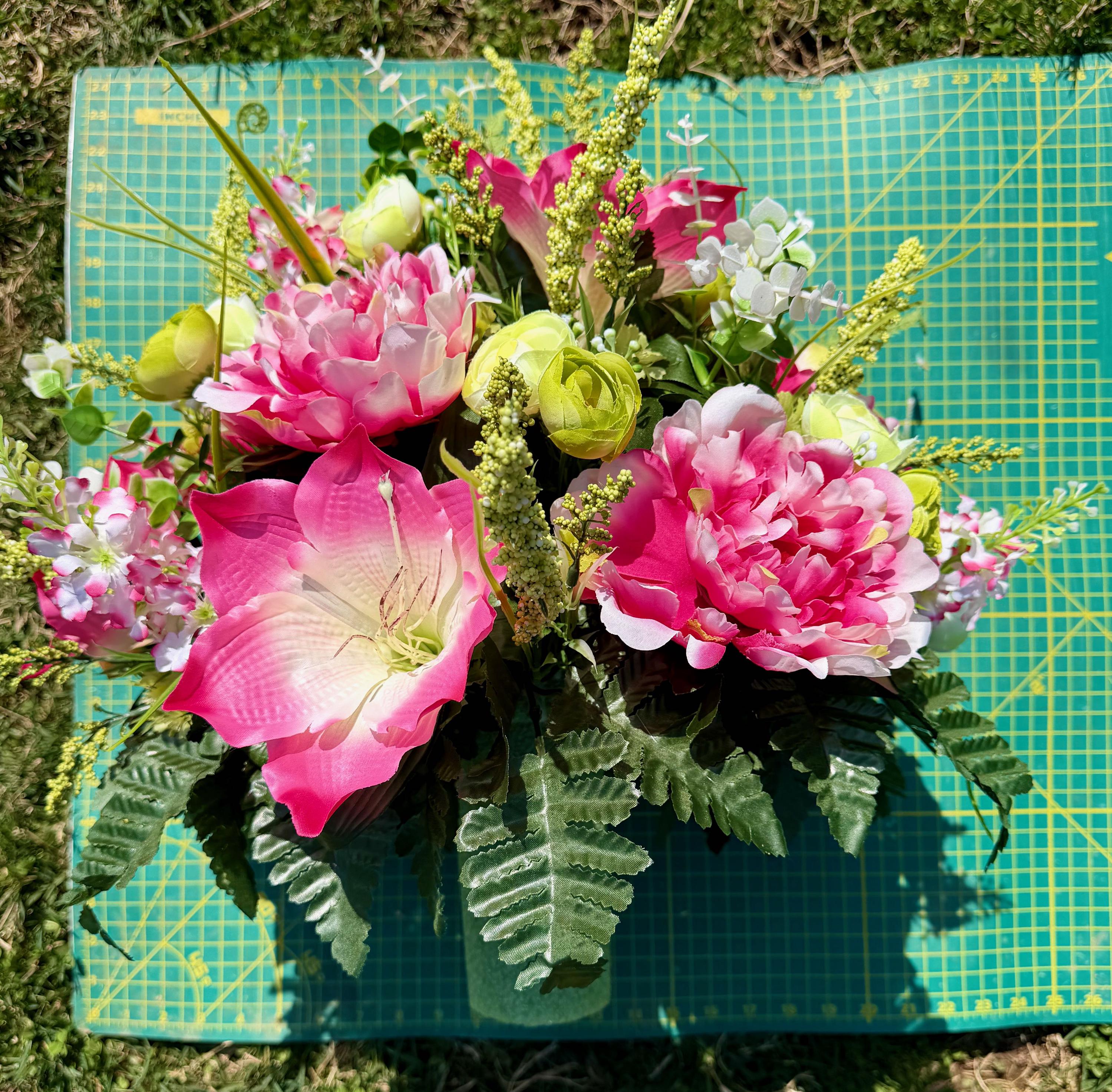 Pinks, Greens and White Cemetery Vase, Grave Decorations, Memorial Arrangement Flowers