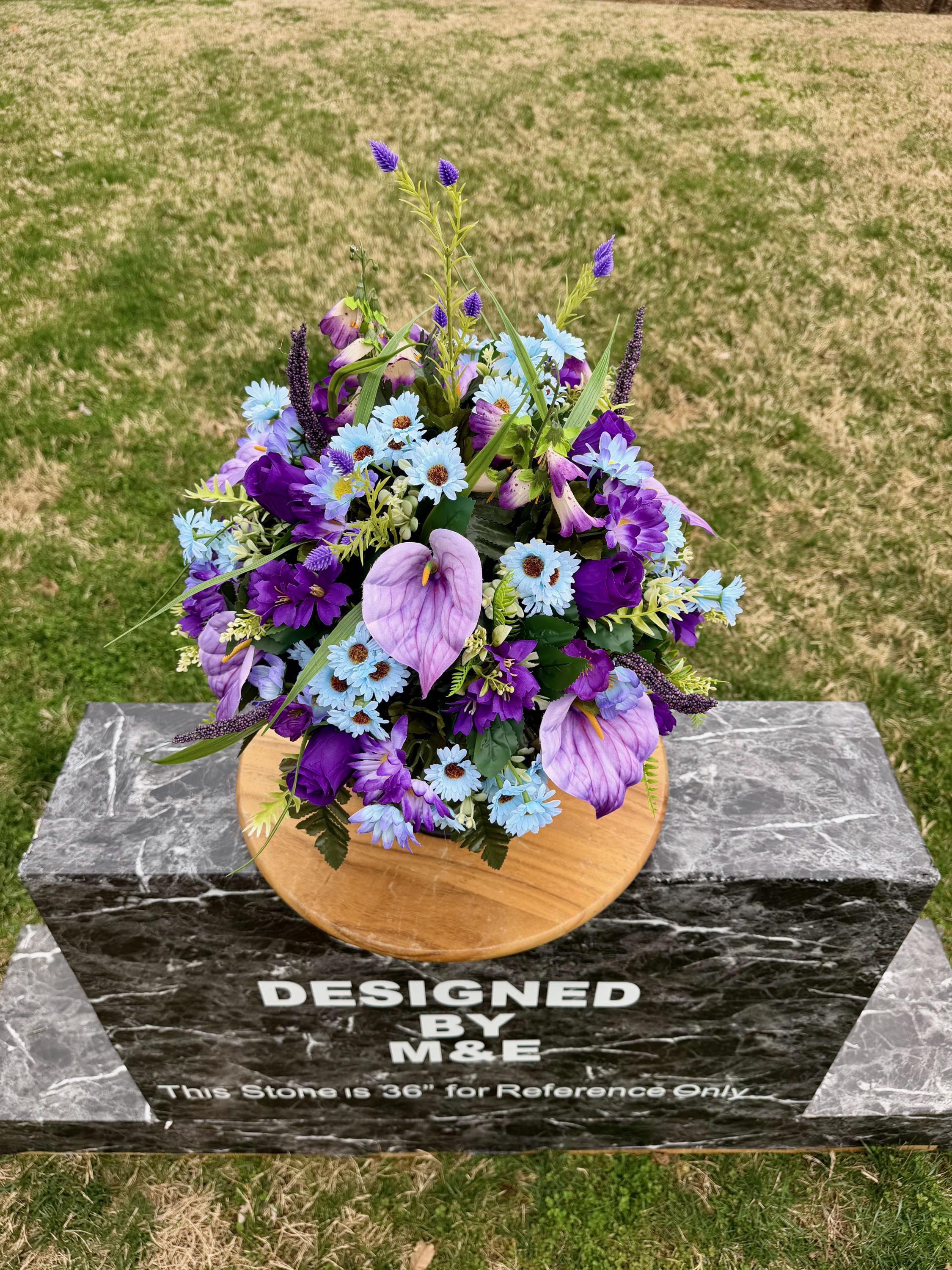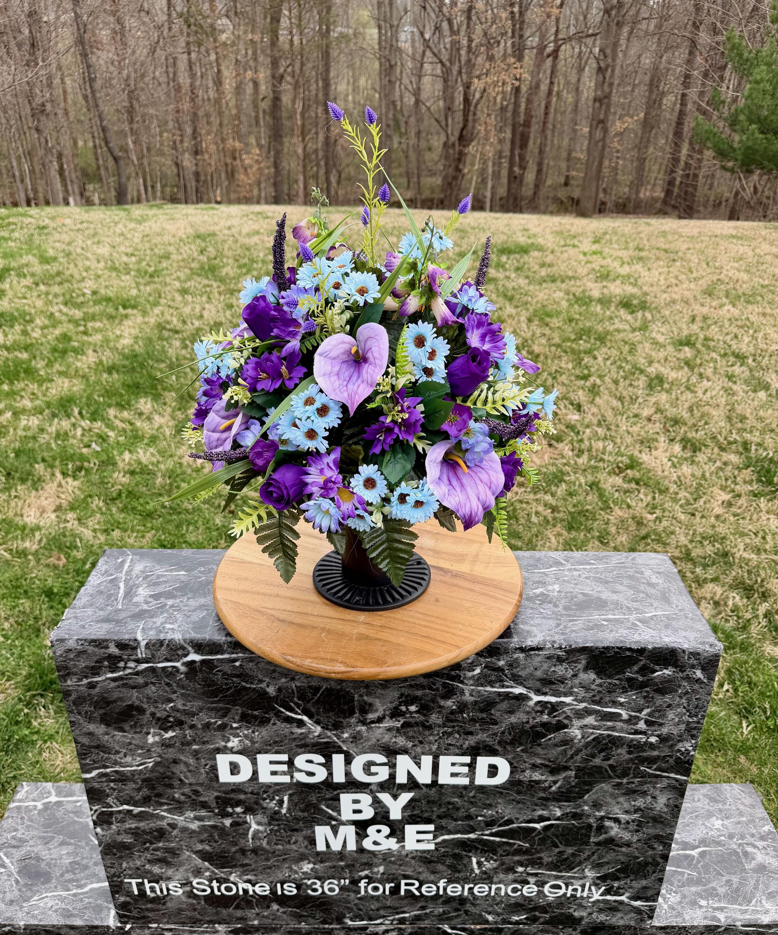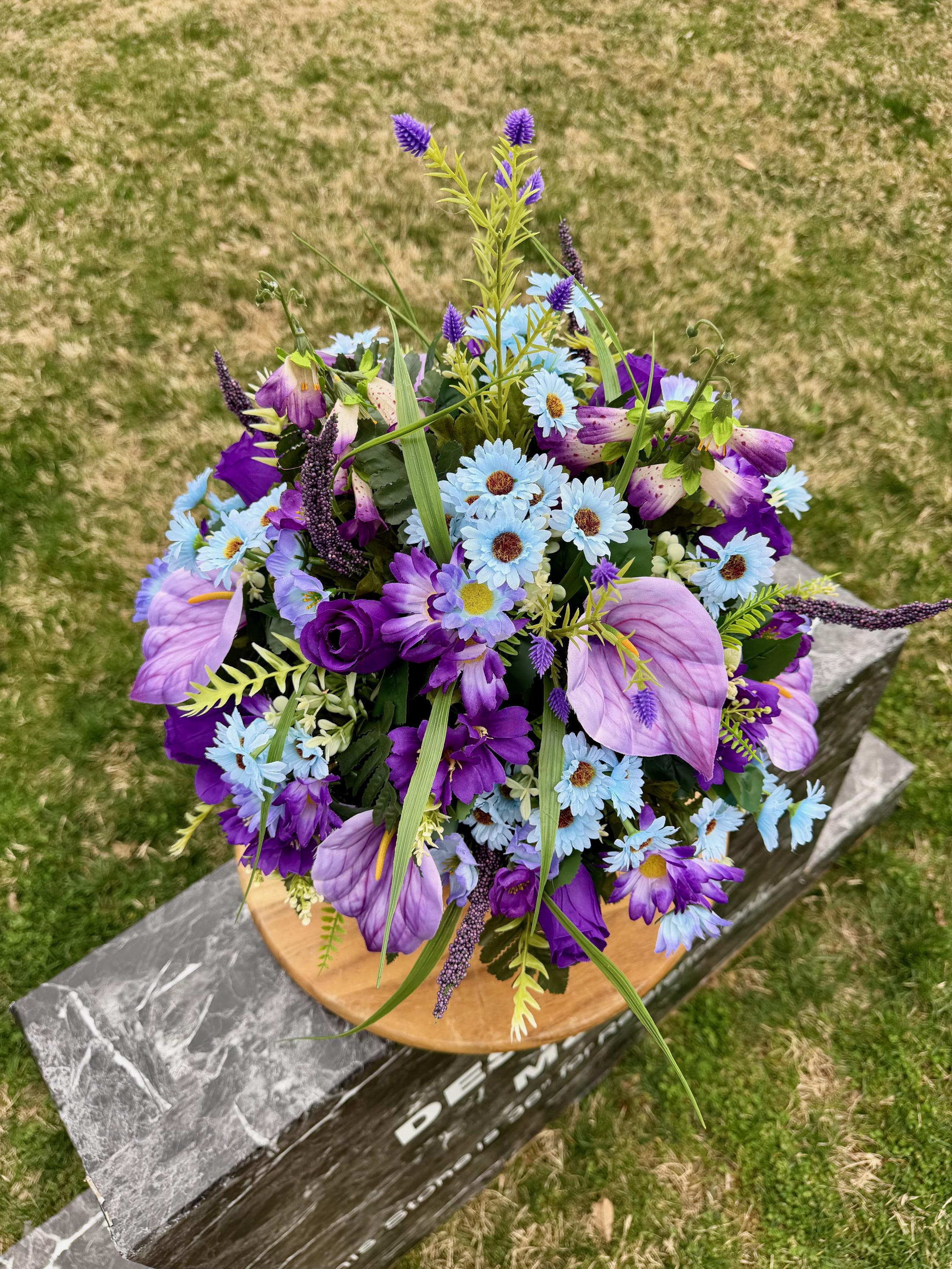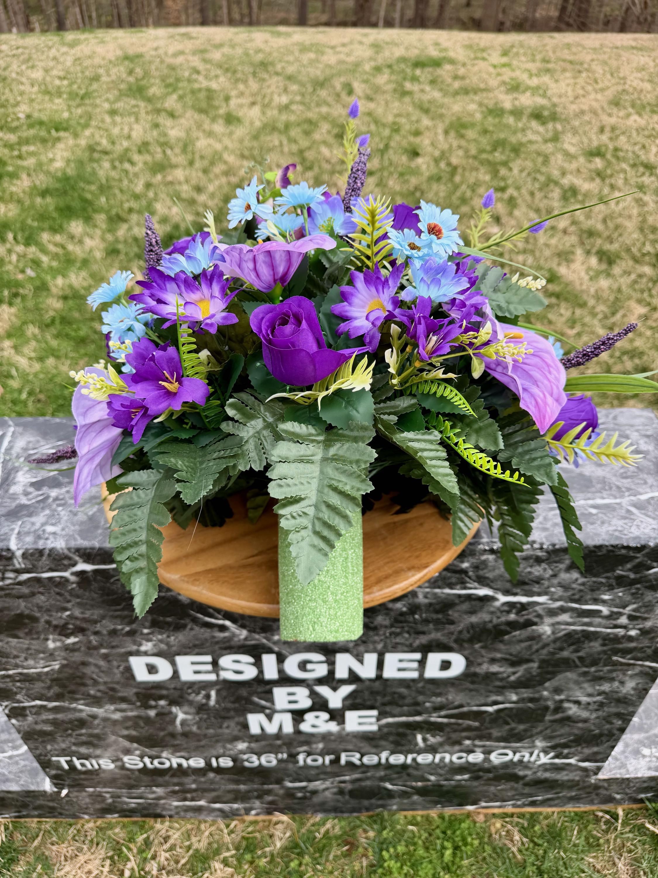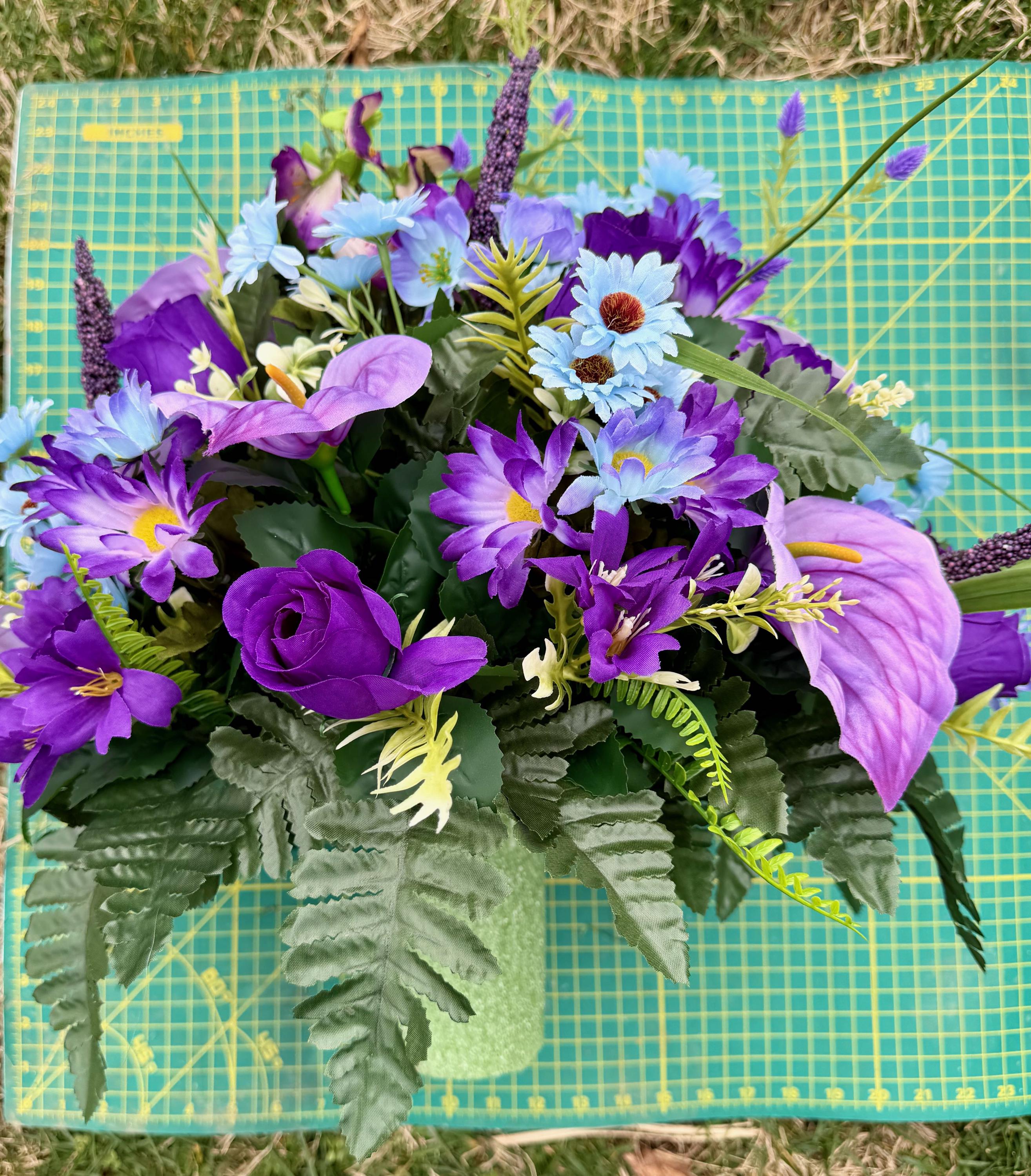 Purple, Violet and Blue Cemetery Vase, Grave Decorations, Memorial Arrangement Flowers