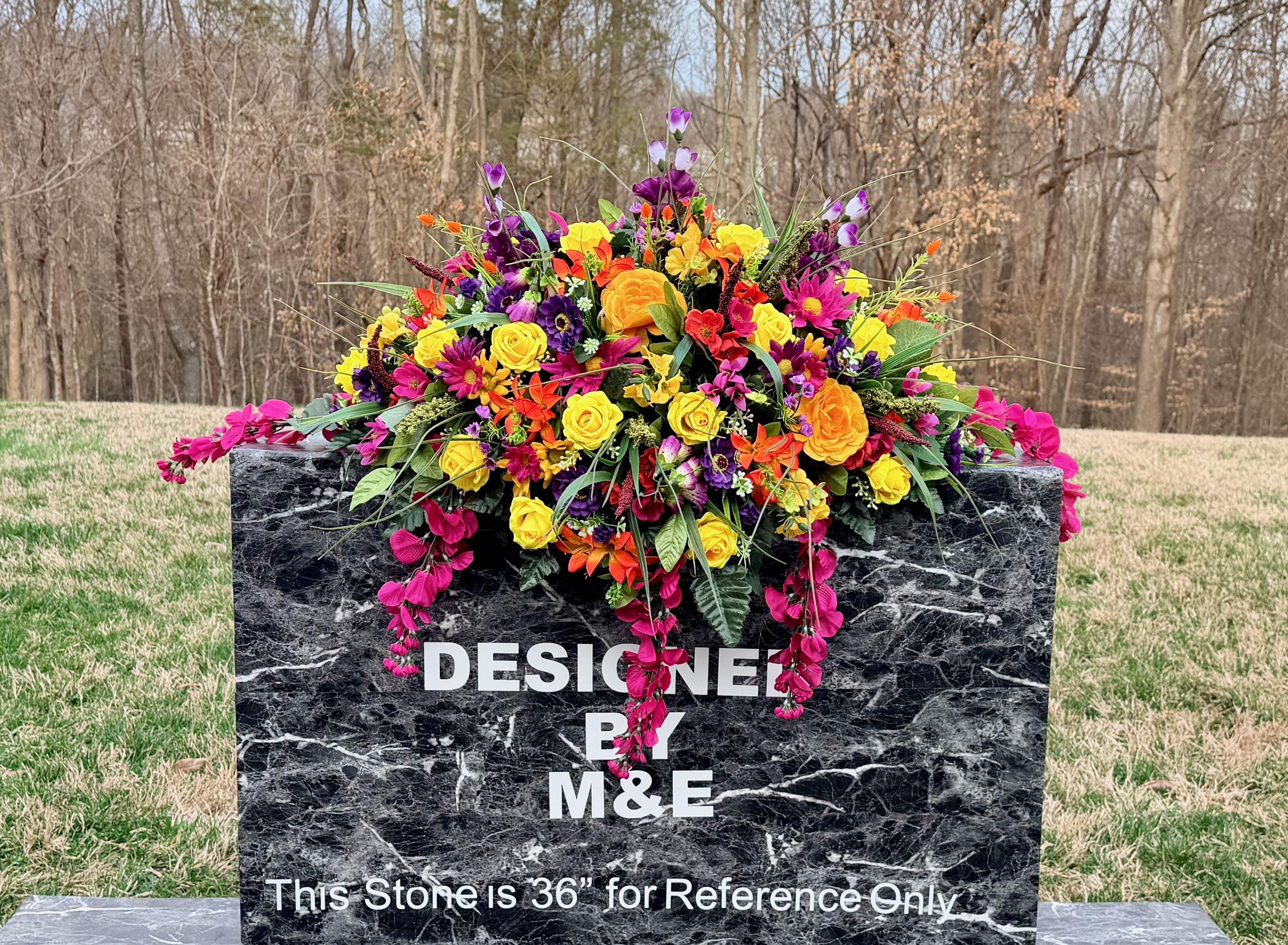 We’re a small, family-operated business consisting of myself, my husband, and my daughter. We personally manage every order and strive for excellent customer service. All our arrangements use high-quality silk flowers, though all silk blooms may fade over time. Each stem is glued into foam to withstand the elements. Designed by M&E uses only premium silks, and we put genuine care into every piece we create. Rest assured, the arrangement shown in our photos is exactly the one you’ll receive, as I design and assemble each one myself. If you’re searching for something unique or have a particular flower, color, or matching vases in mind, please contact me to discuss a custom order.