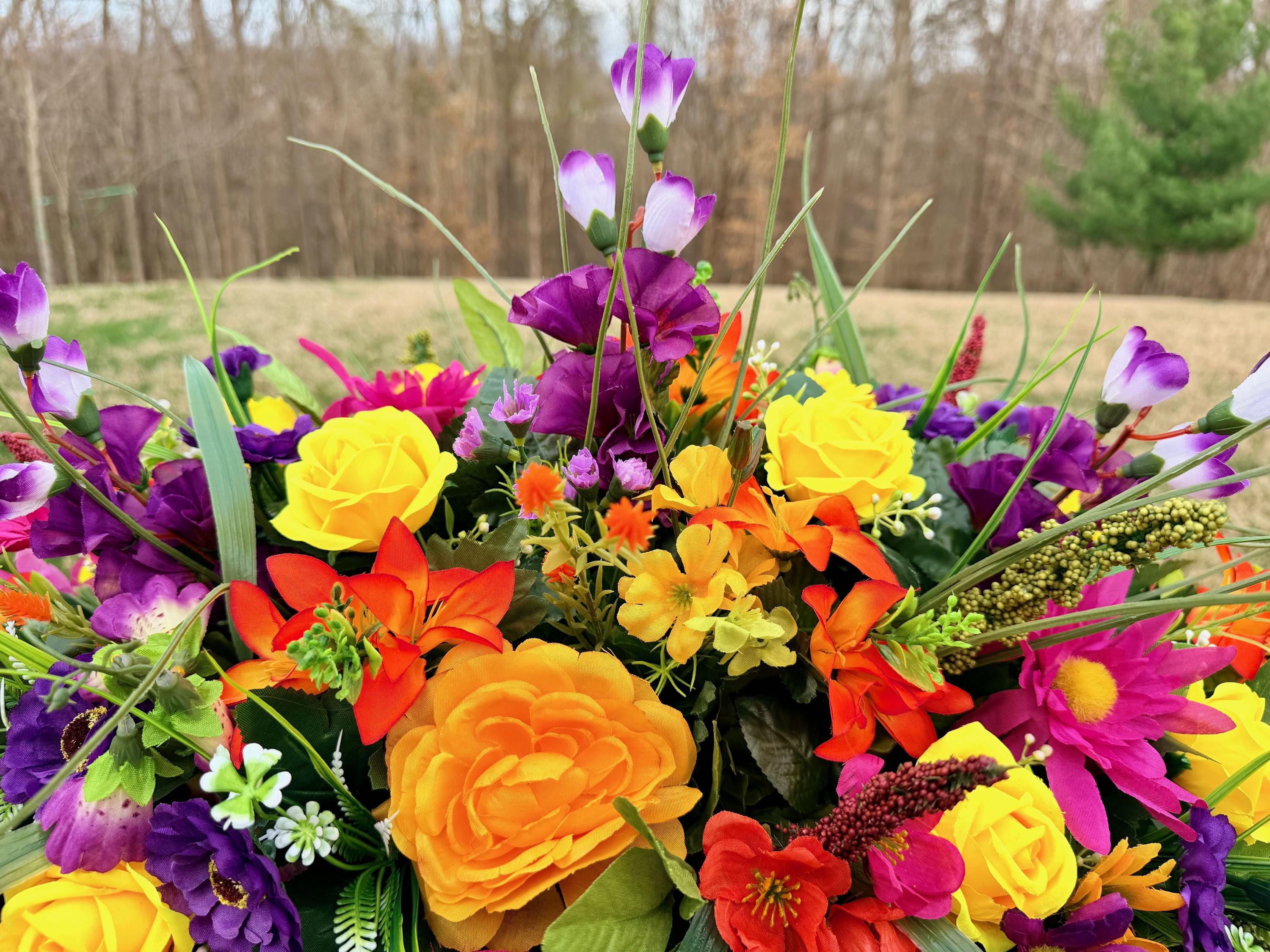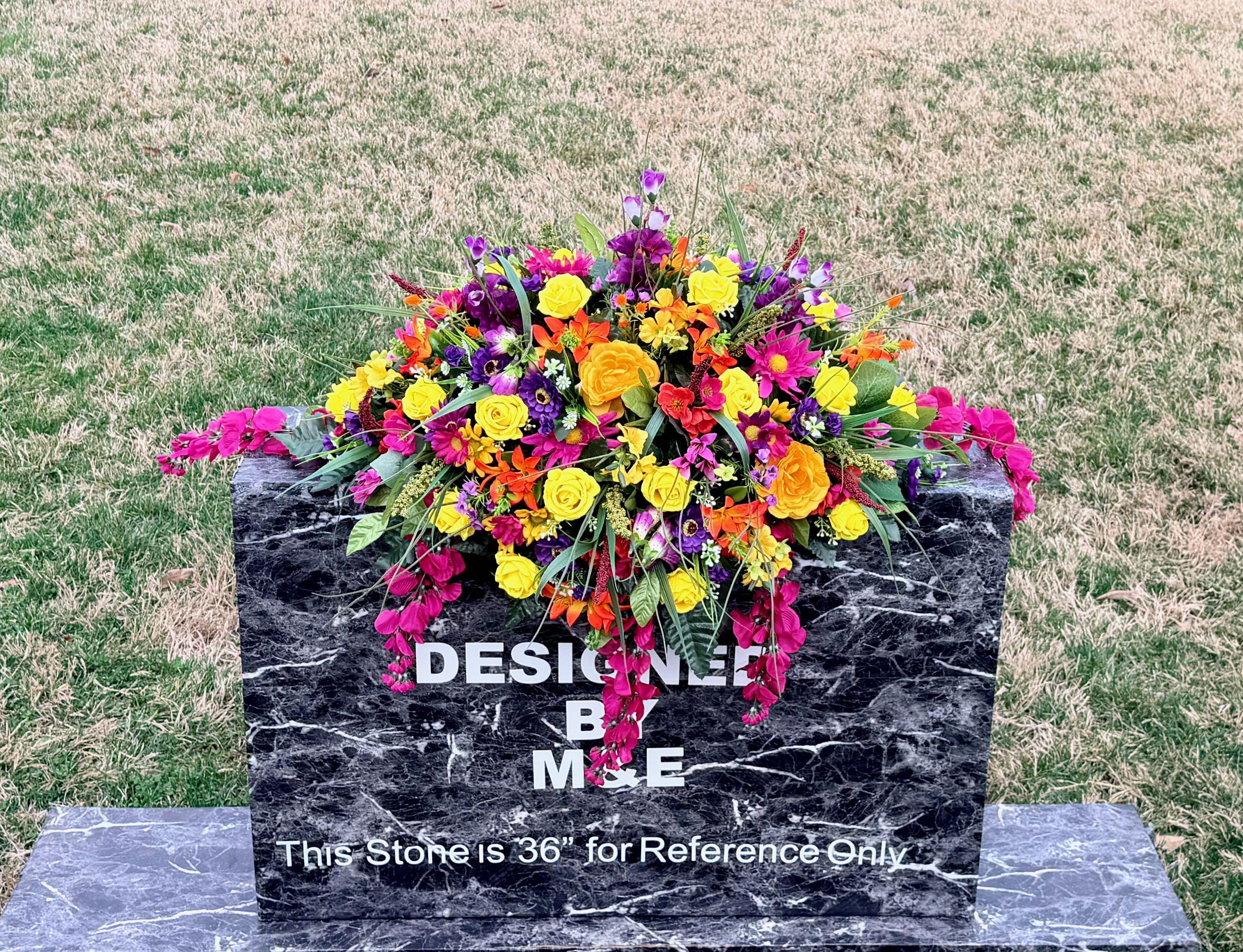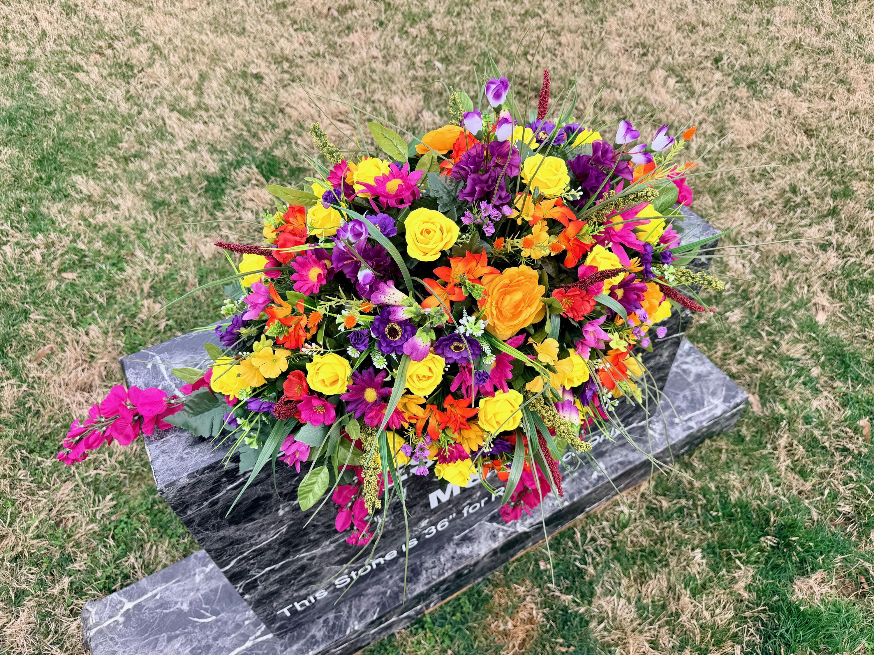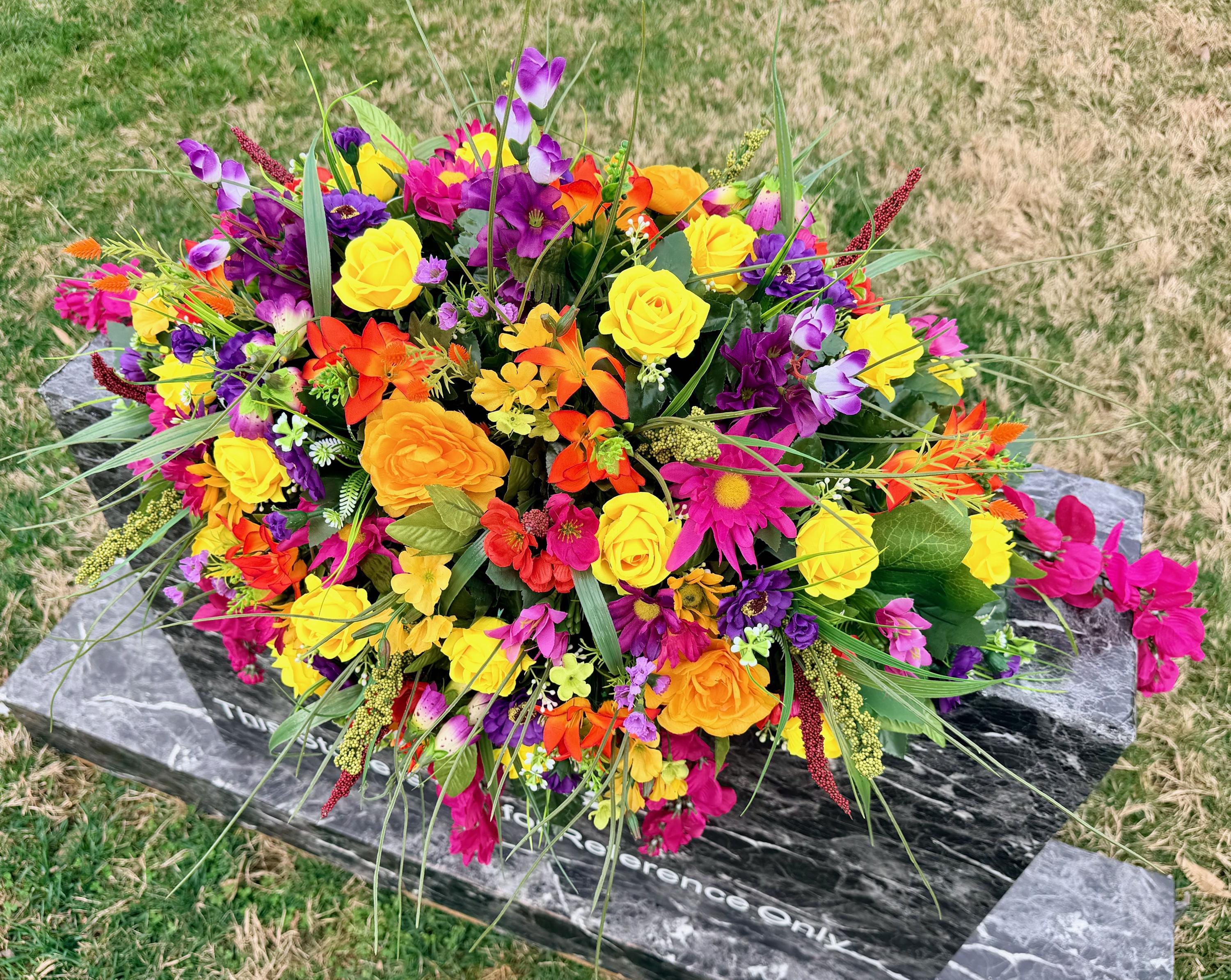 Bright and Beautiful Multi-Color Cemetery Saddle, Grave Decorations, Headstone Memorial Arrangement, Flowers