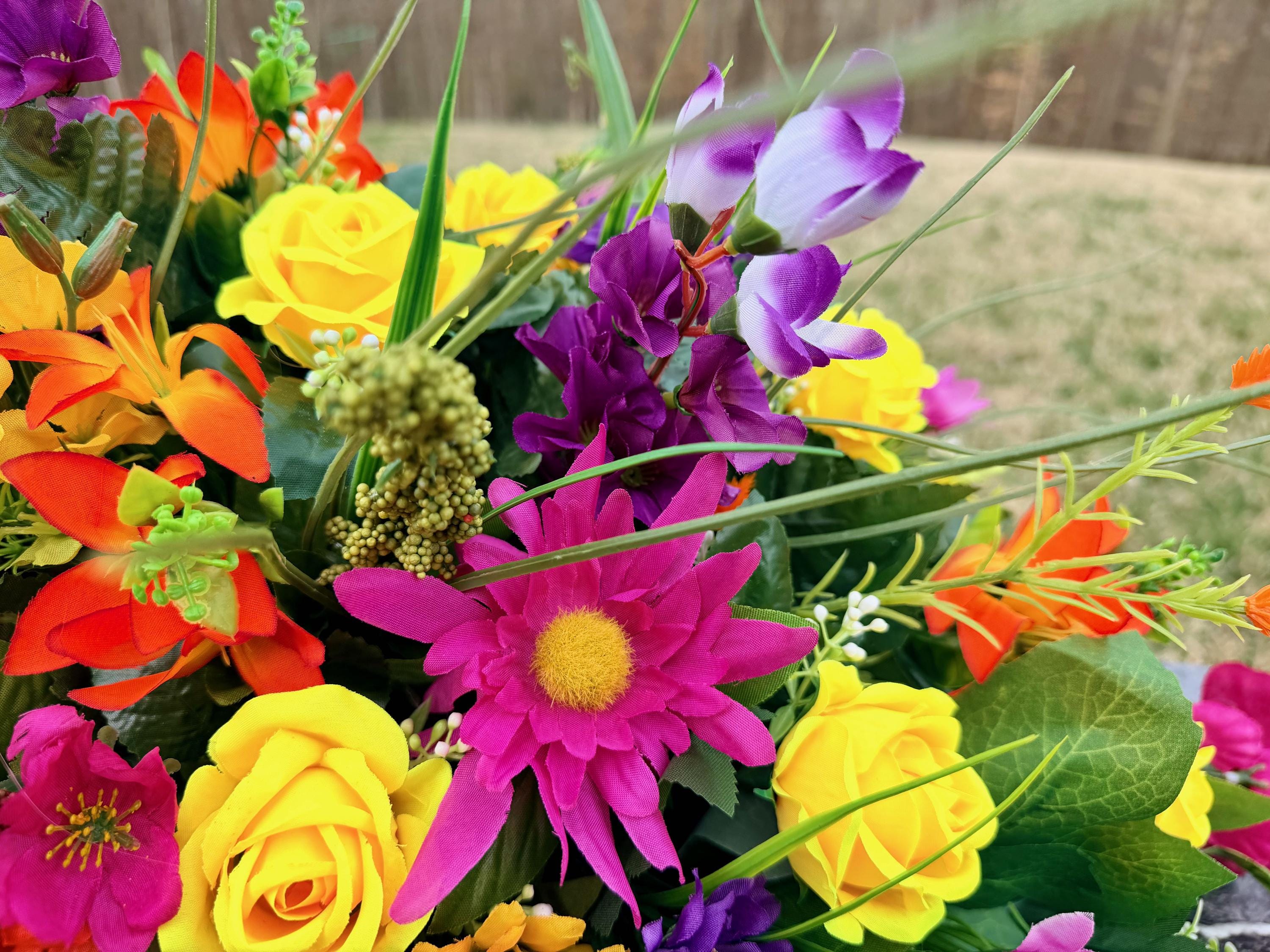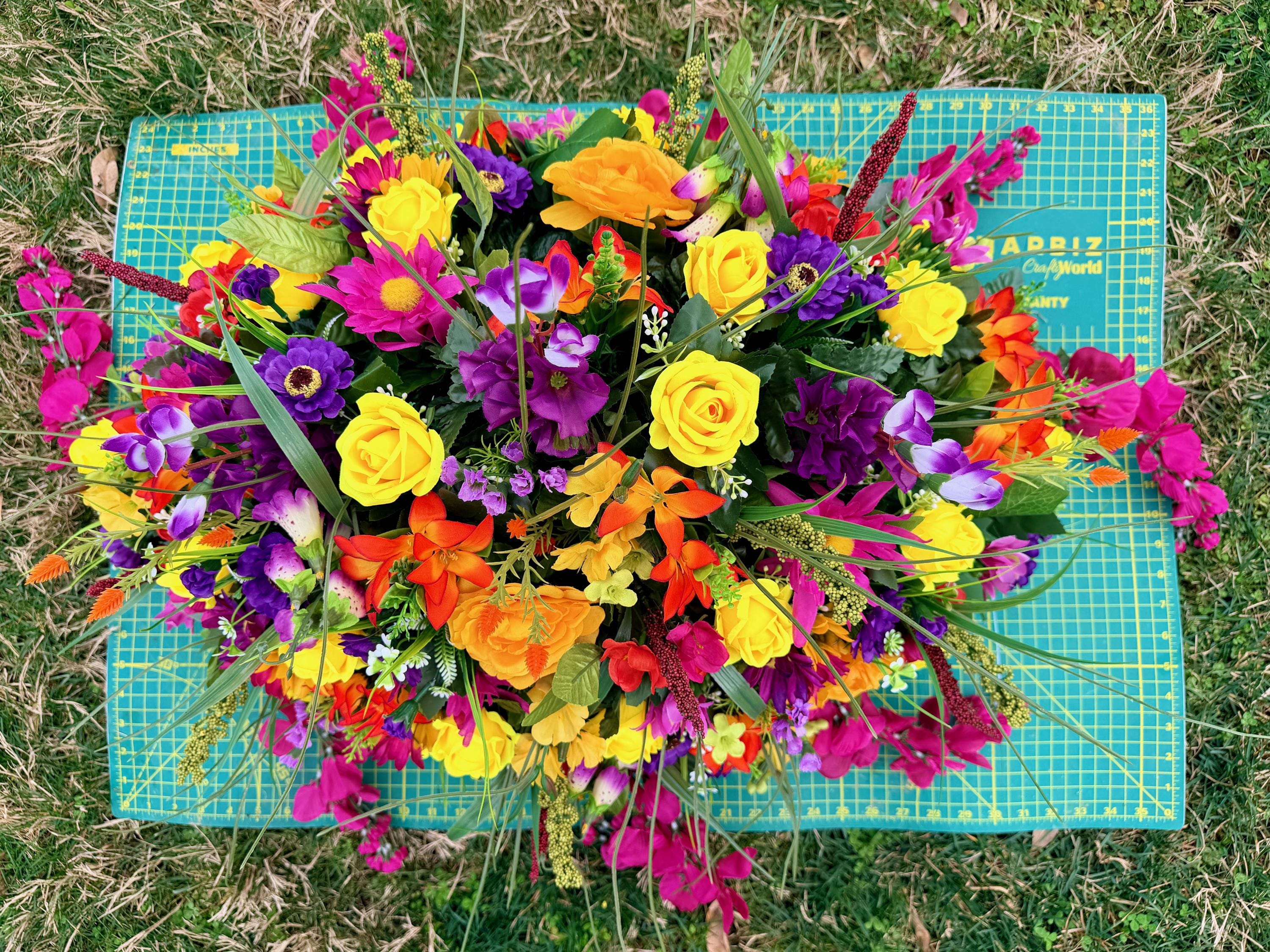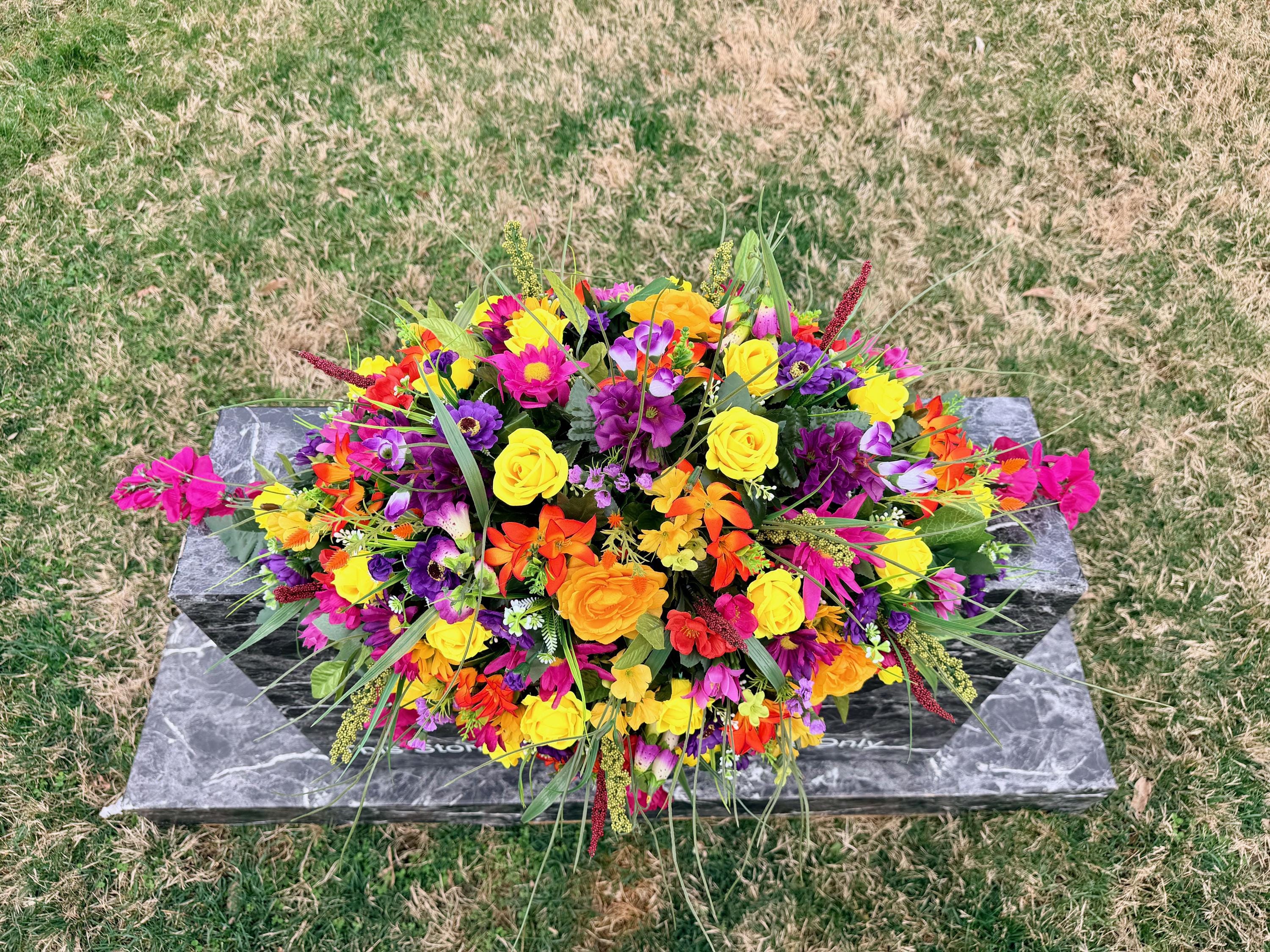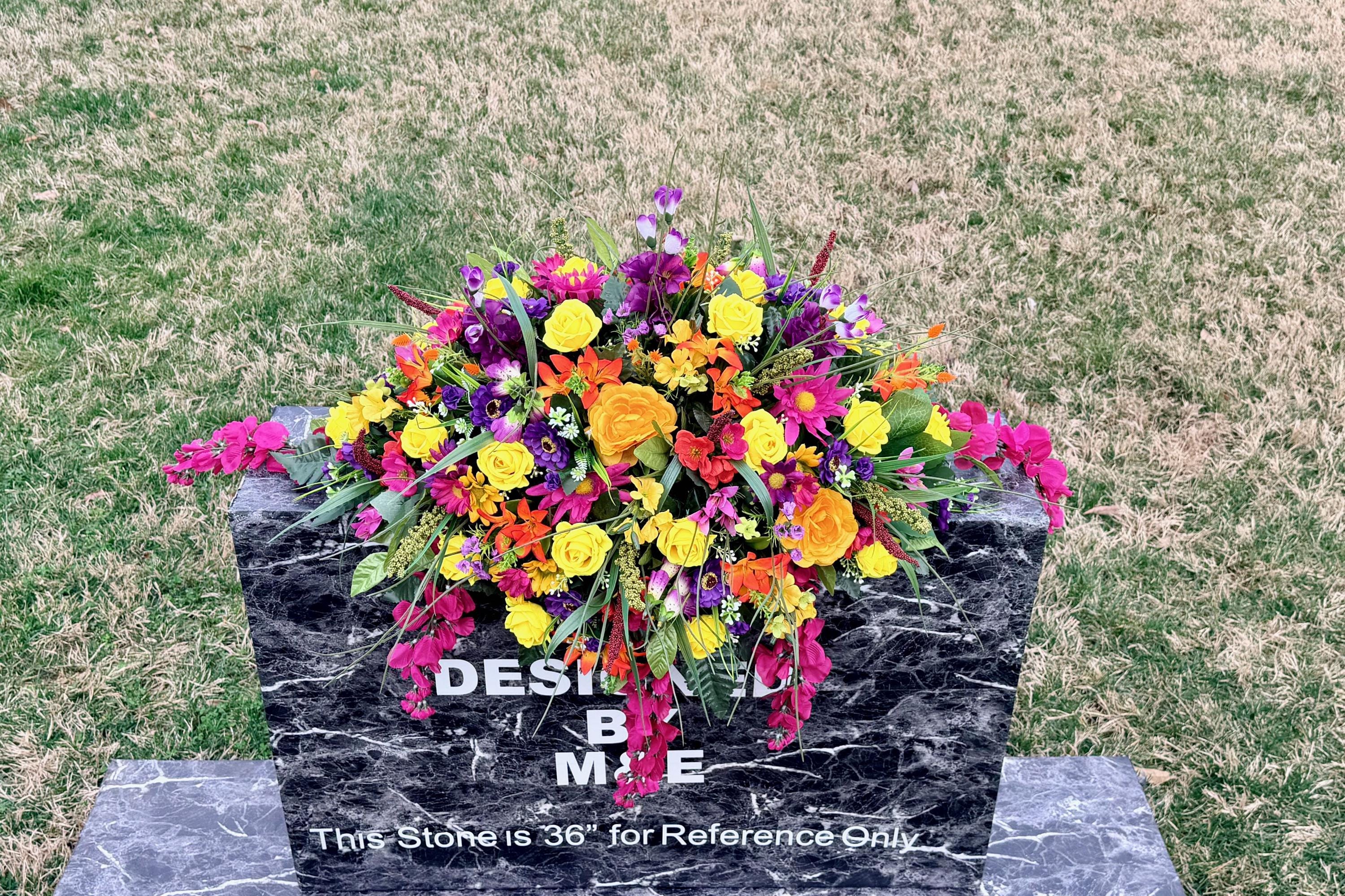 Bright and Beautiful Multi-Color Cemetery Saddle, Grave Decorations, Headstone Memorial Arrangement, Flowers