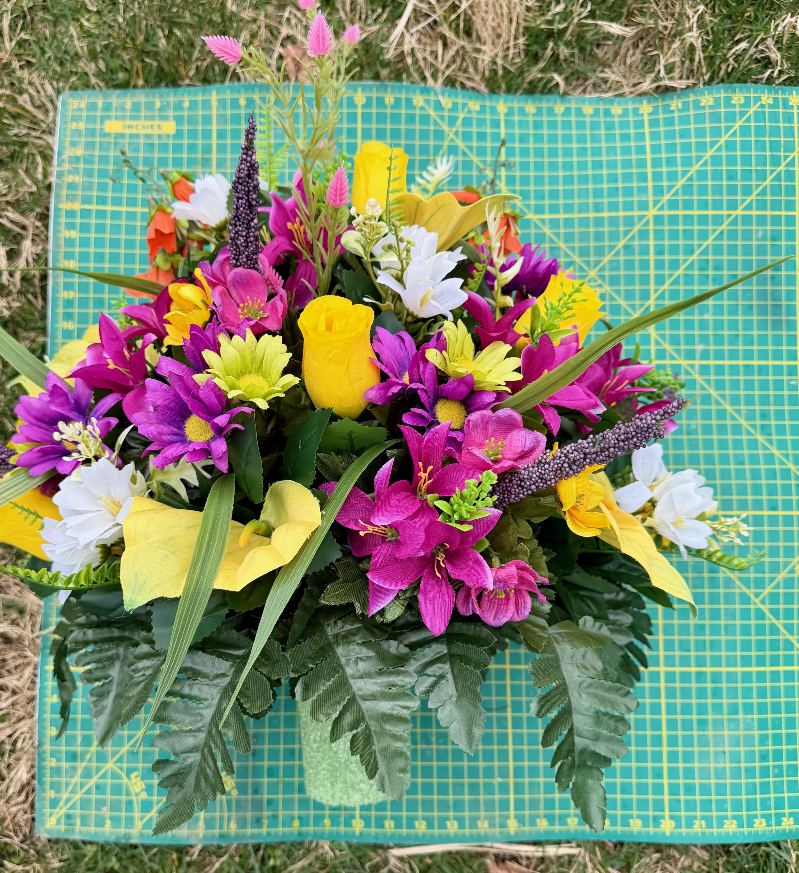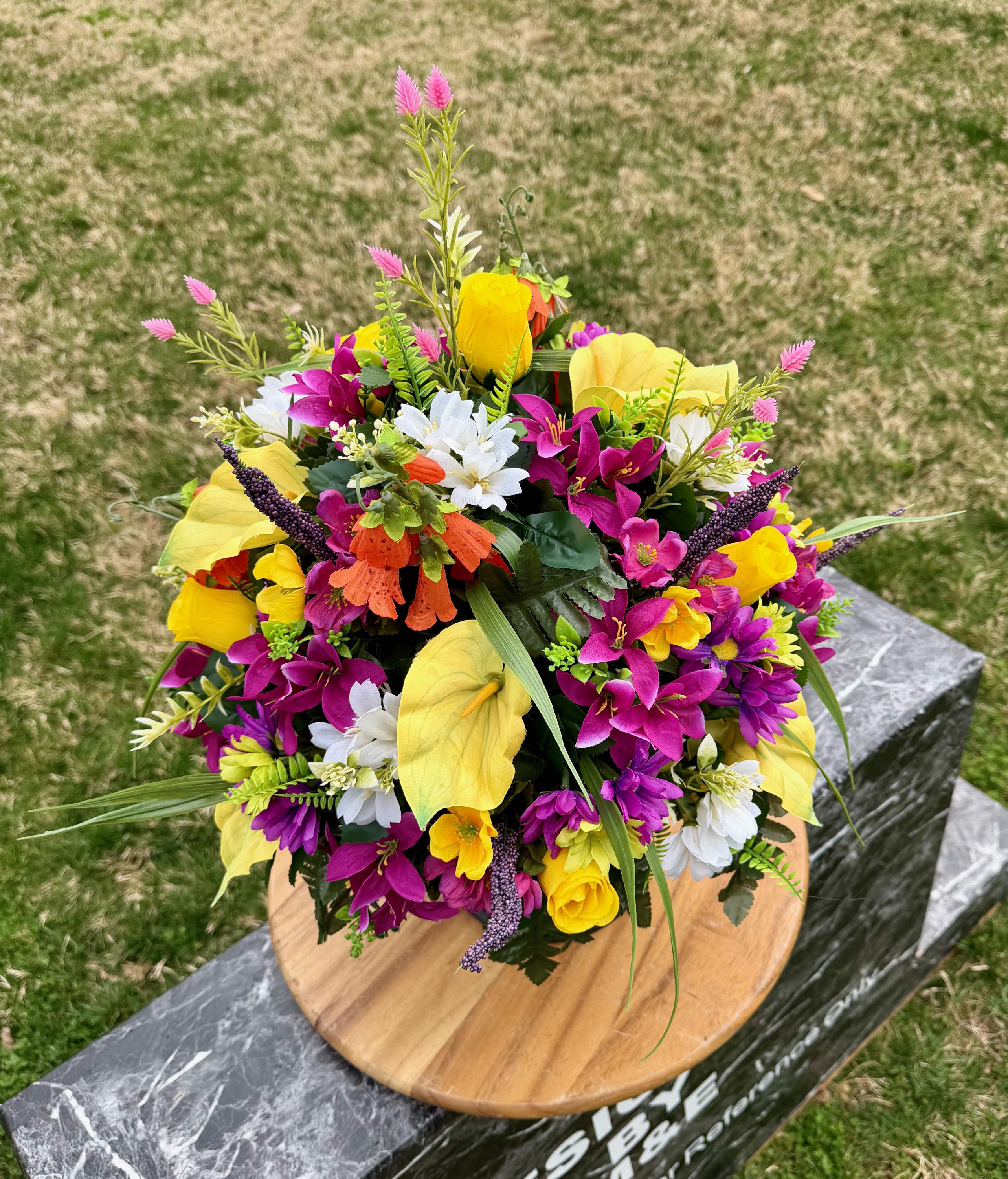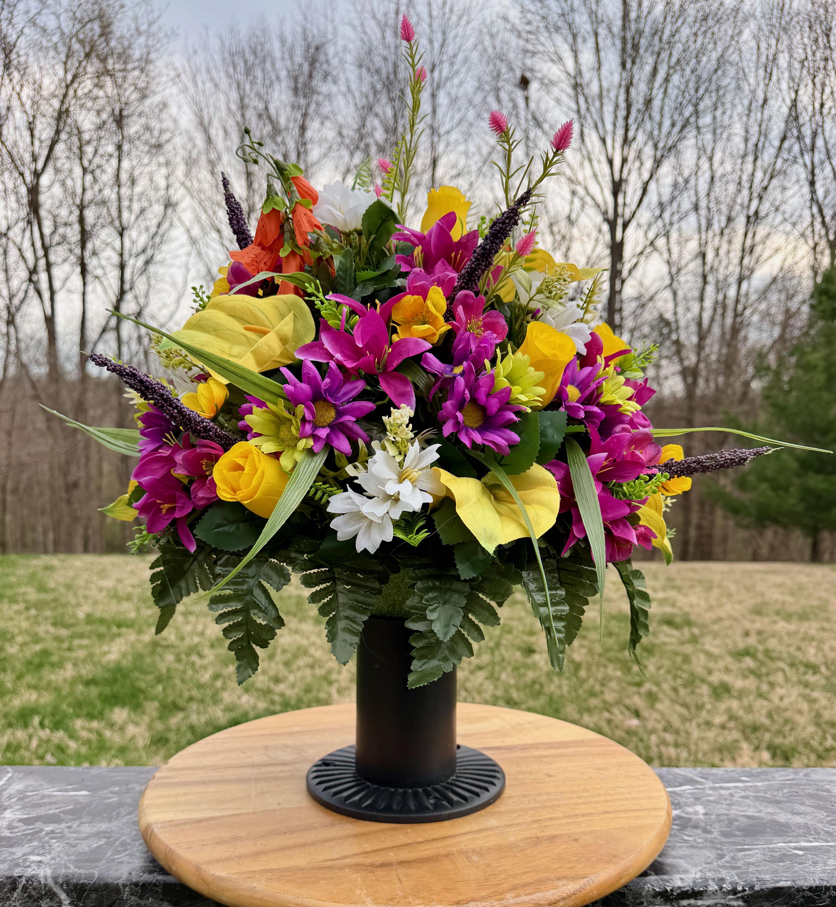Pink, Yellow, Orange and White Cemetery Vase Arrangement, Headstone Arrangement, Memorial Flowers