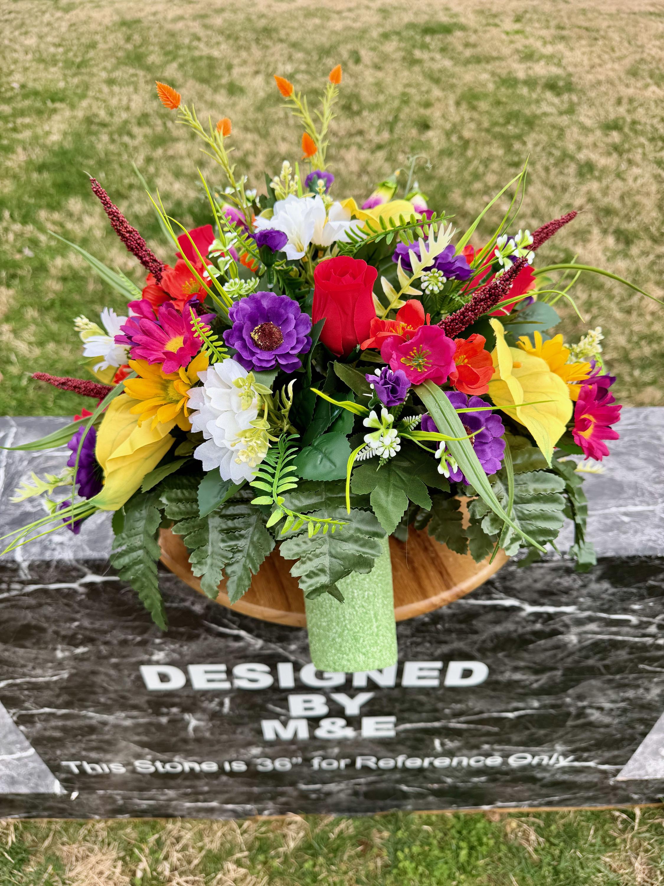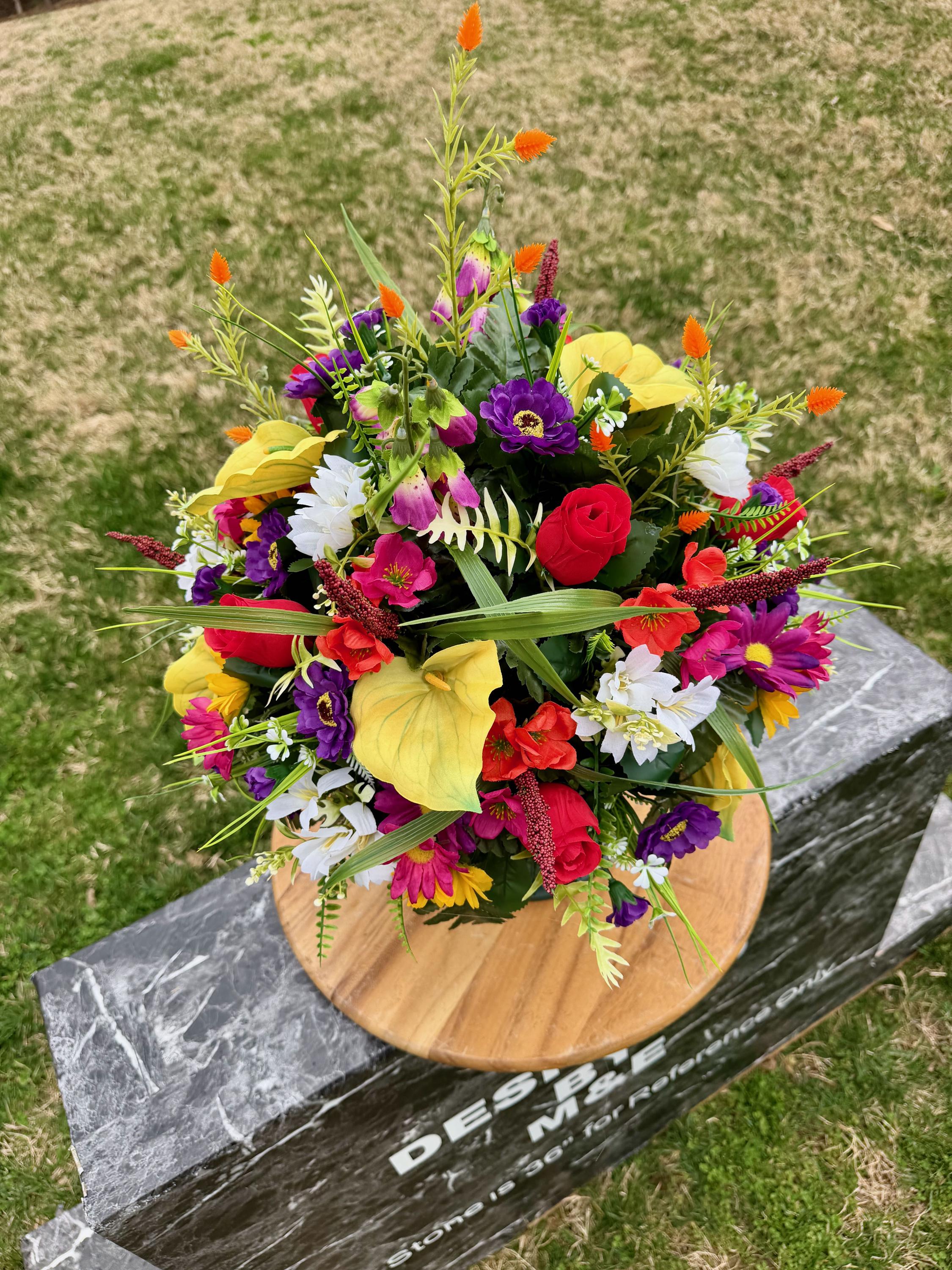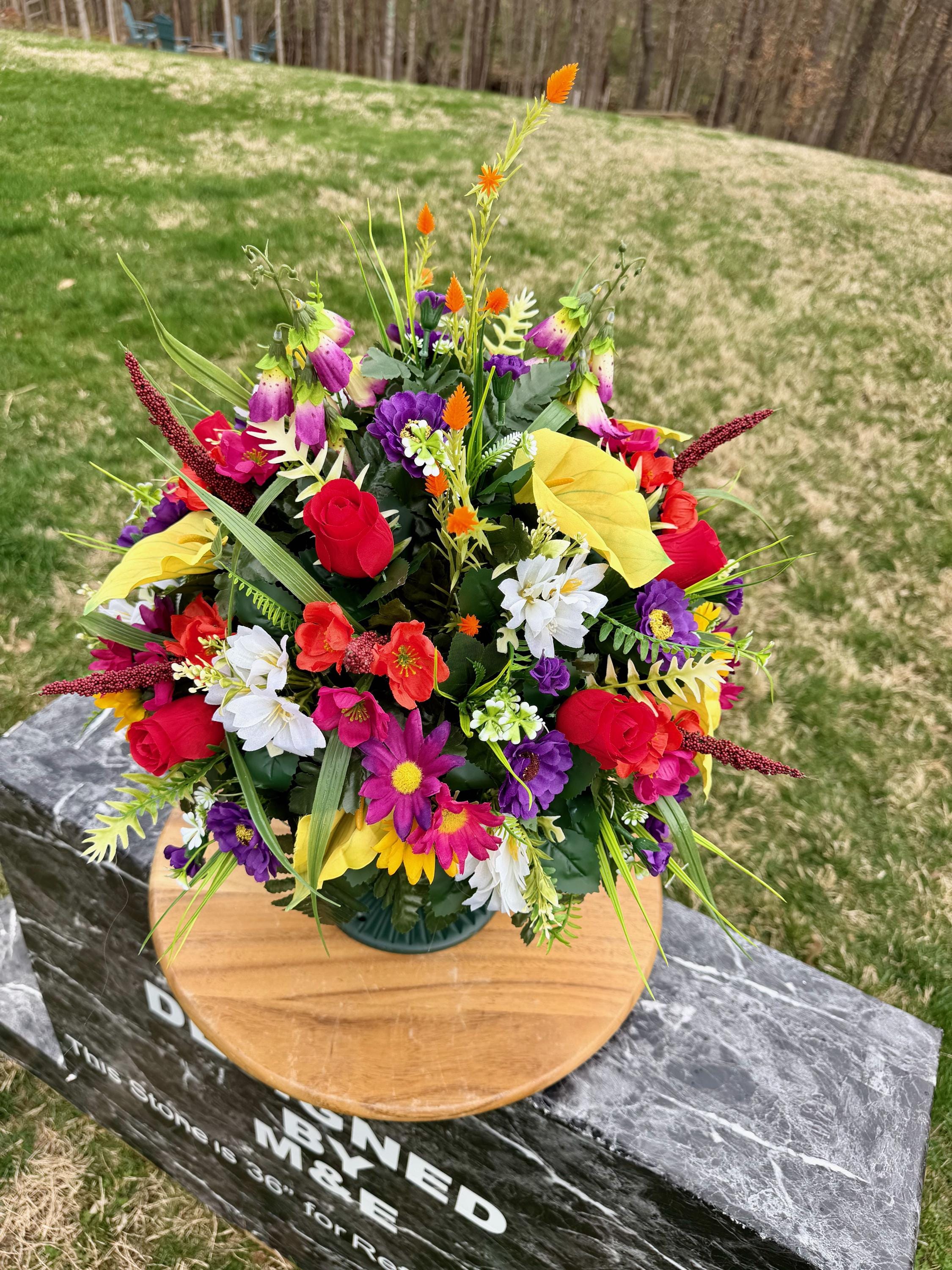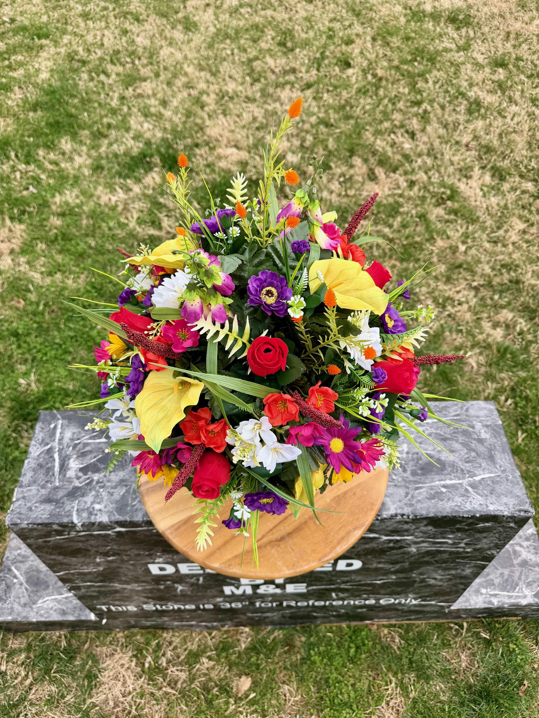Bright Wildflowers Cemetery Vase Arrangement, Headstone Arrangement, Memorial Flowers