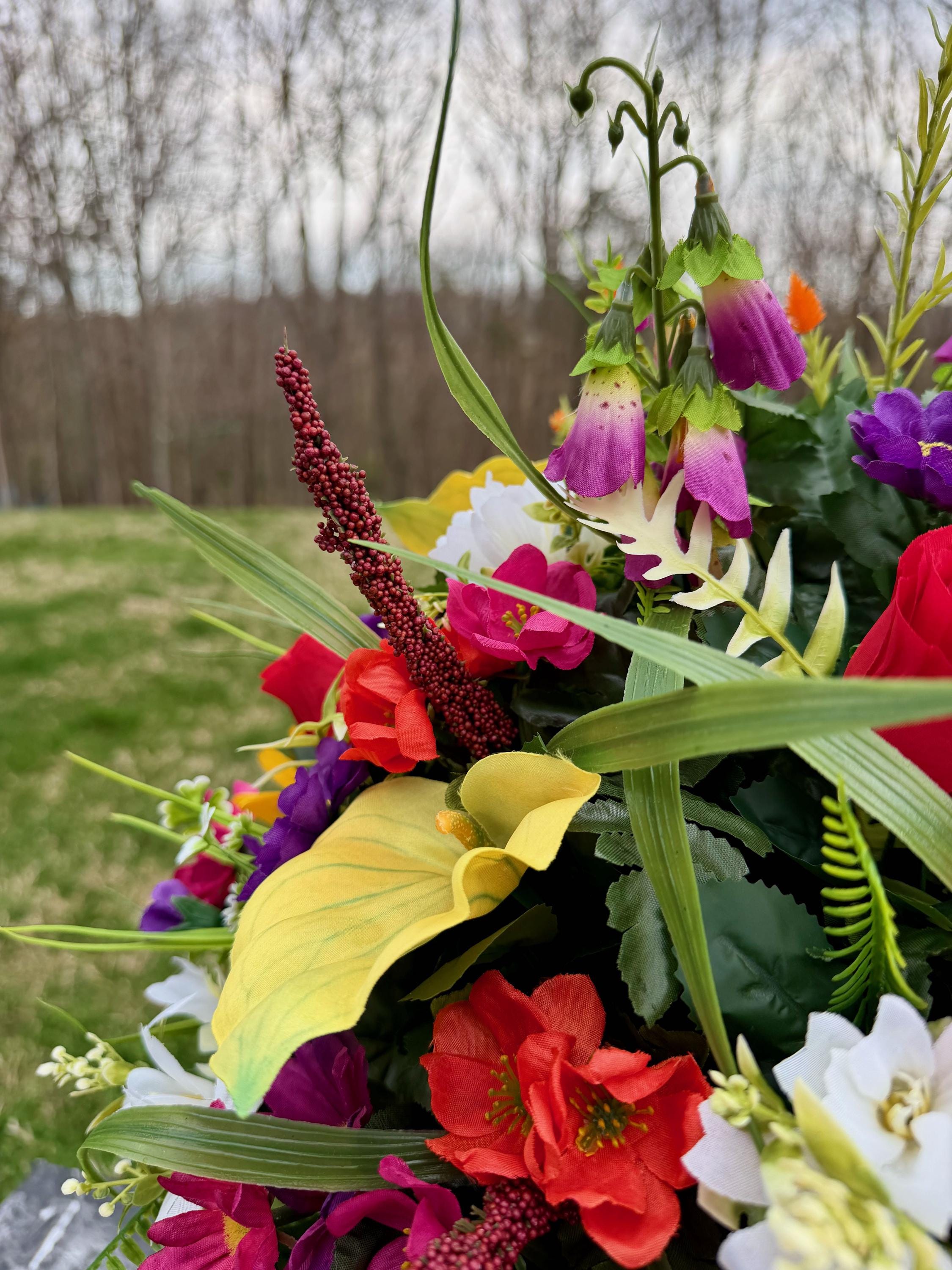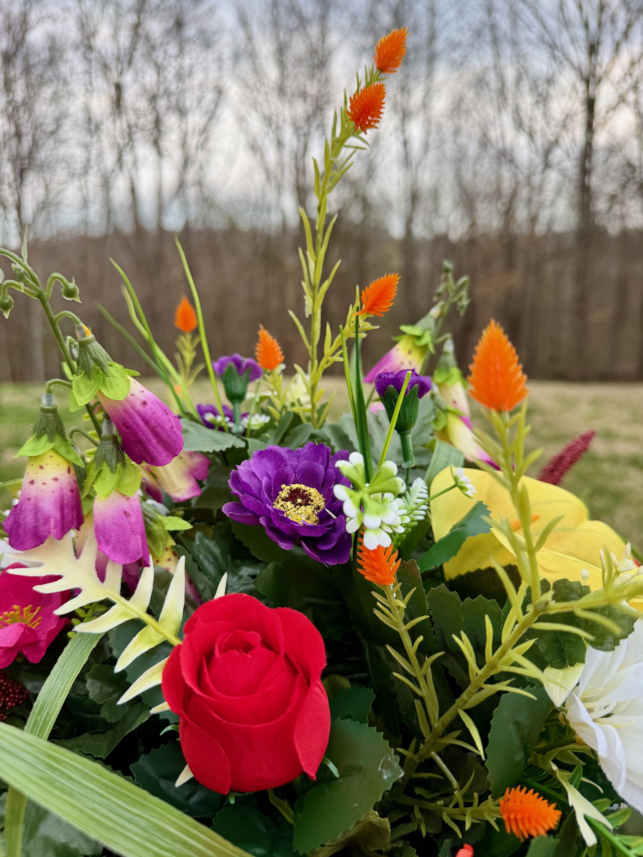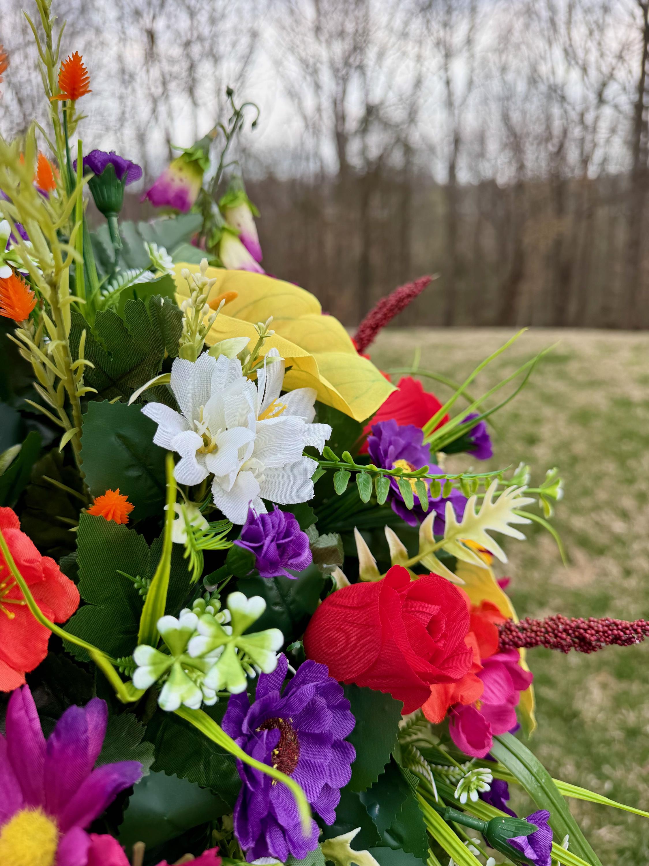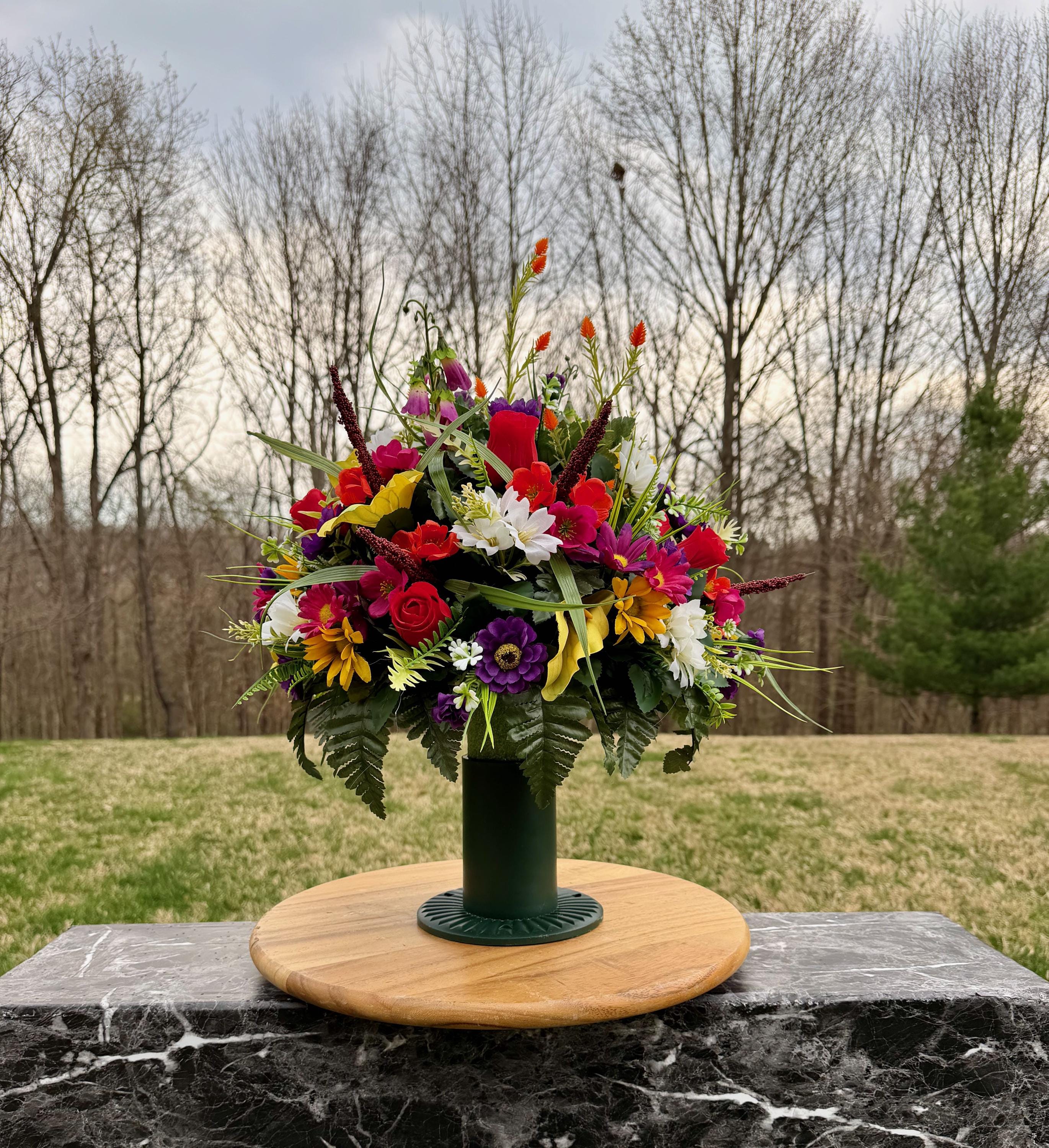 Bright Wildflowers Cemetery Vase Arrangement, Headstone Arrangement, Memorial Flowers
