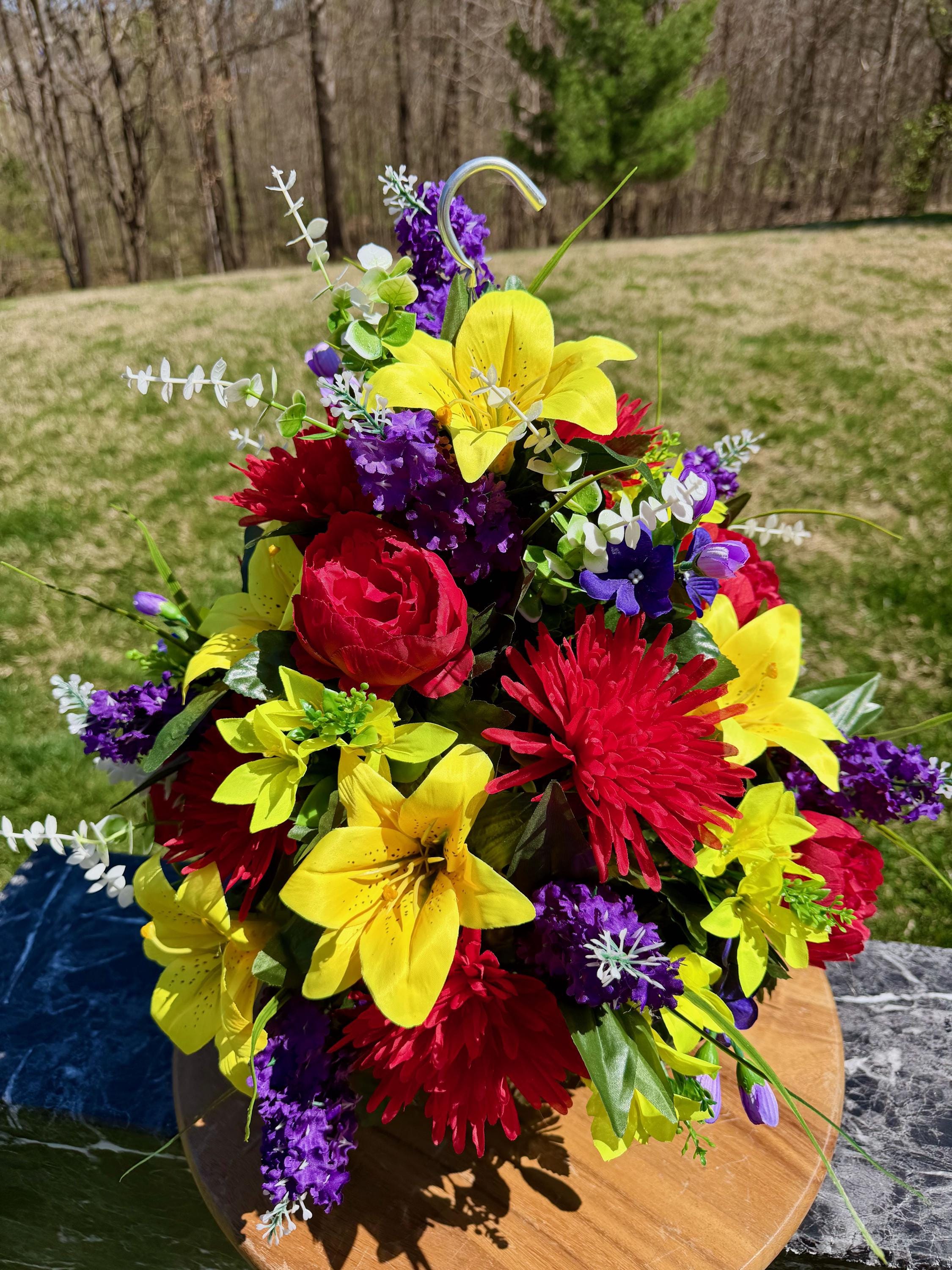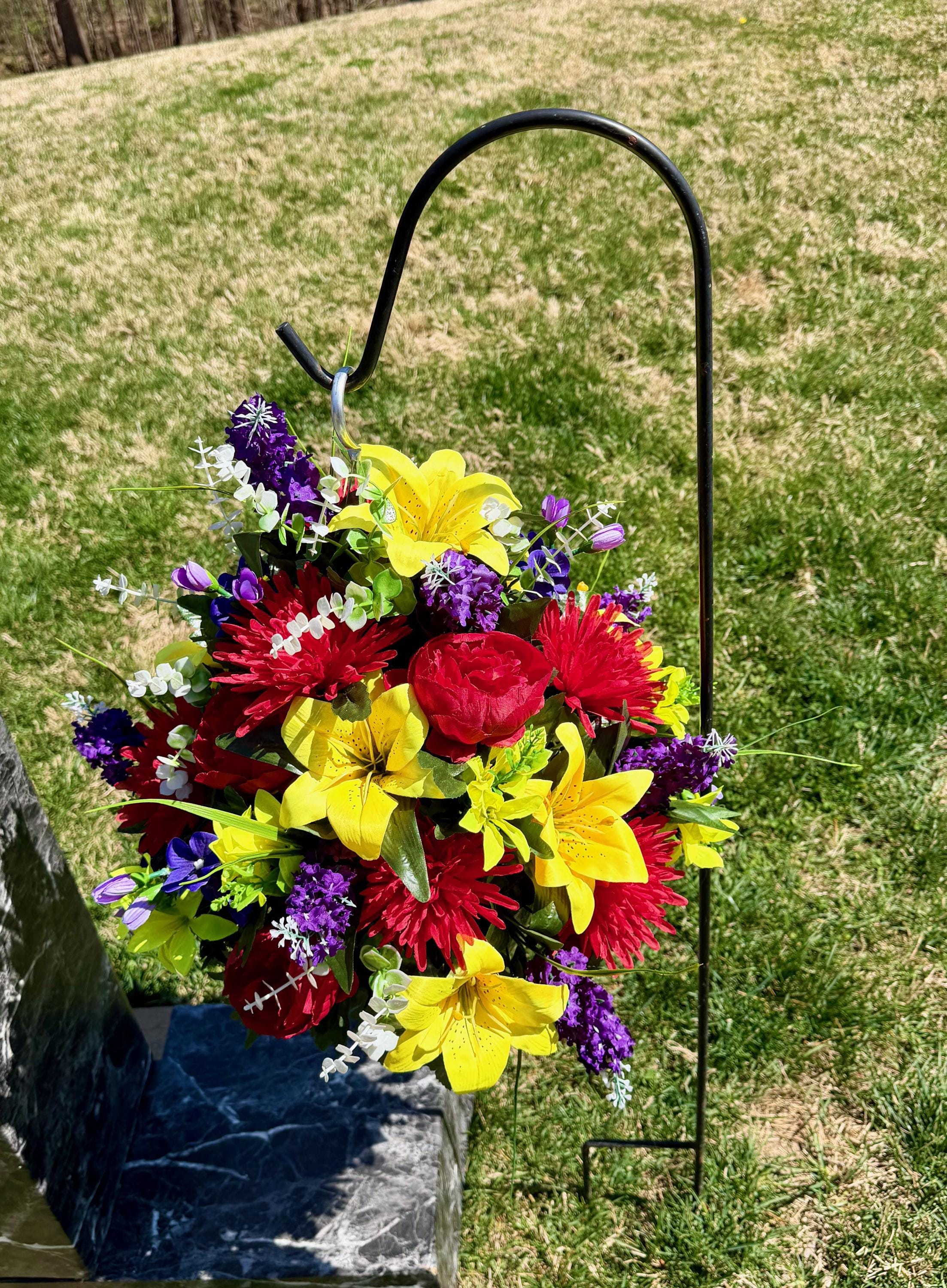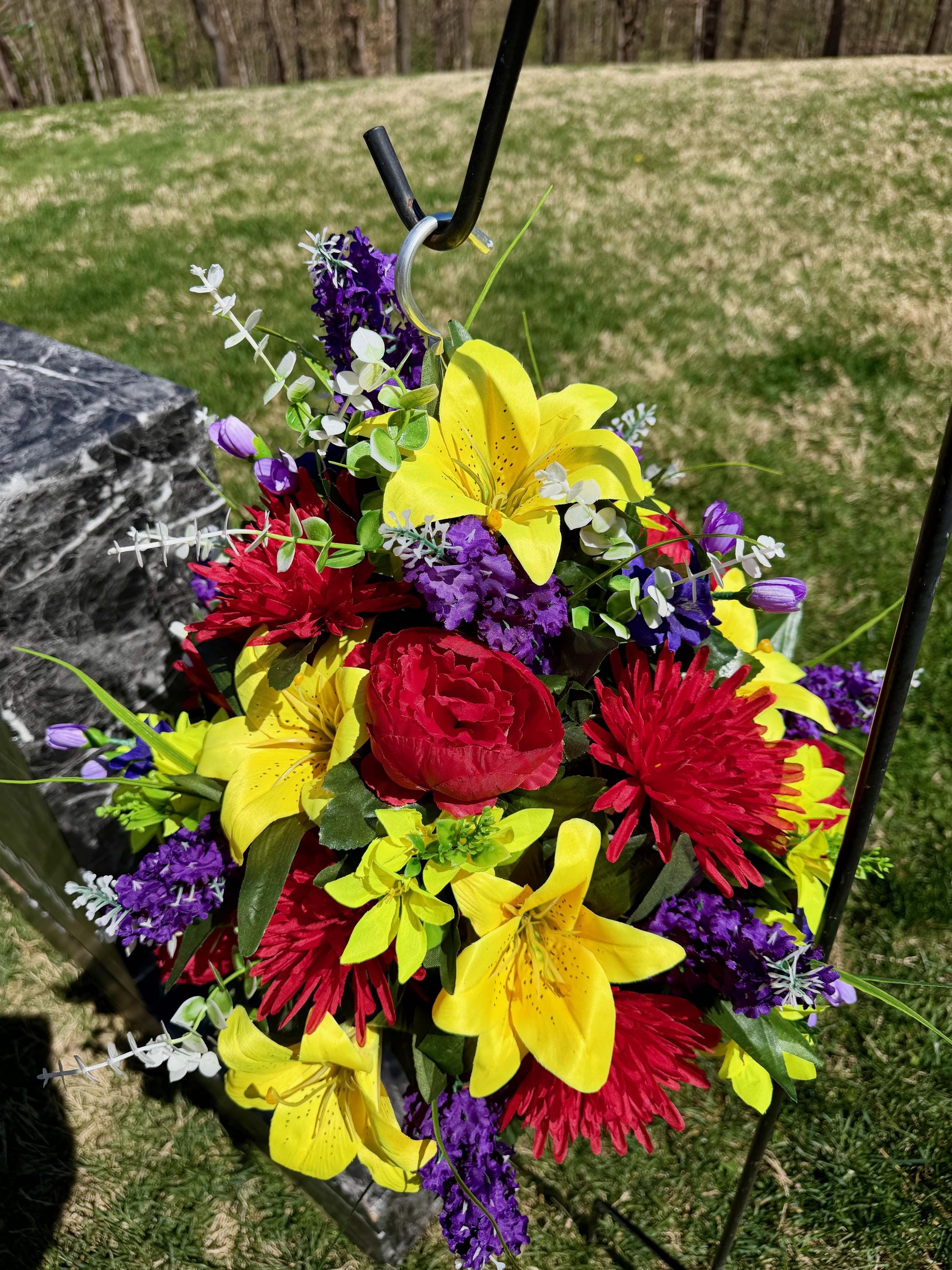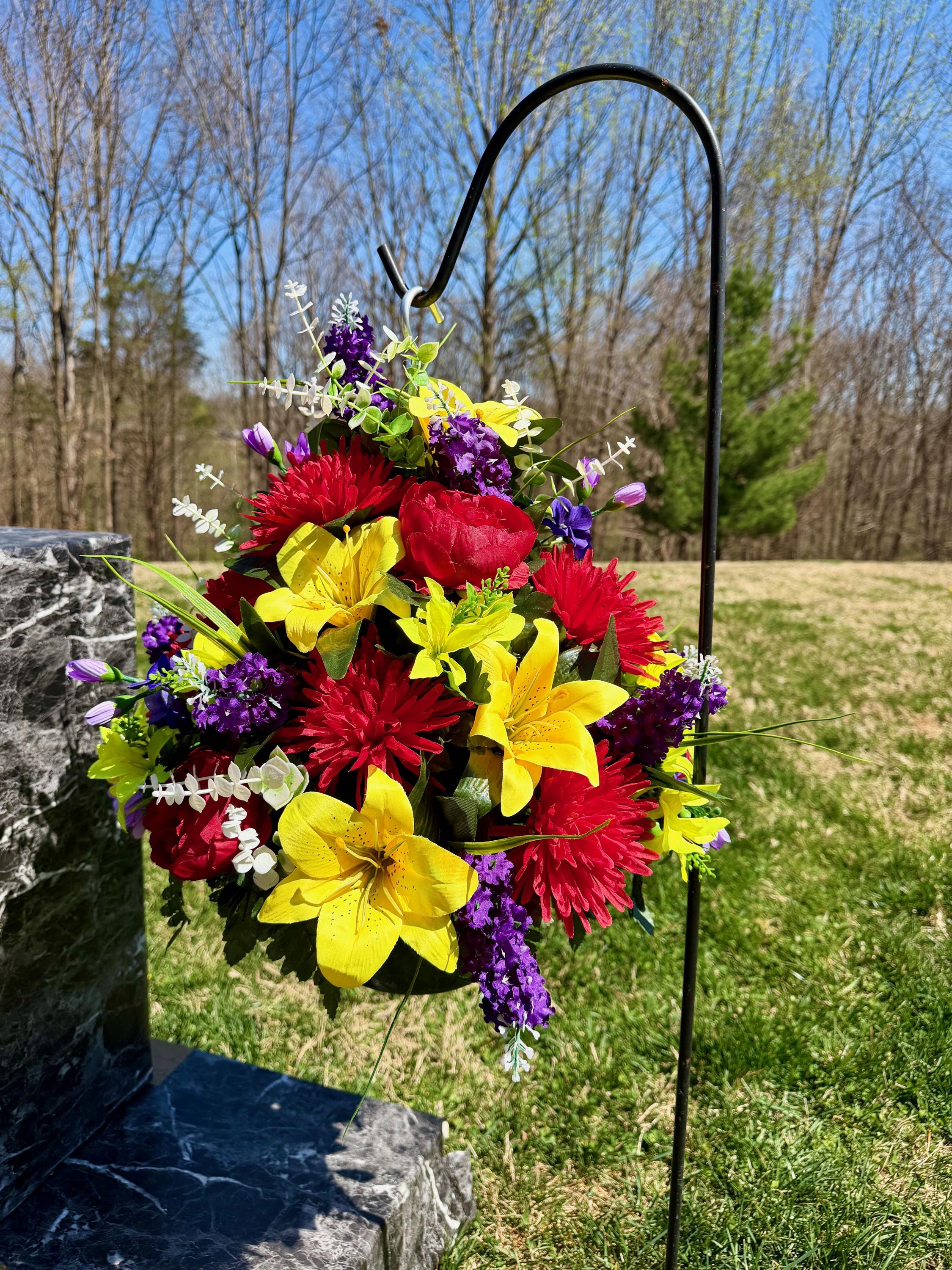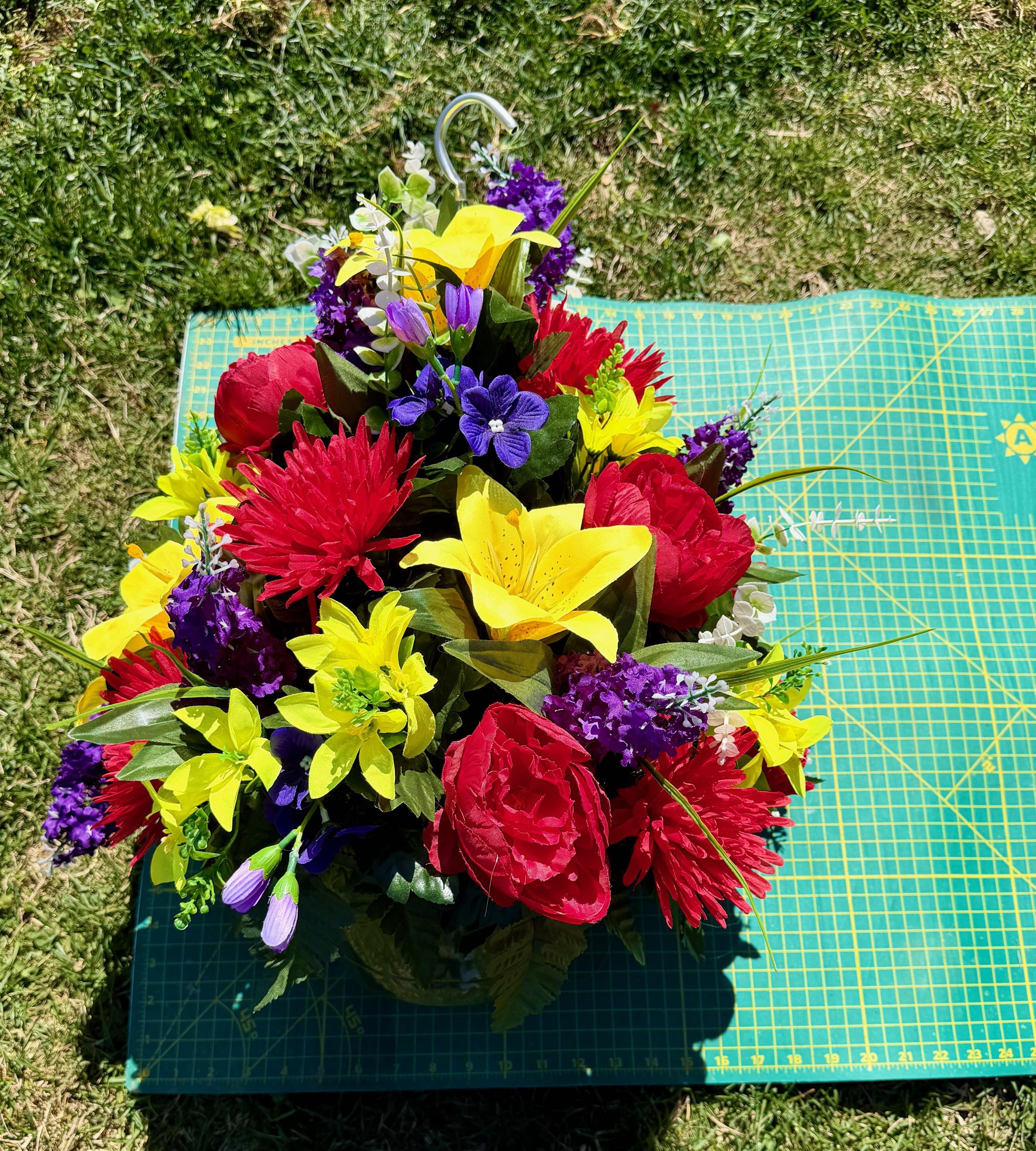 Bright Multi-Color Cemetery Hanging Basket, Grave Decorations, Memorial Flowers