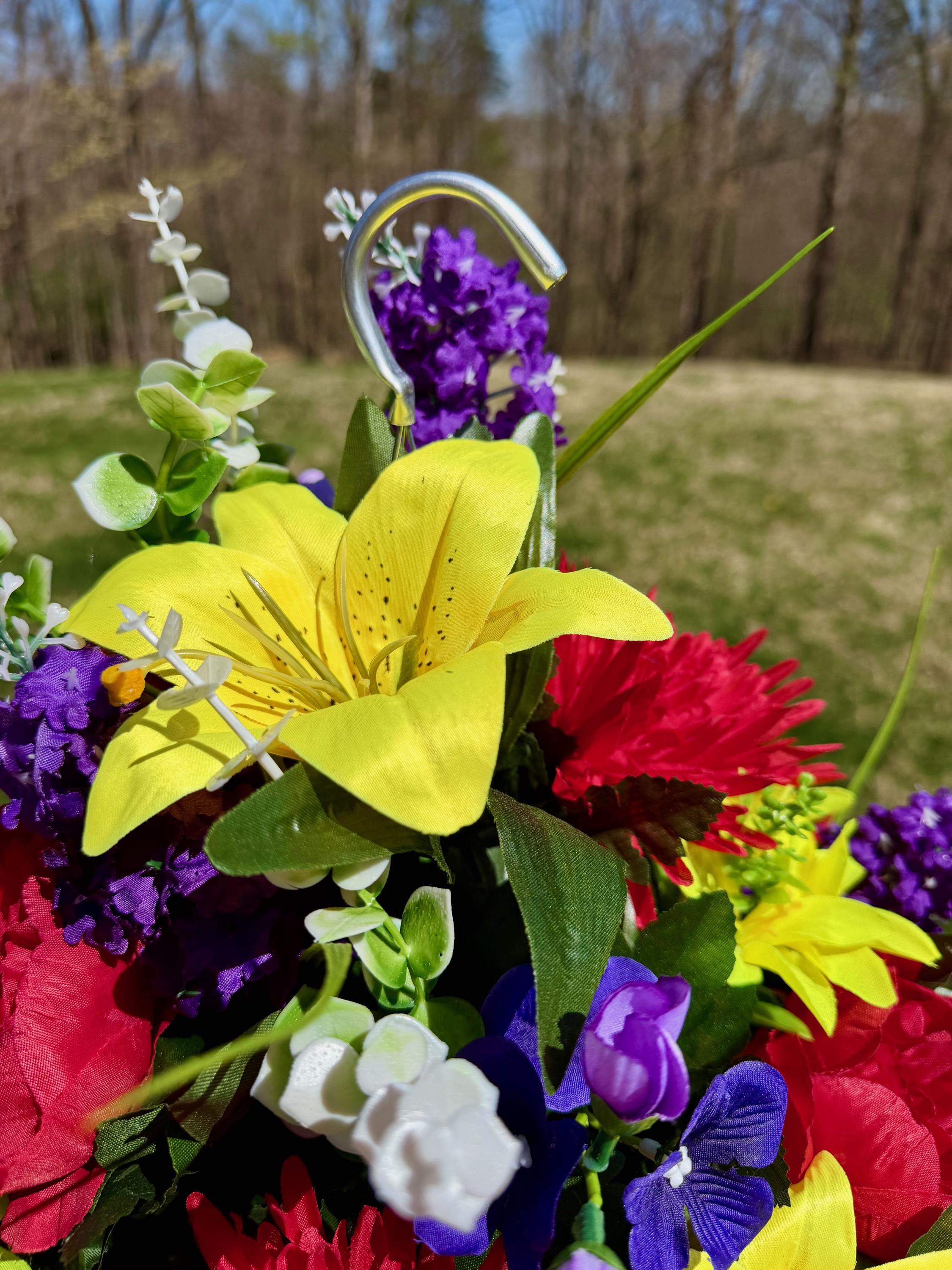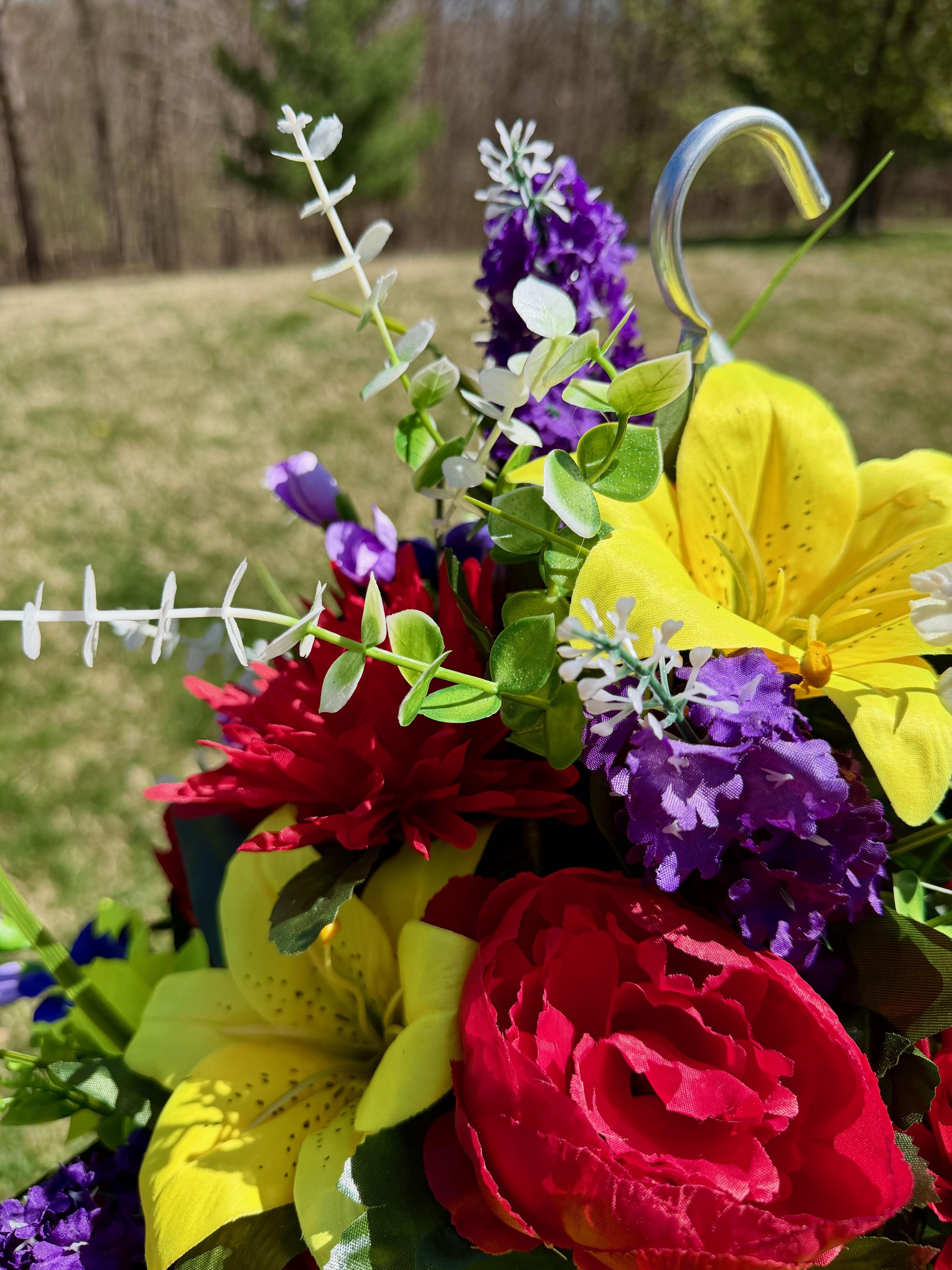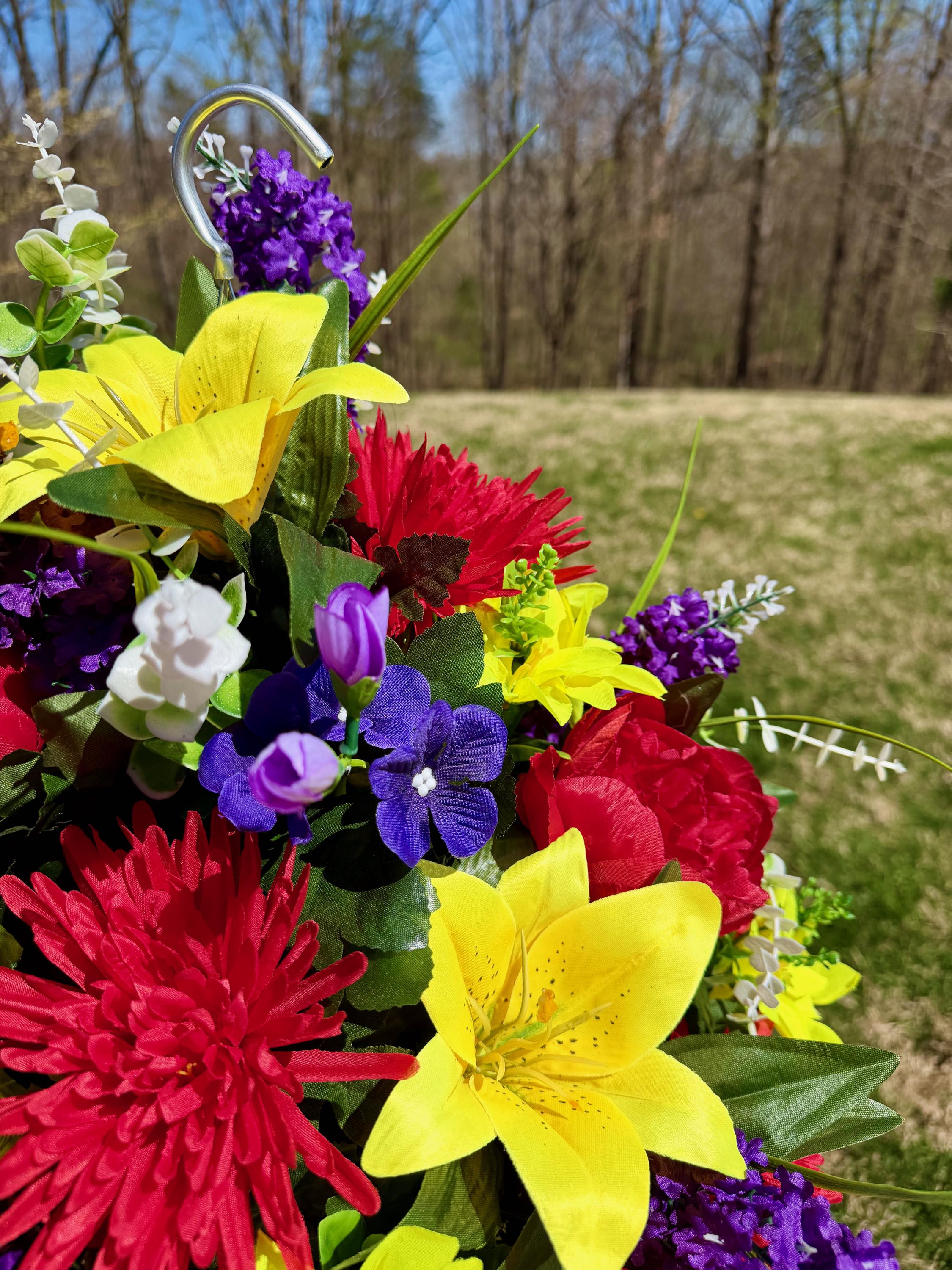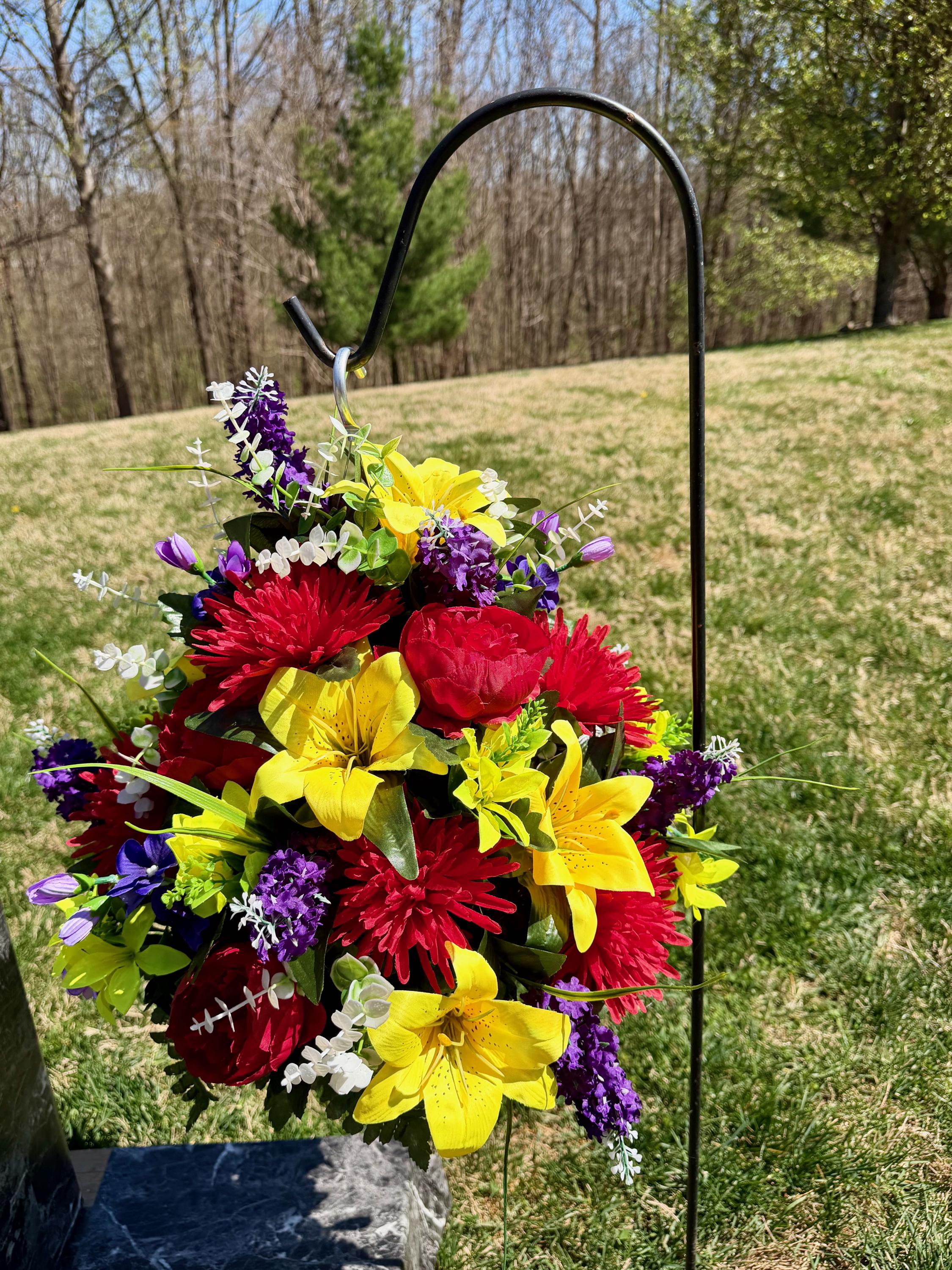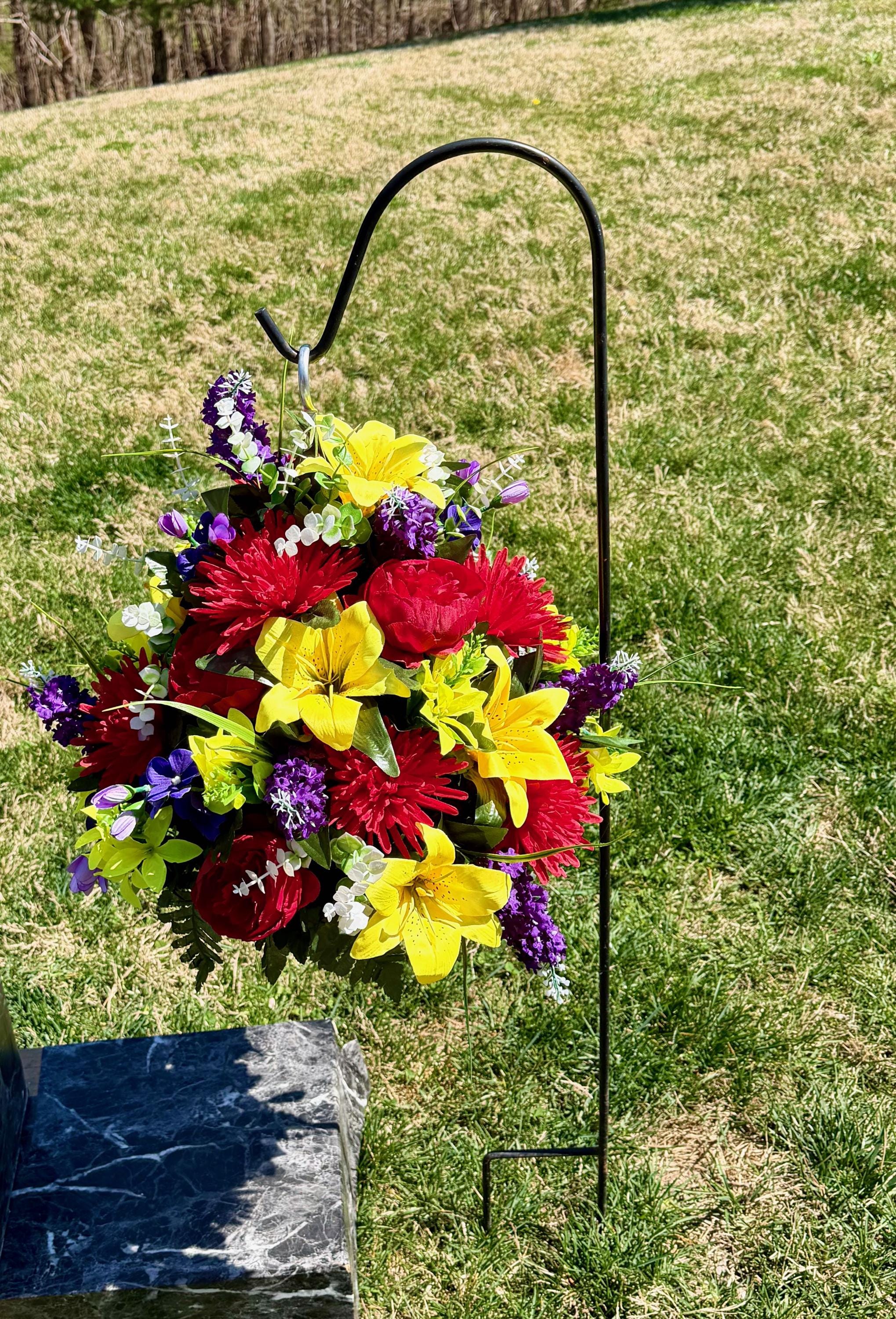 Bright Multi-Color Cemetery Hanging Basket, Grave Decorations, Memorial Flowers