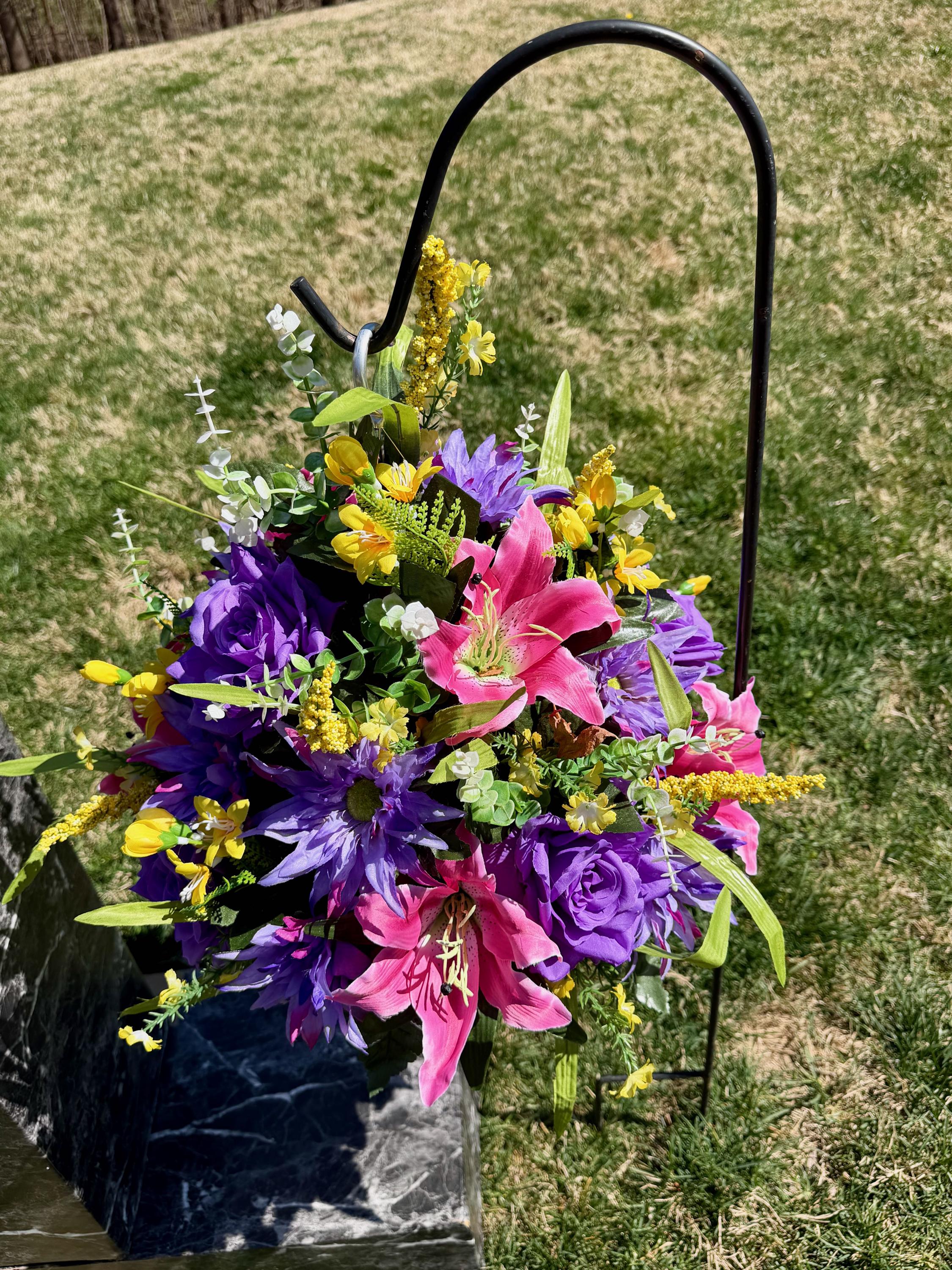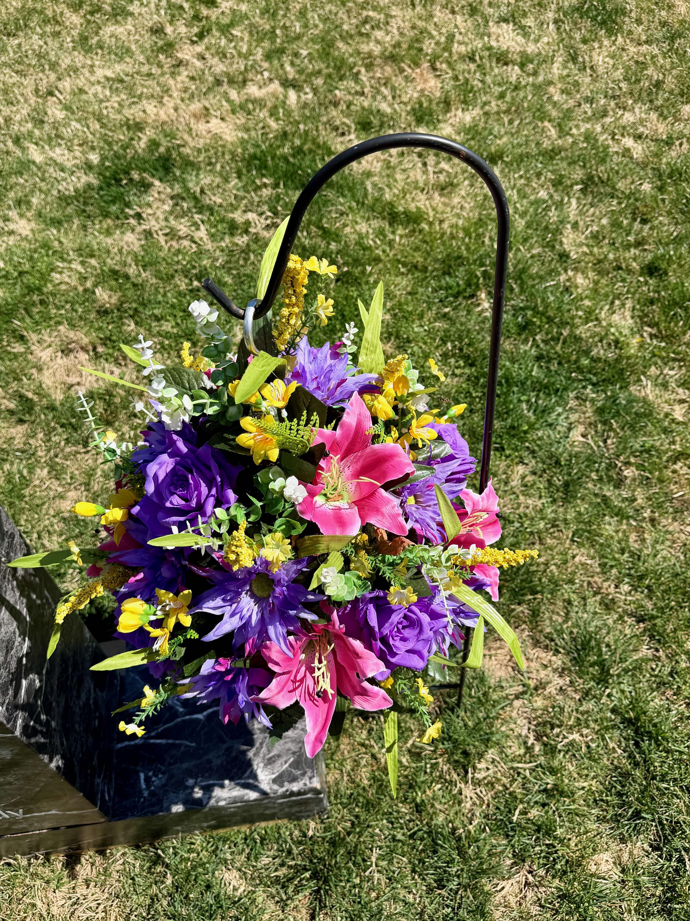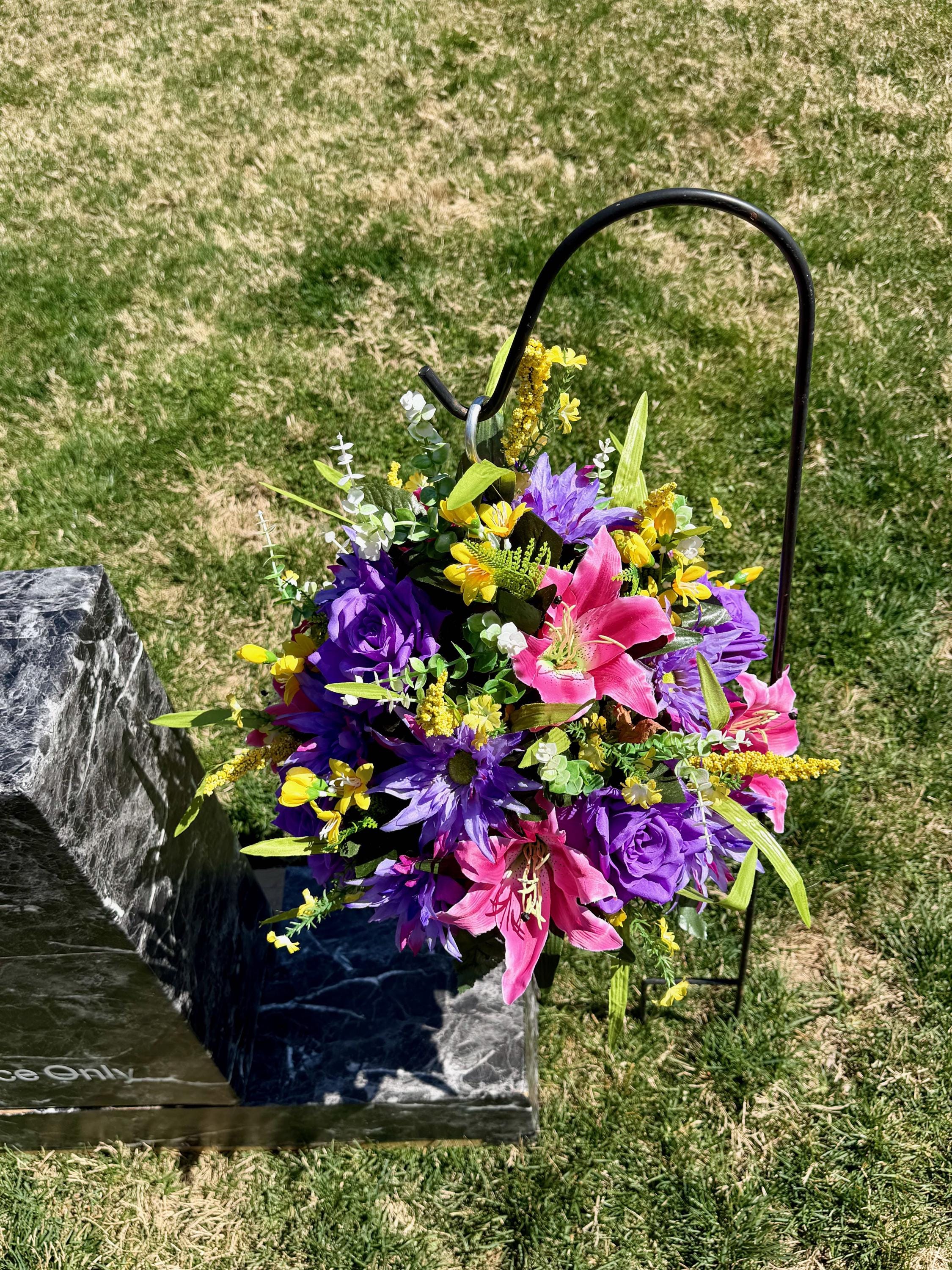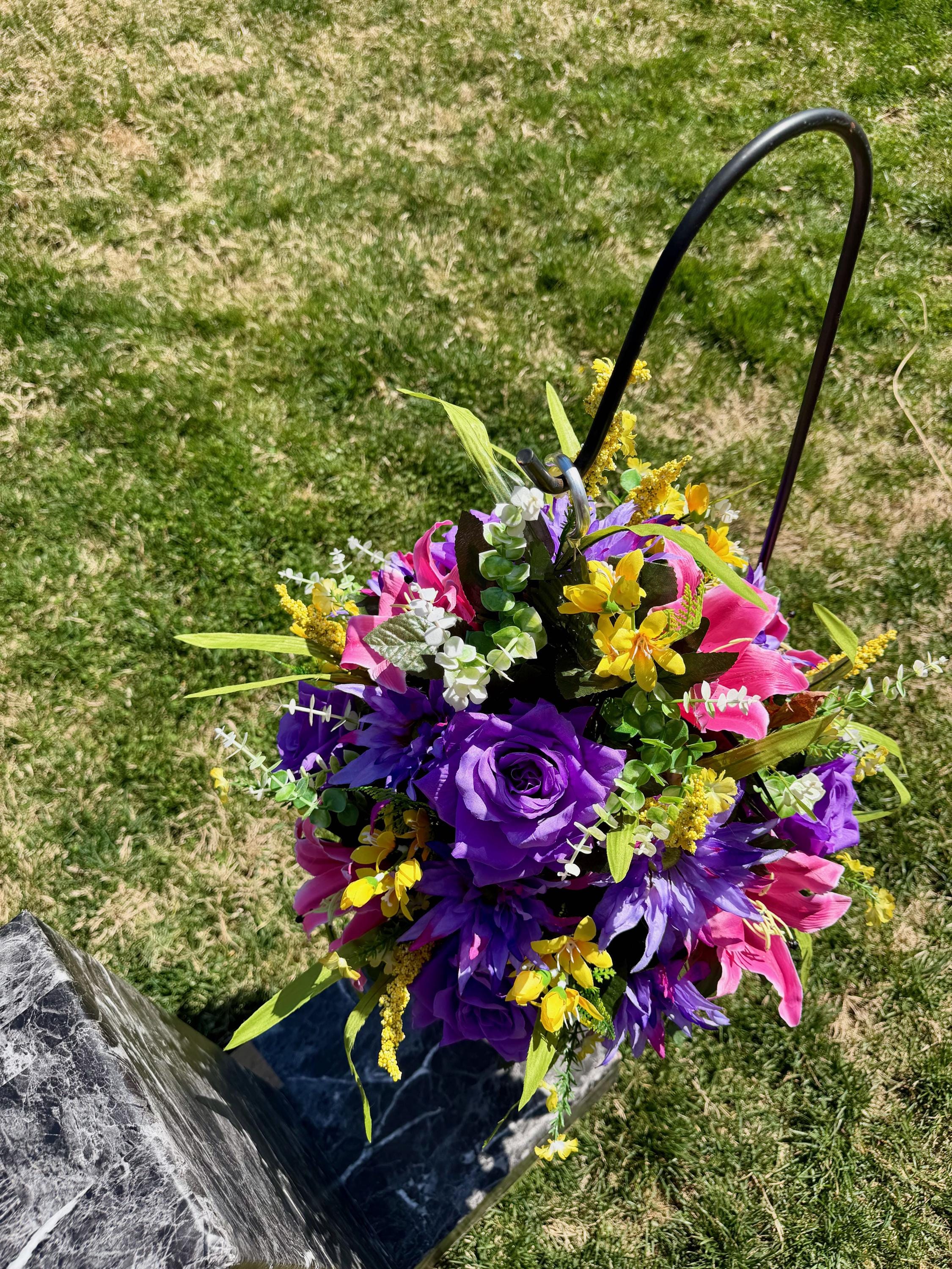 Yellows, Pinks and Purples Cemetery Hanging Basket, Grave Decorations, Memorial Flowers