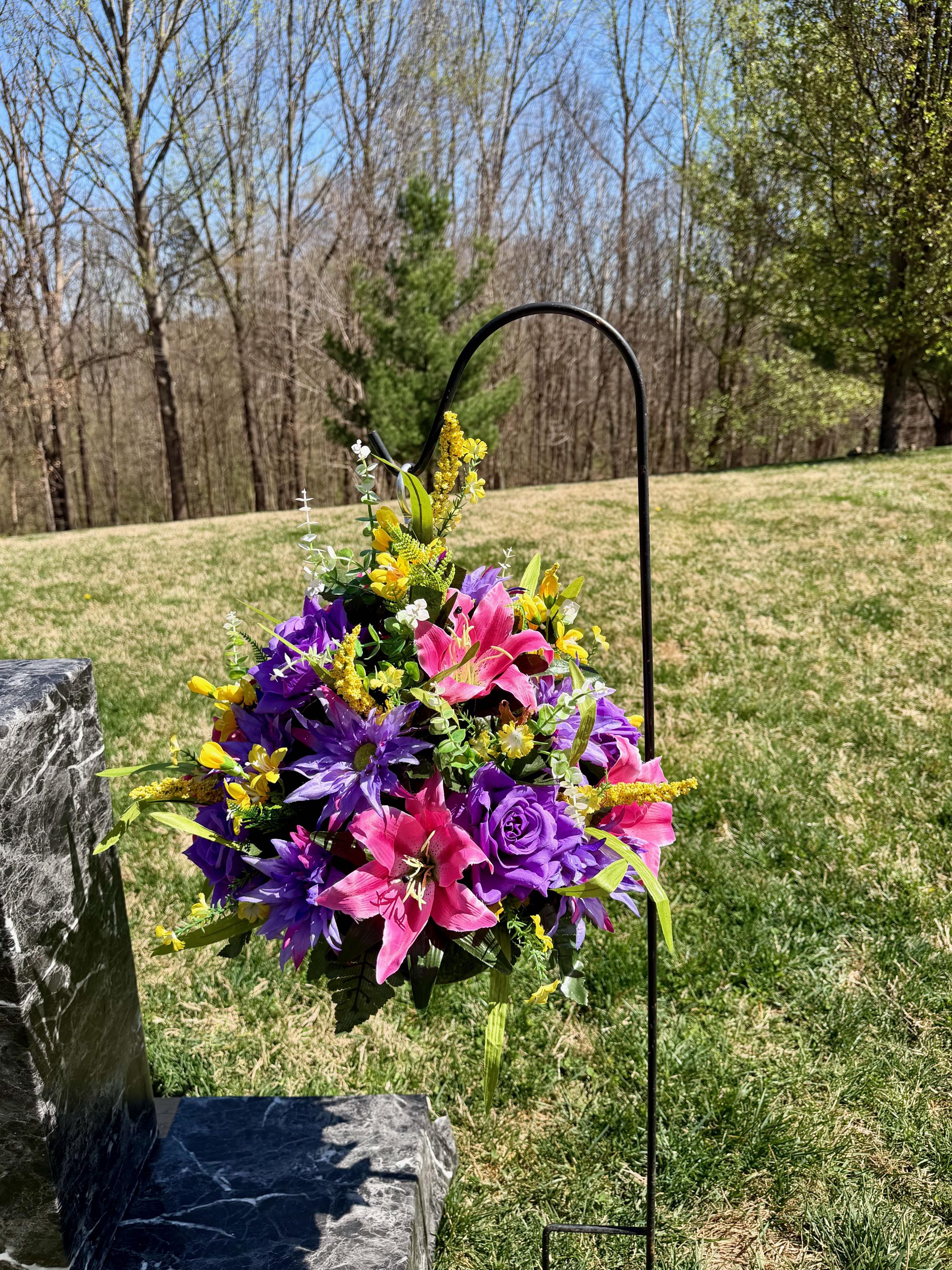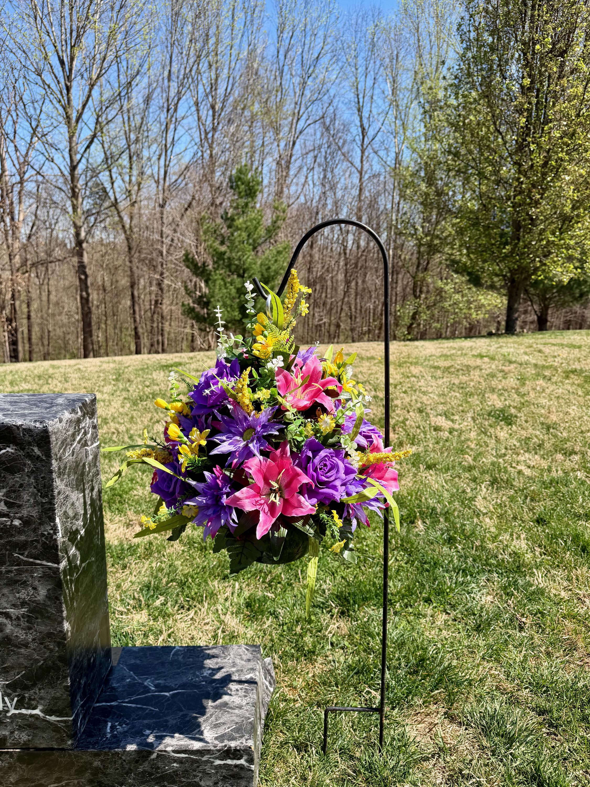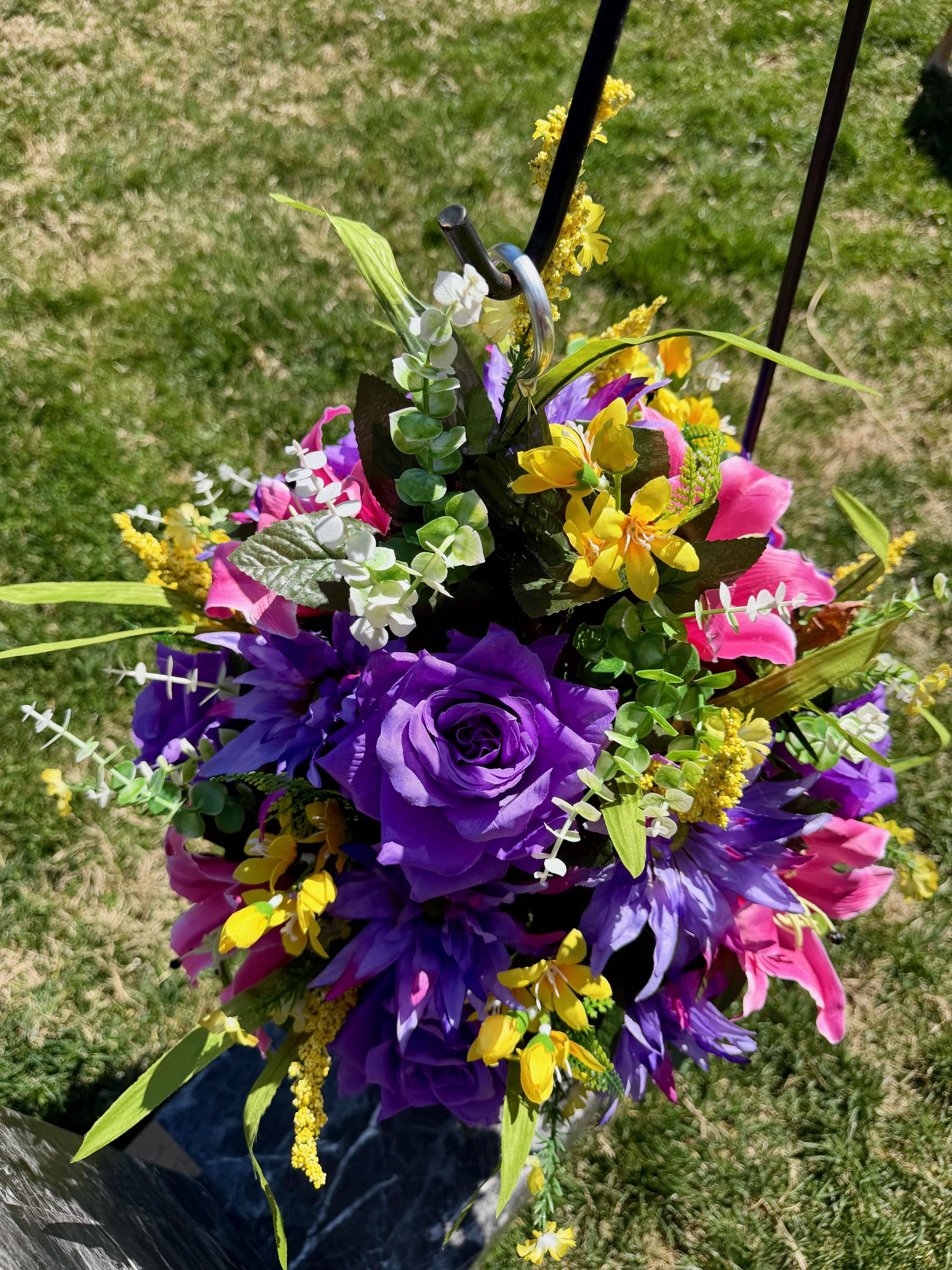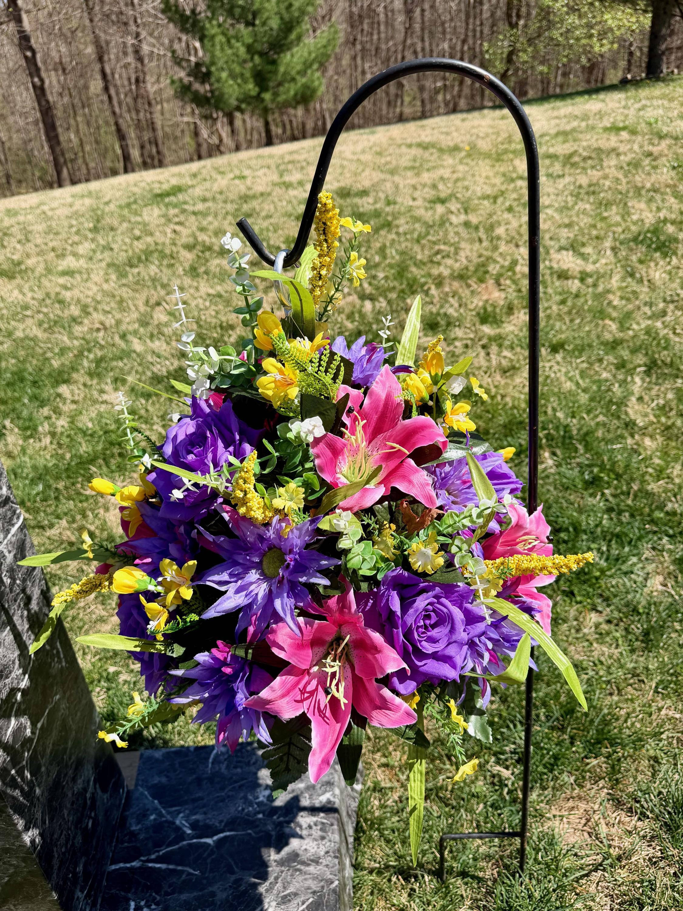 Yellows, Pinks and Purples Cemetery Hanging Basket, Grave Decorations, Memorial Flowers