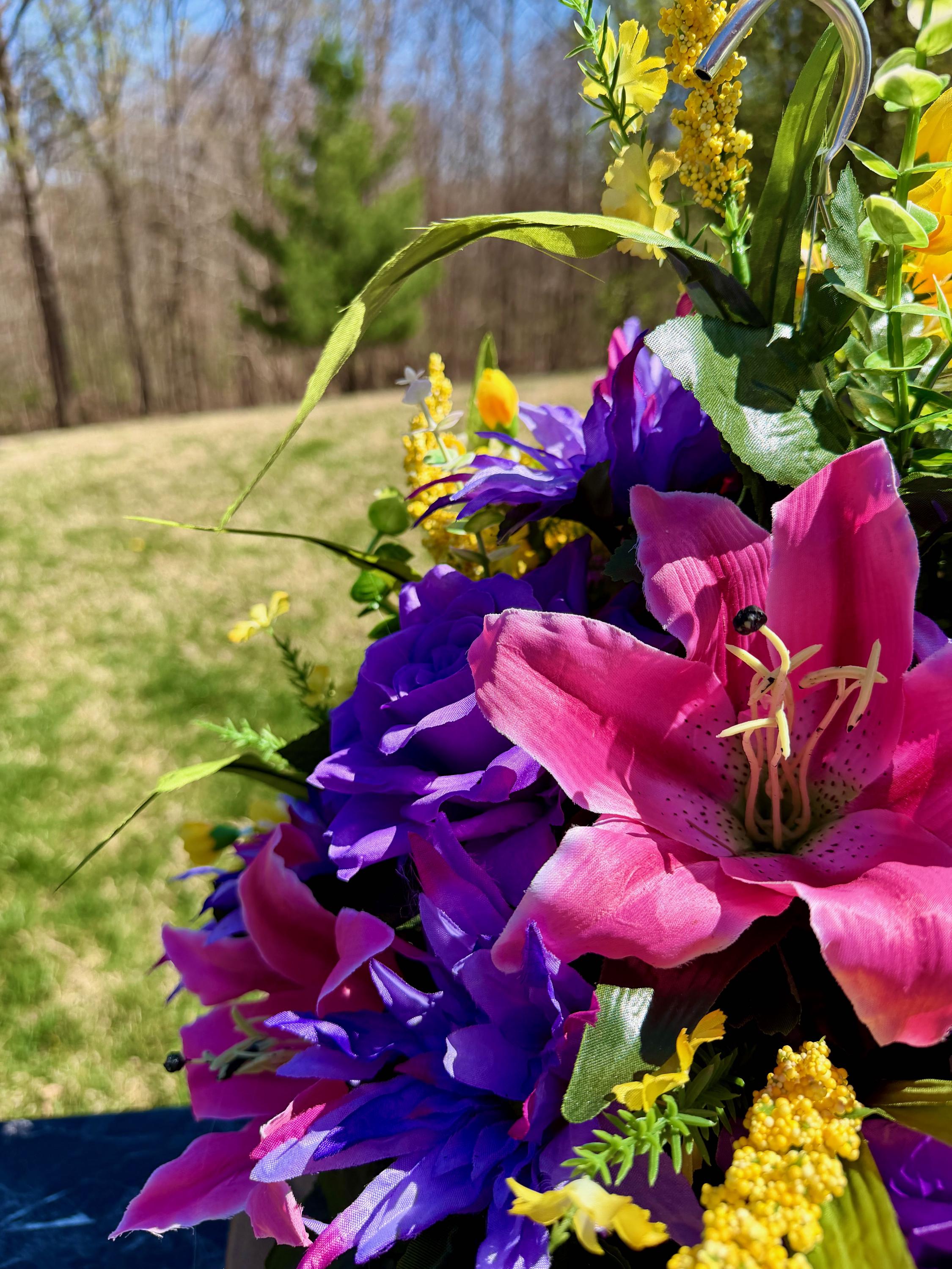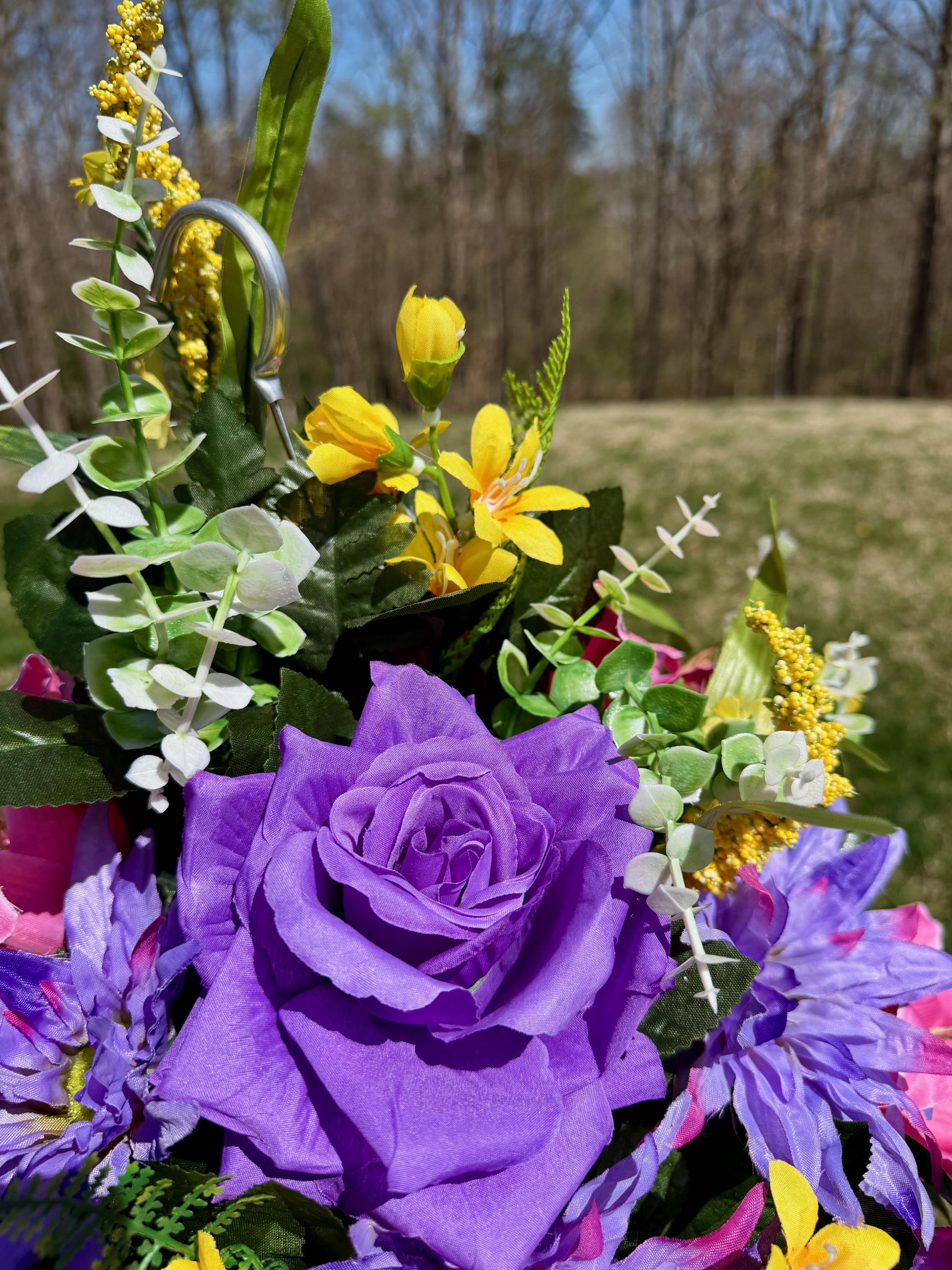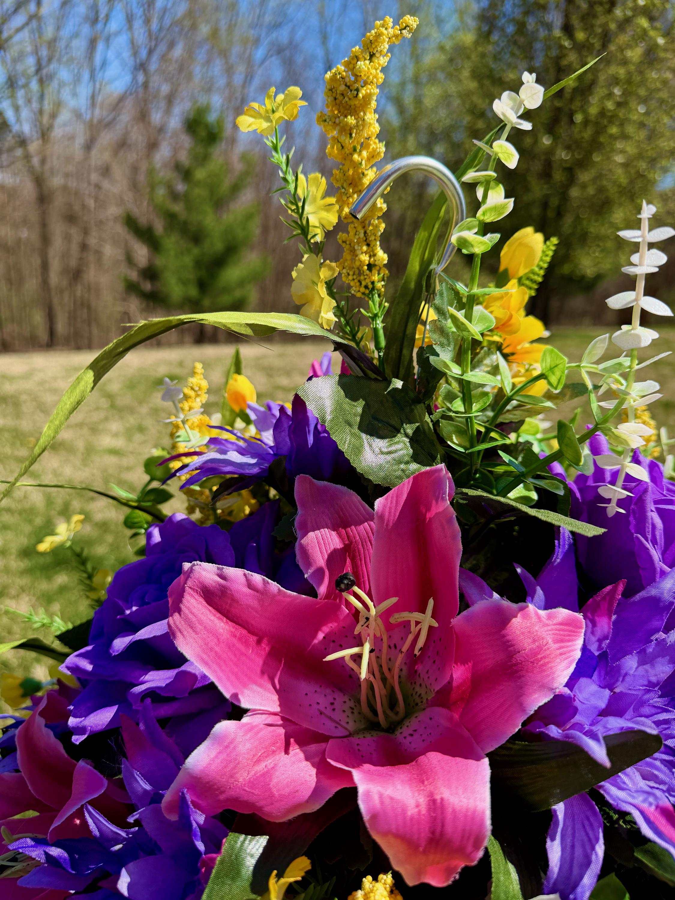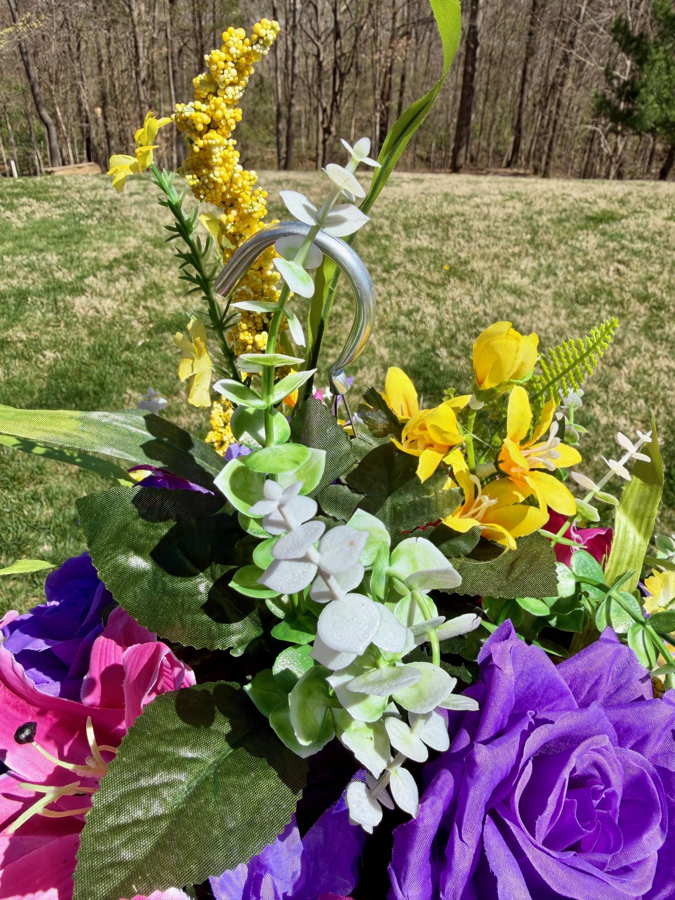 Yellows, Pinks and Purples Cemetery Hanging Basket, Grave Decorations, Memorial Flowers