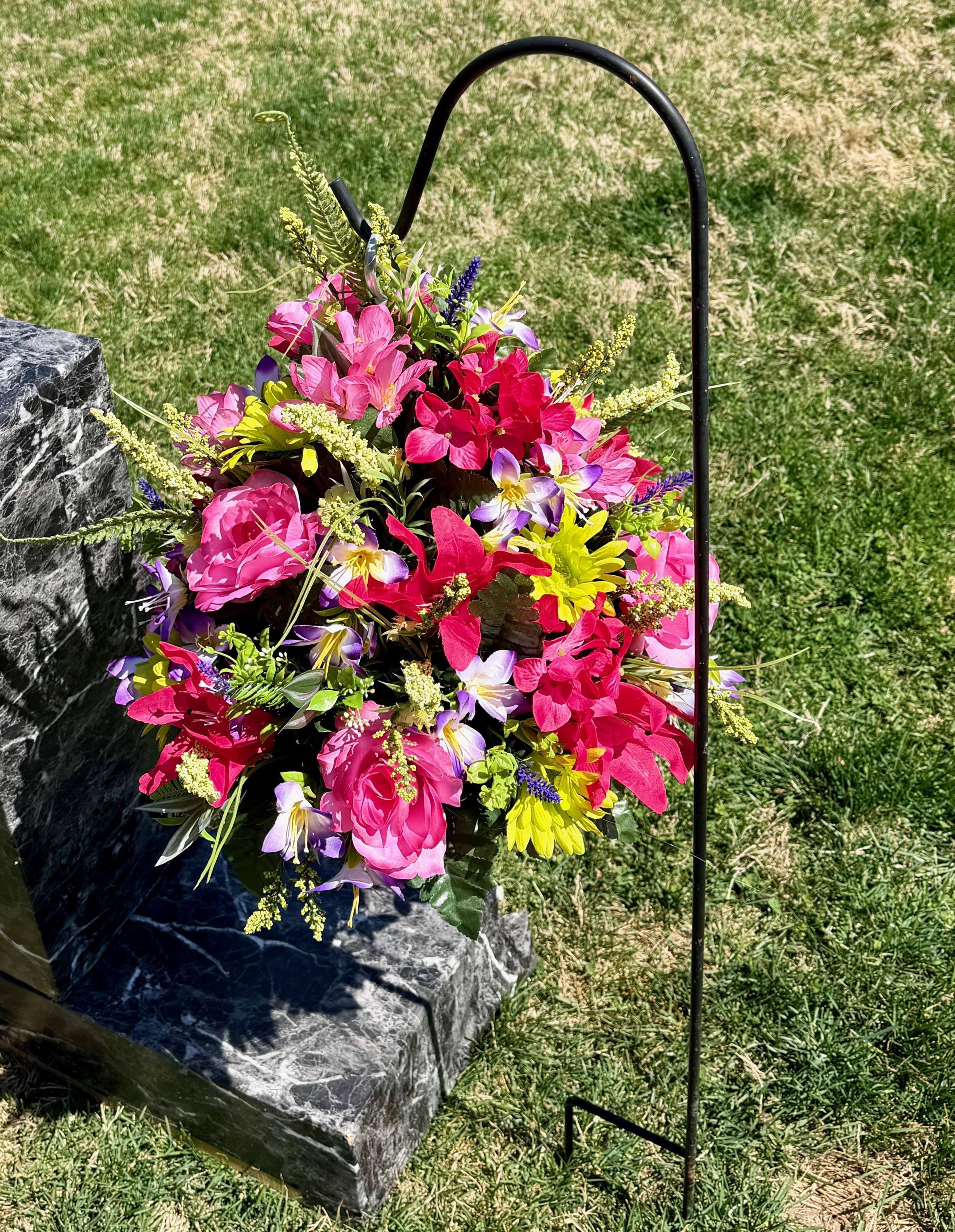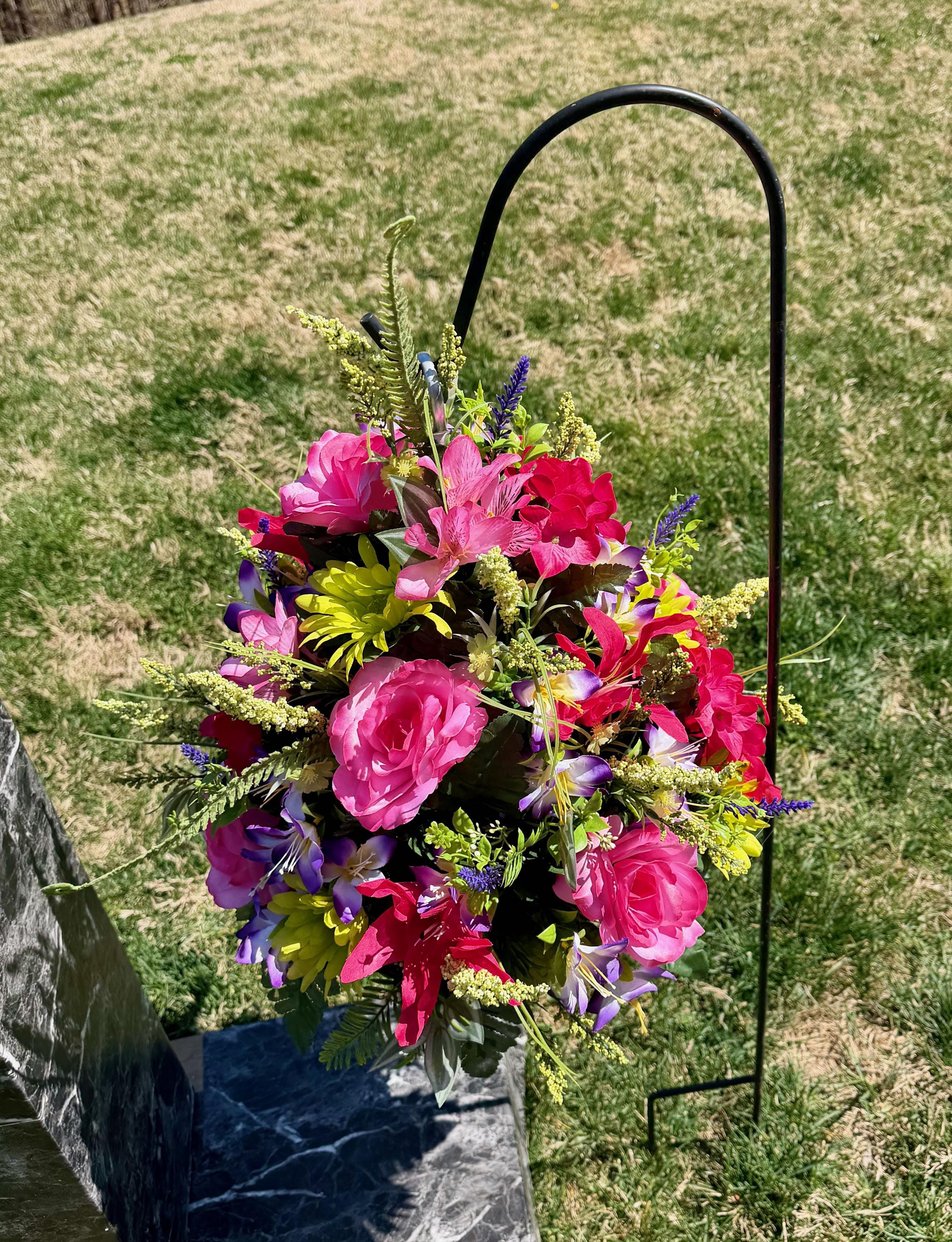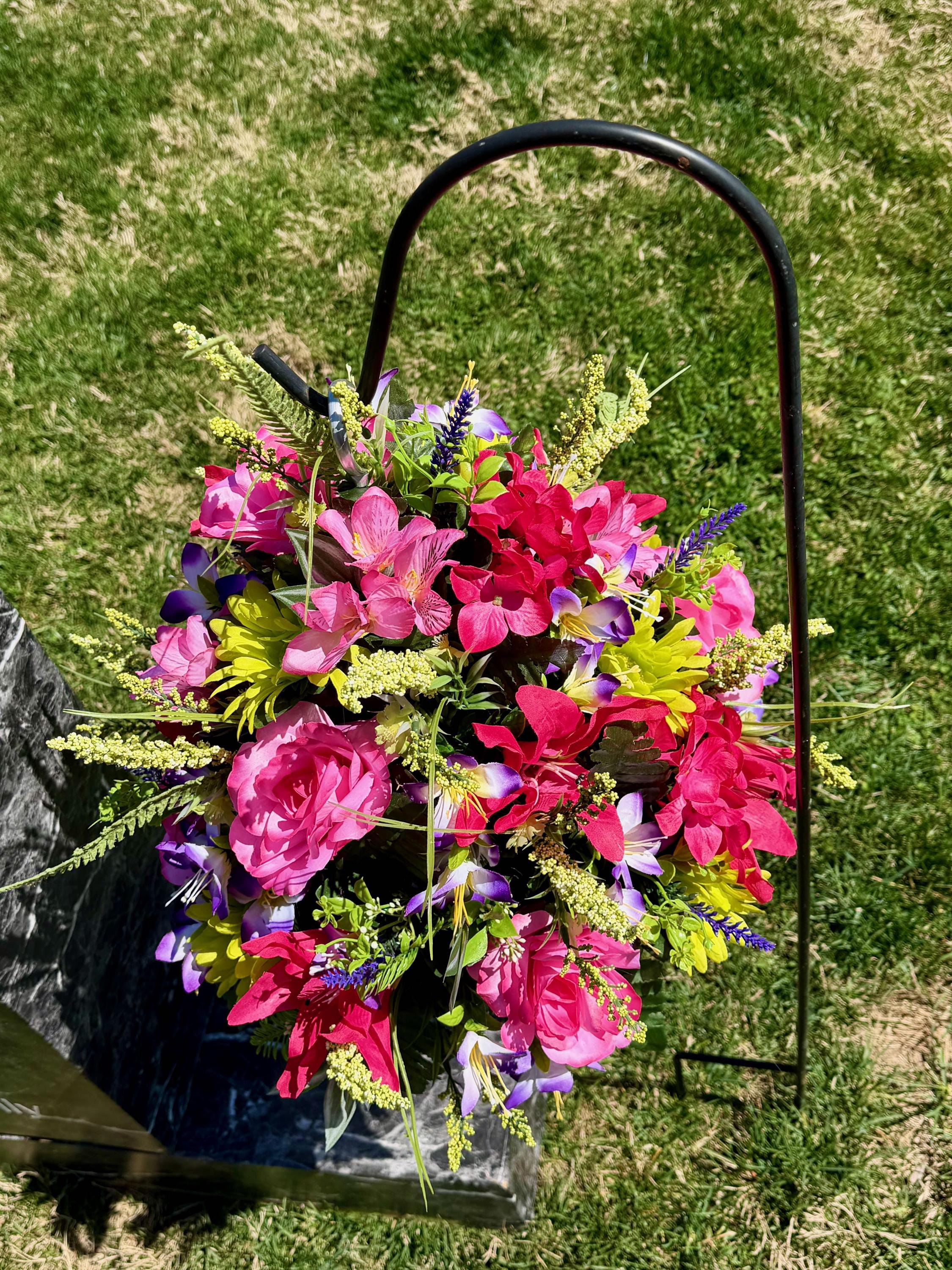Pinks, Purples and Greens Cemetery Hanging Basket, Grave Decorations, Memorial Flowers