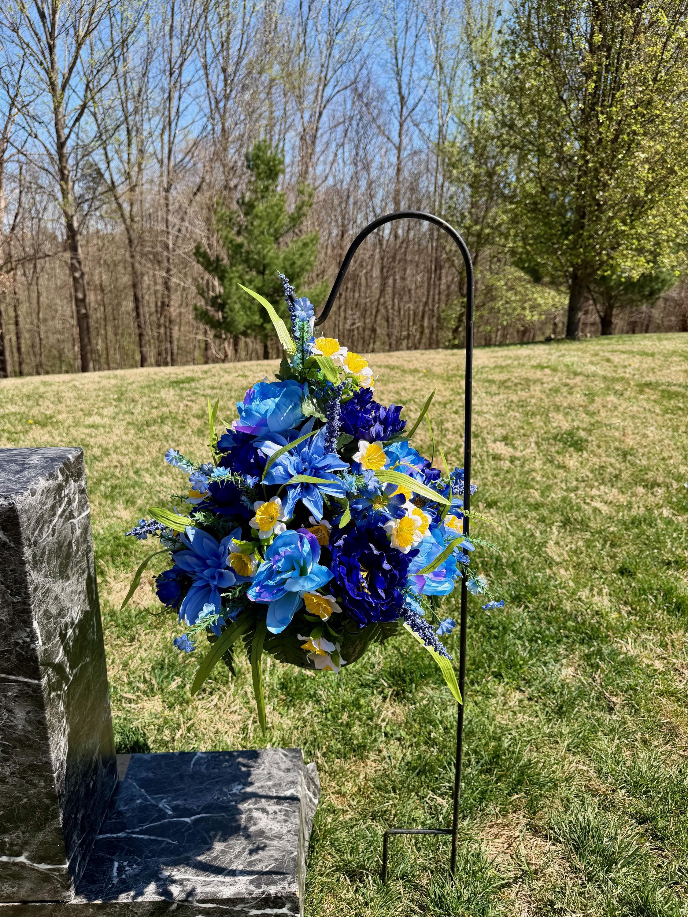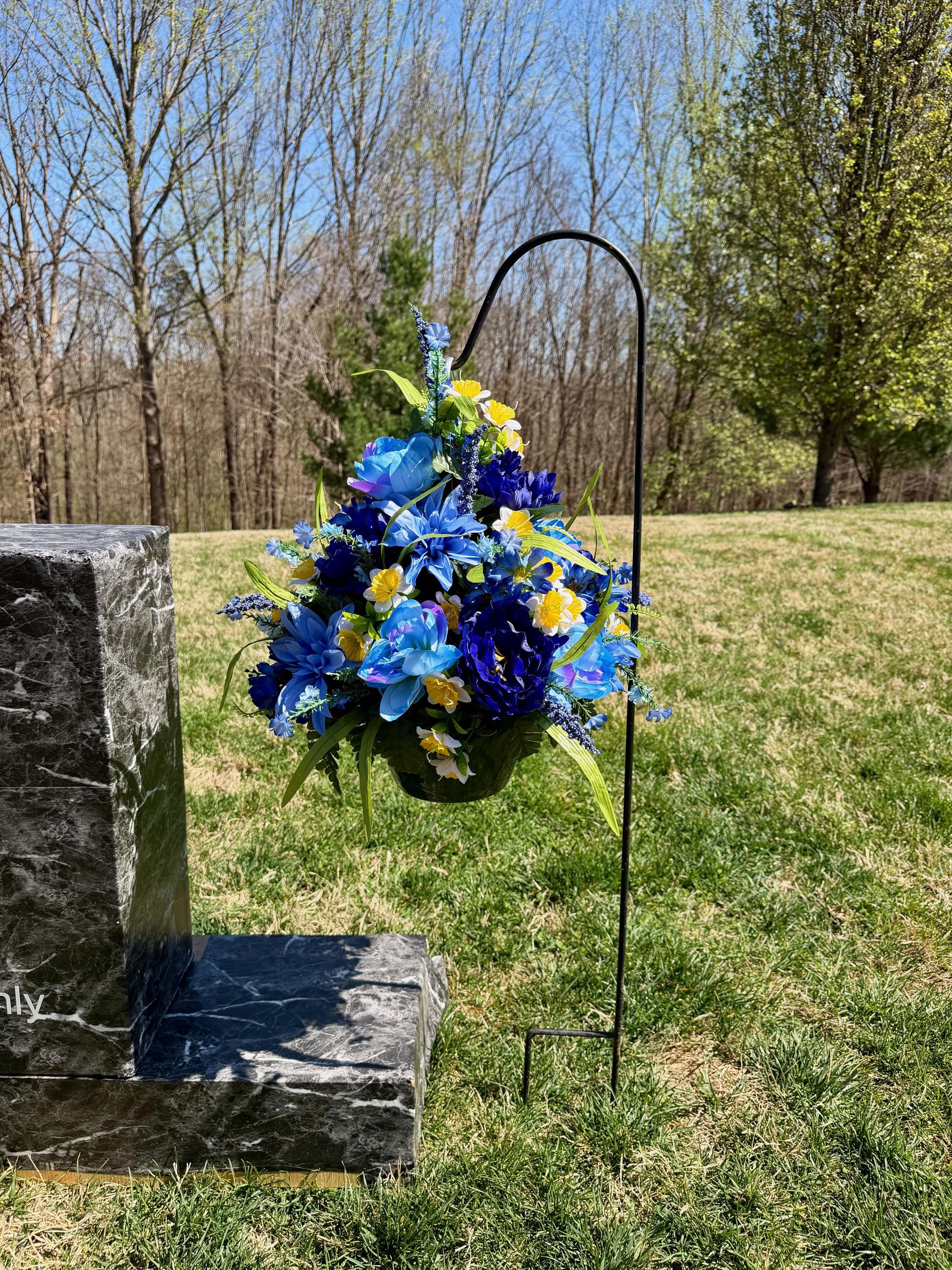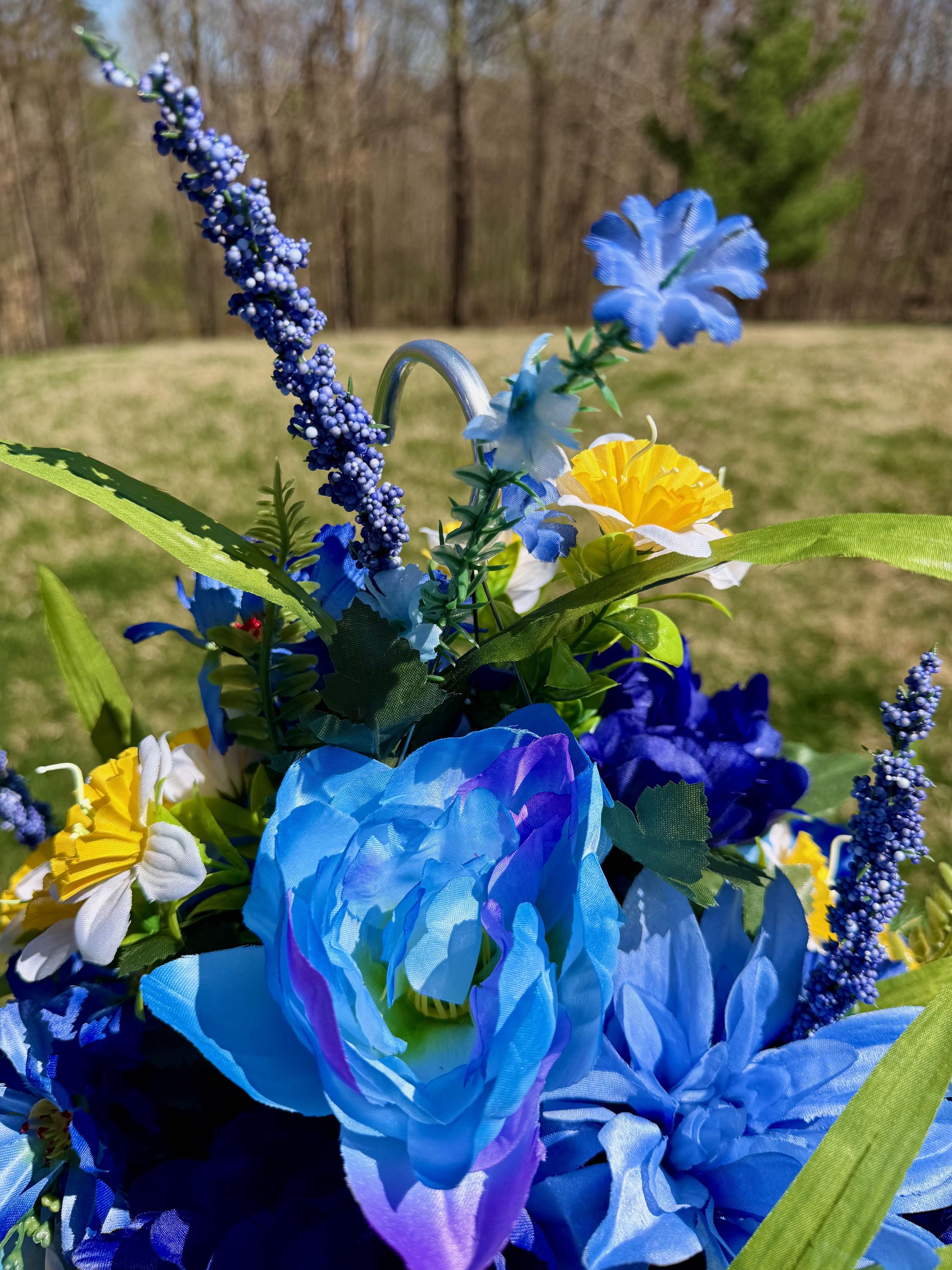 Beautiful Blue and Yellow Cemetery Hanging Basket, Grave Decorations, Memorial Flowers