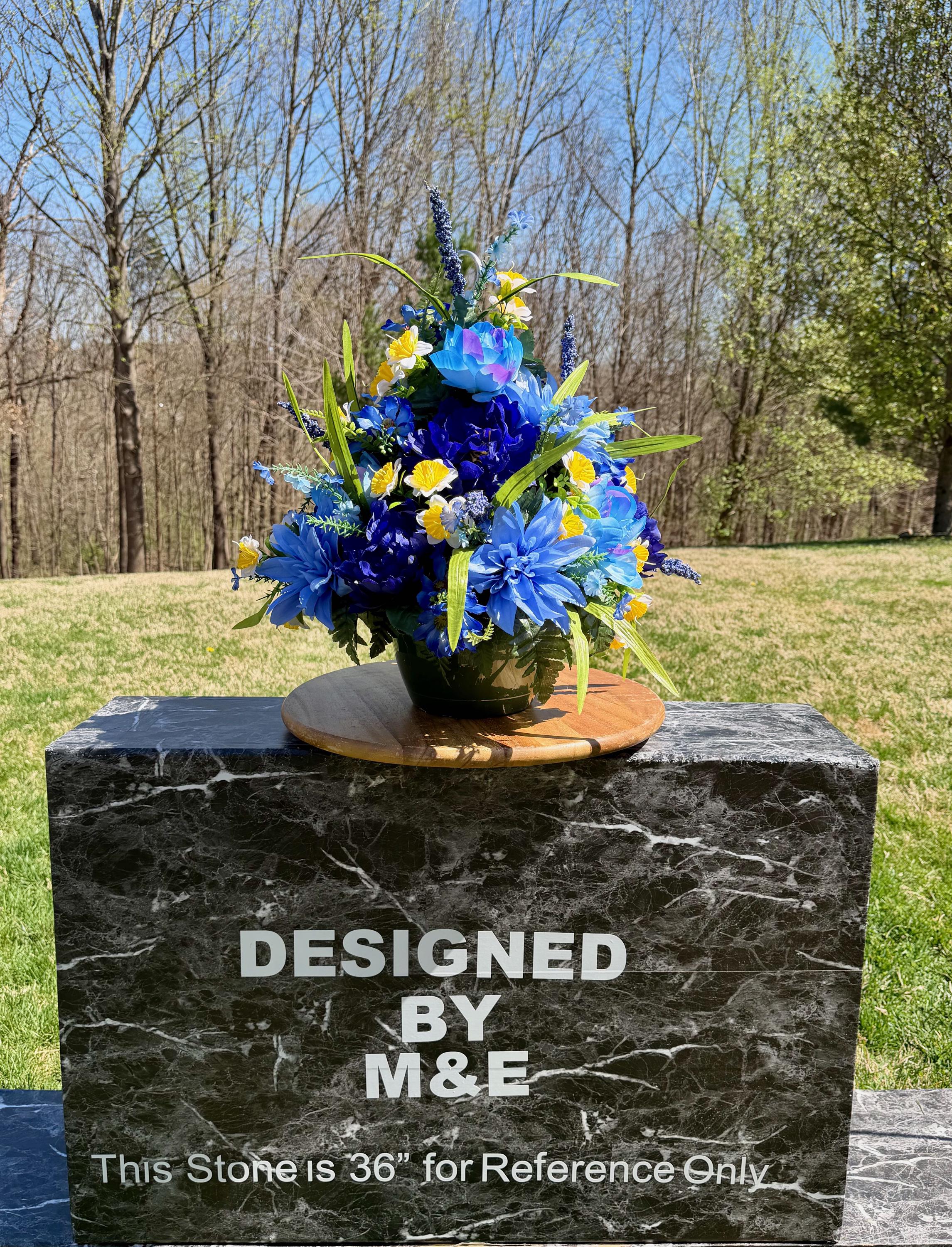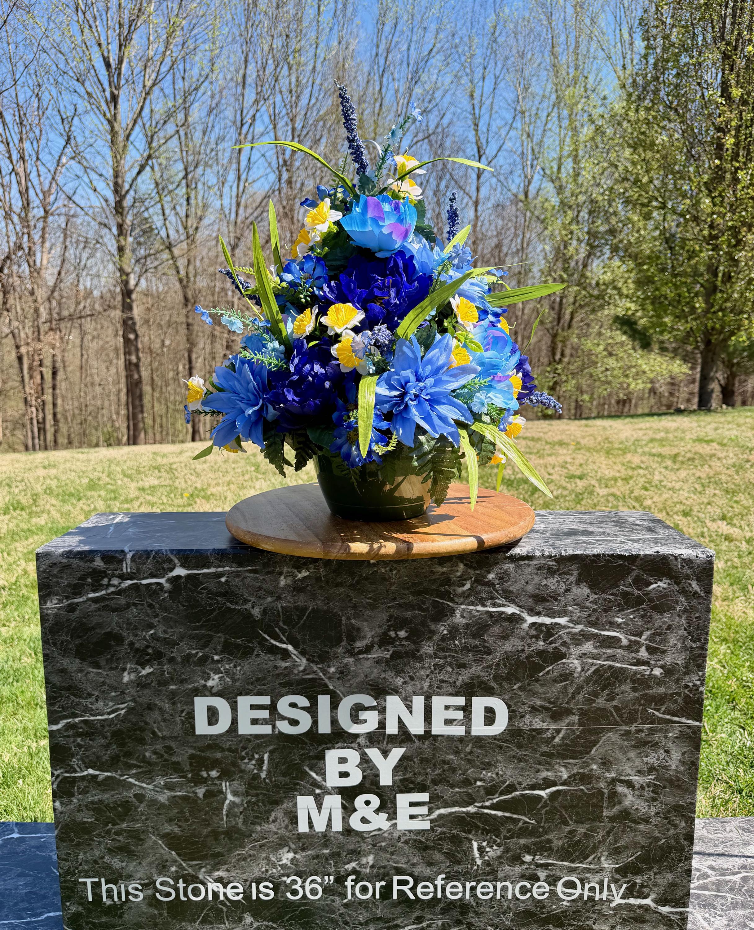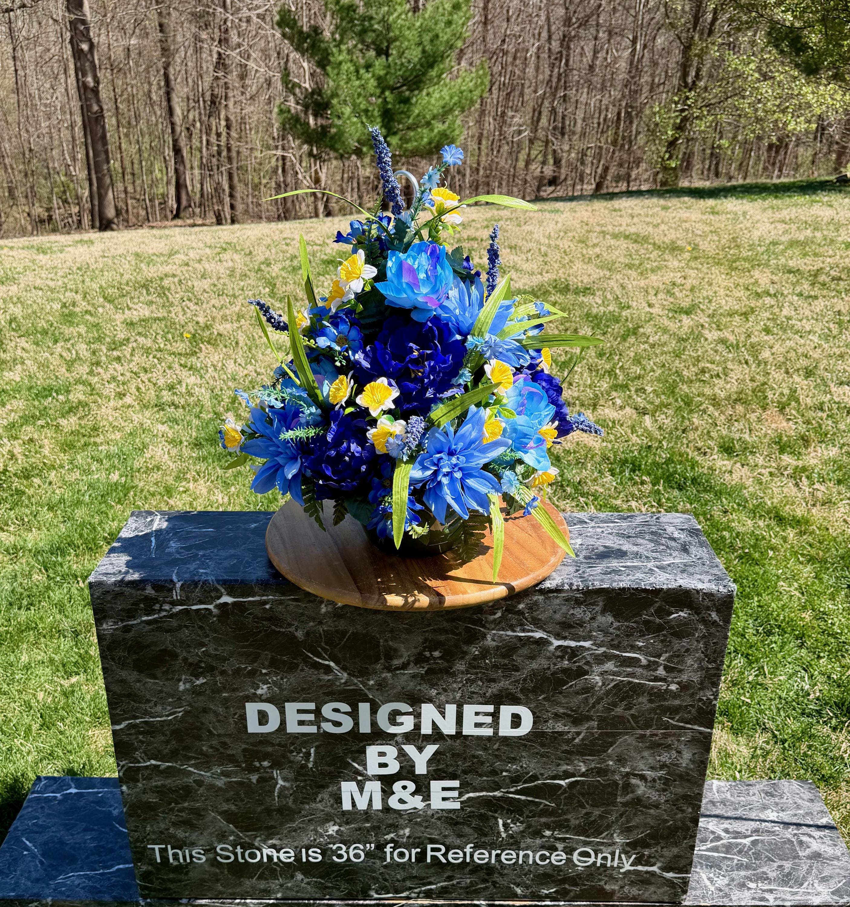 We’re a small, family-operated business consisting of myself, my husband, and my daughter. We personally manage every order and strive for excellent customer service. All our arrangements use high-quality silk flowers, though all silk blooms may fade over time. Each stem is glued into foam to withstand the elements. Designed by M&E uses only premium silks, and we put genuine care into every piece we create. Rest assured, the arrangement shown in our photos is exactly the one you’ll receive, as I design and assemble each one myself. If you’re searching for something unique or have a particular flower, color, or matching vases in mind, please contact me to discuss a custom order.