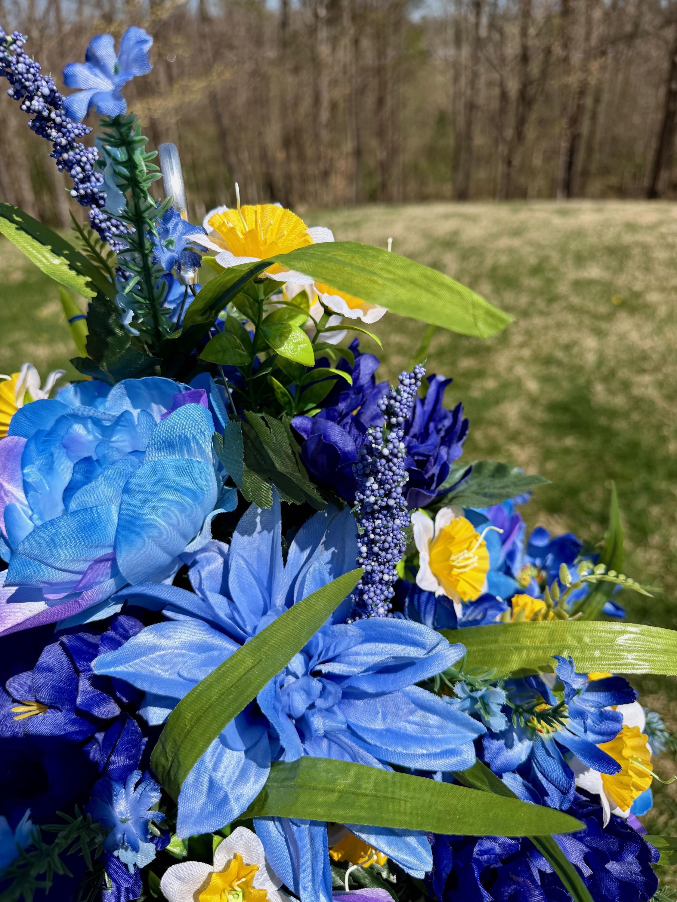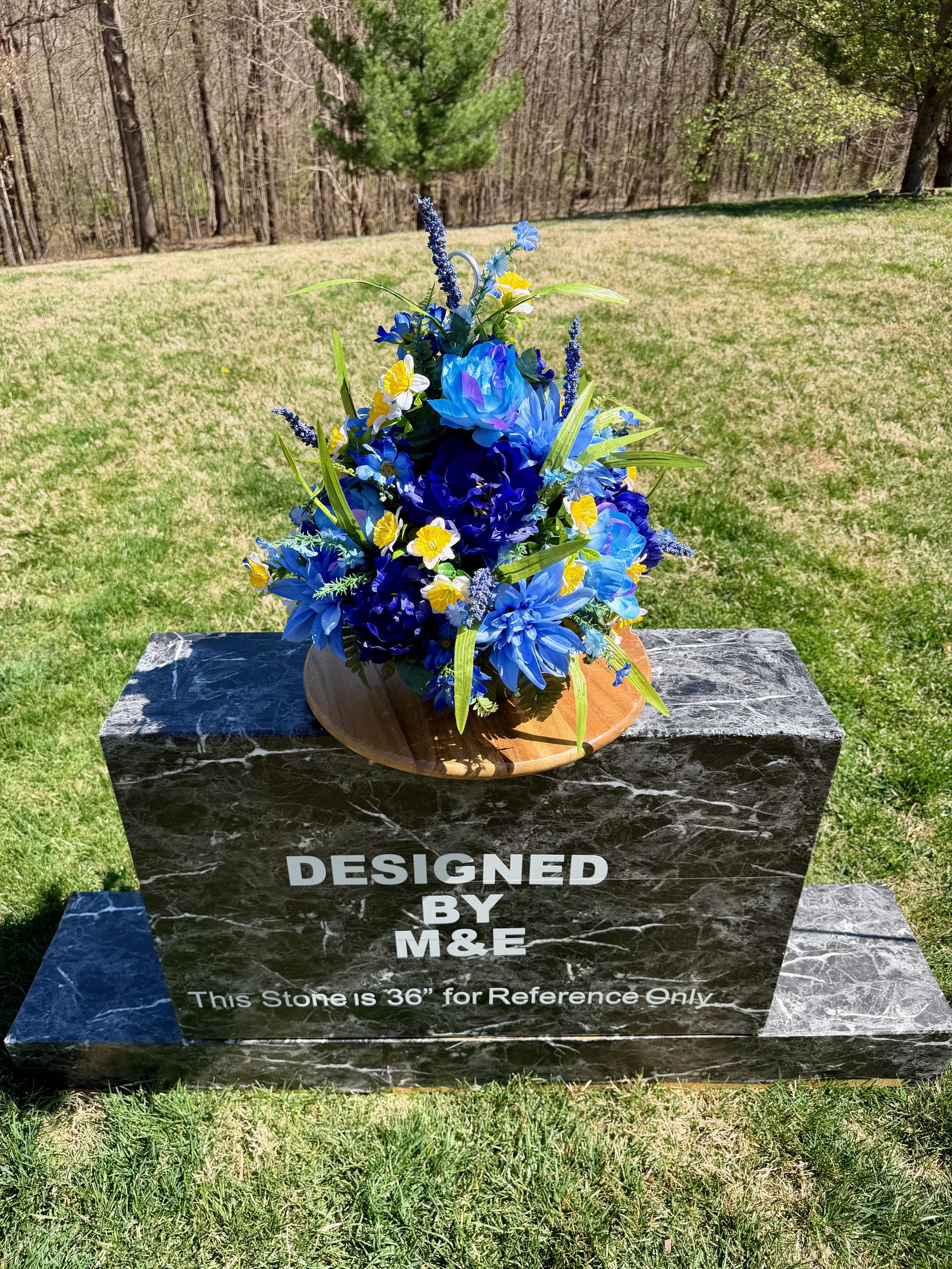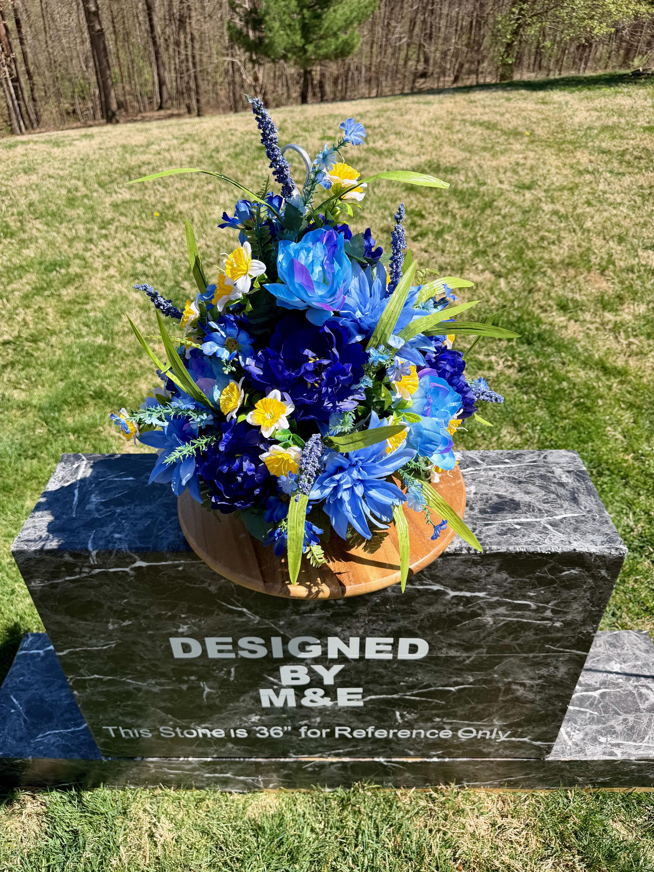 We’re a small, family-operated business consisting of myself, my husband, and my daughter. We personally manage every order and strive for excellent customer service. All our arrangements use high-quality silk flowers, though all silk blooms may fade over time. Each stem is glued into foam to withstand the elements. Designed by M&E uses only premium silks, and we put genuine care into every piece we create. Rest assured, the arrangement shown in our photos is exactly the one you’ll receive, as I design and assemble each one myself. If you’re searching for something unique or have a particular flower, color, or matching vases in mind, please contact me to discuss a custom order.