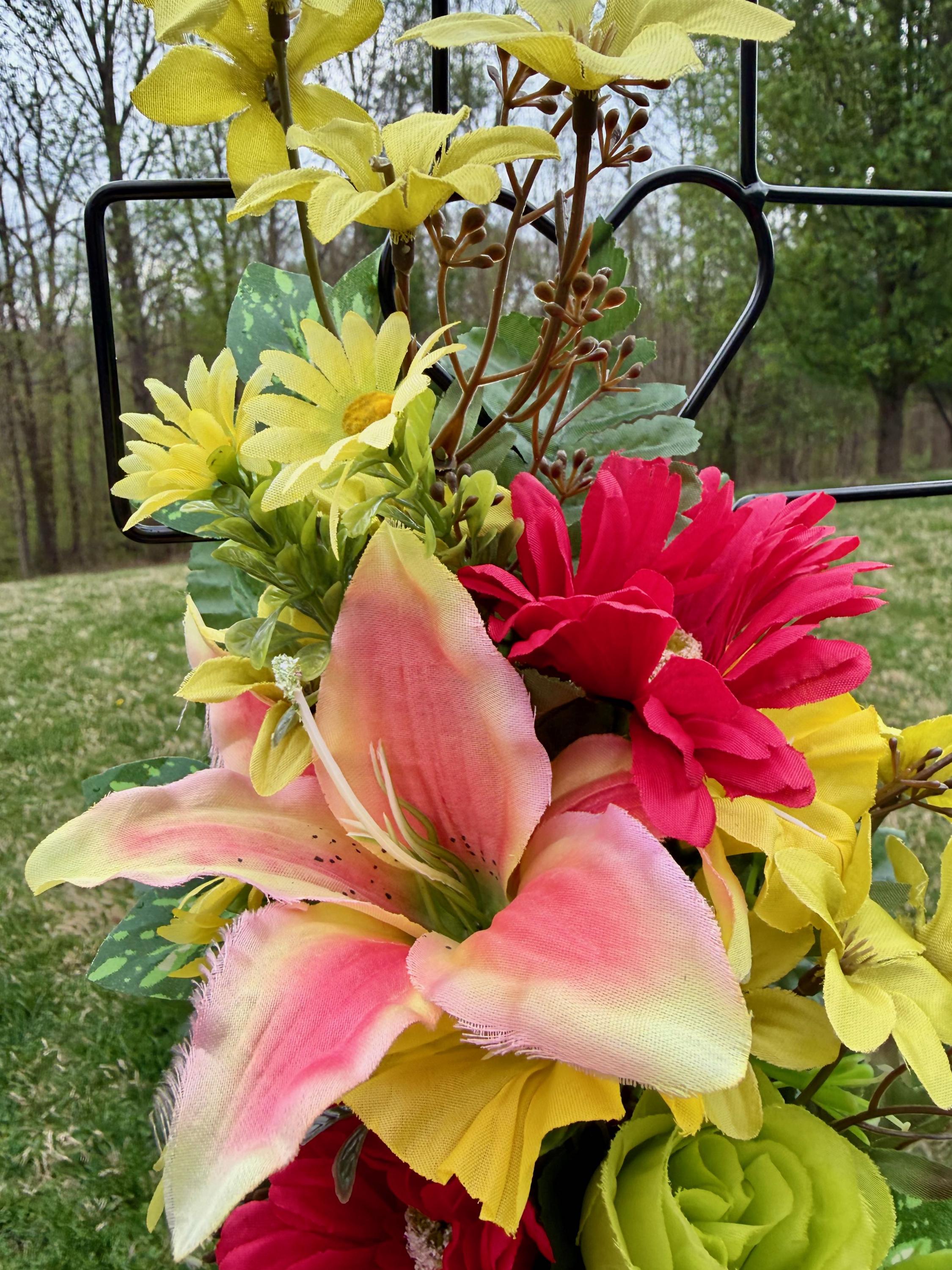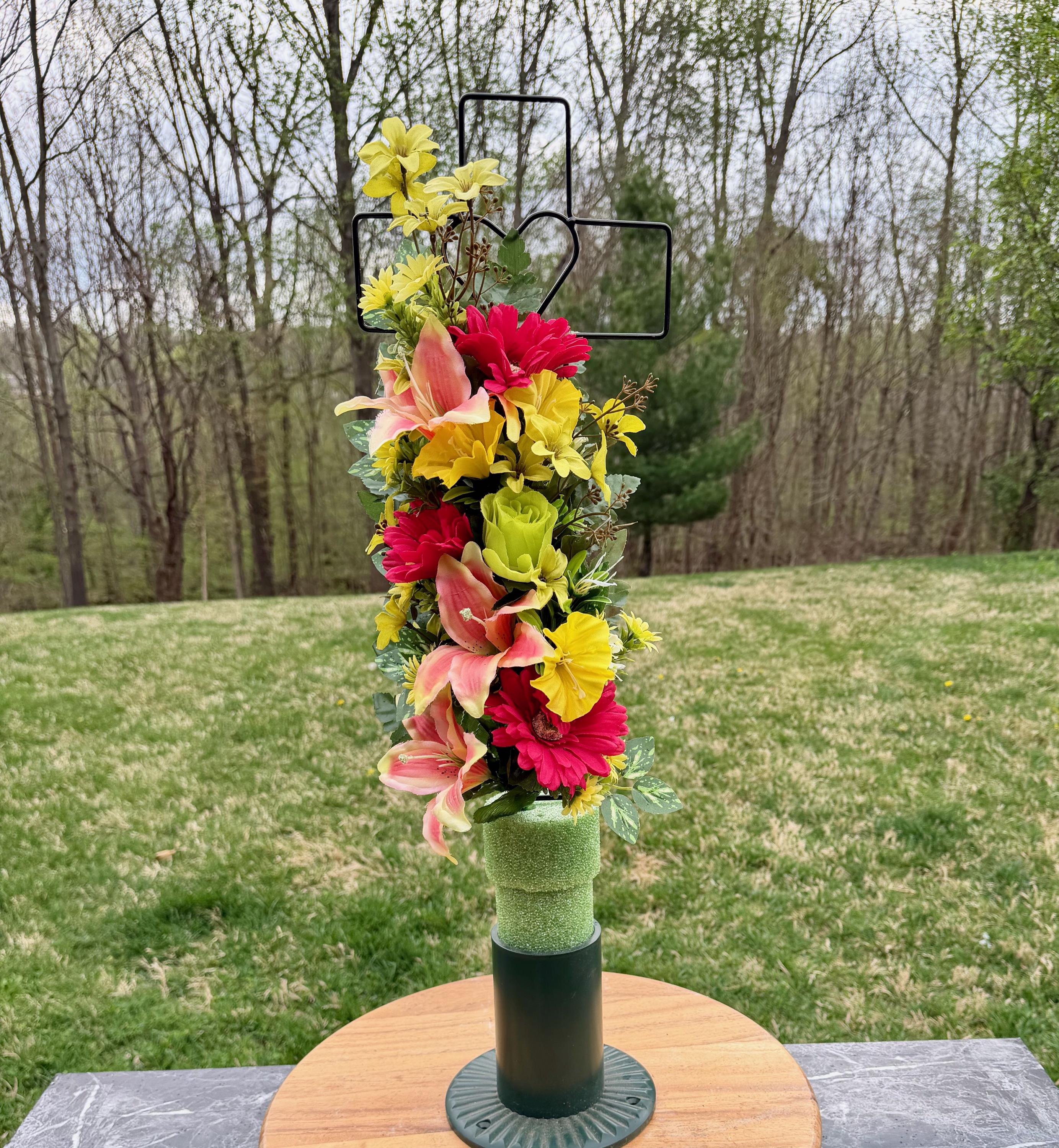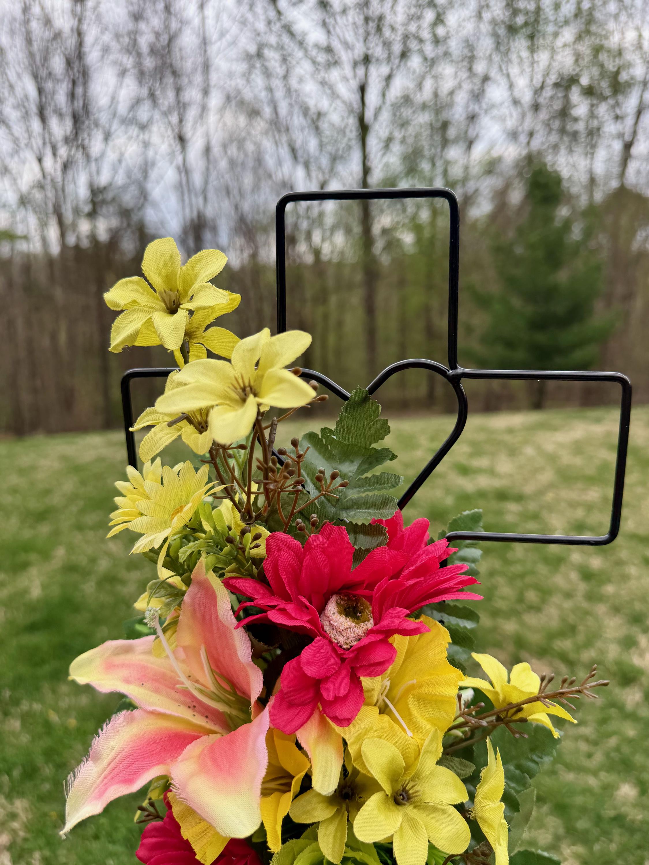 We’re a small, family-operated business consisting of myself, my husband, and my daughter. We personally manage every order and strive for excellent customer service. All our arrangements use high-quality silk flowers, though all silk blooms may fade over time. Each stem is glued into foam to withstand the elements. Designed by M&E uses only premium silks, and we put genuine care into every piece we create. Rest assured, the arrangement shown in our photos is exactly the one you’ll receive, as I design and assemble each one myself. If you’re searching for something unique or have a particular flower, color, or matching vases in mind, please contact me to discuss a custom order.