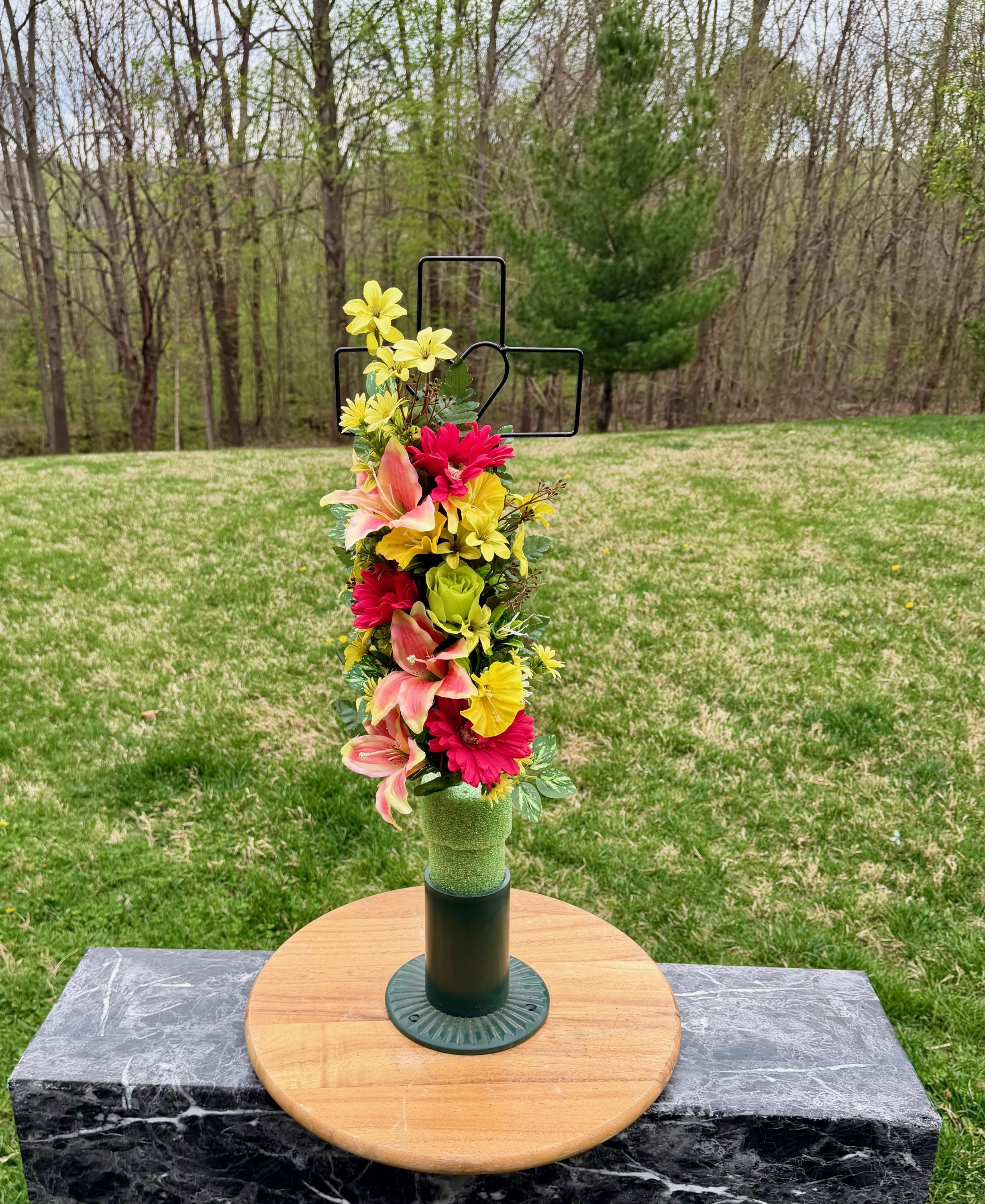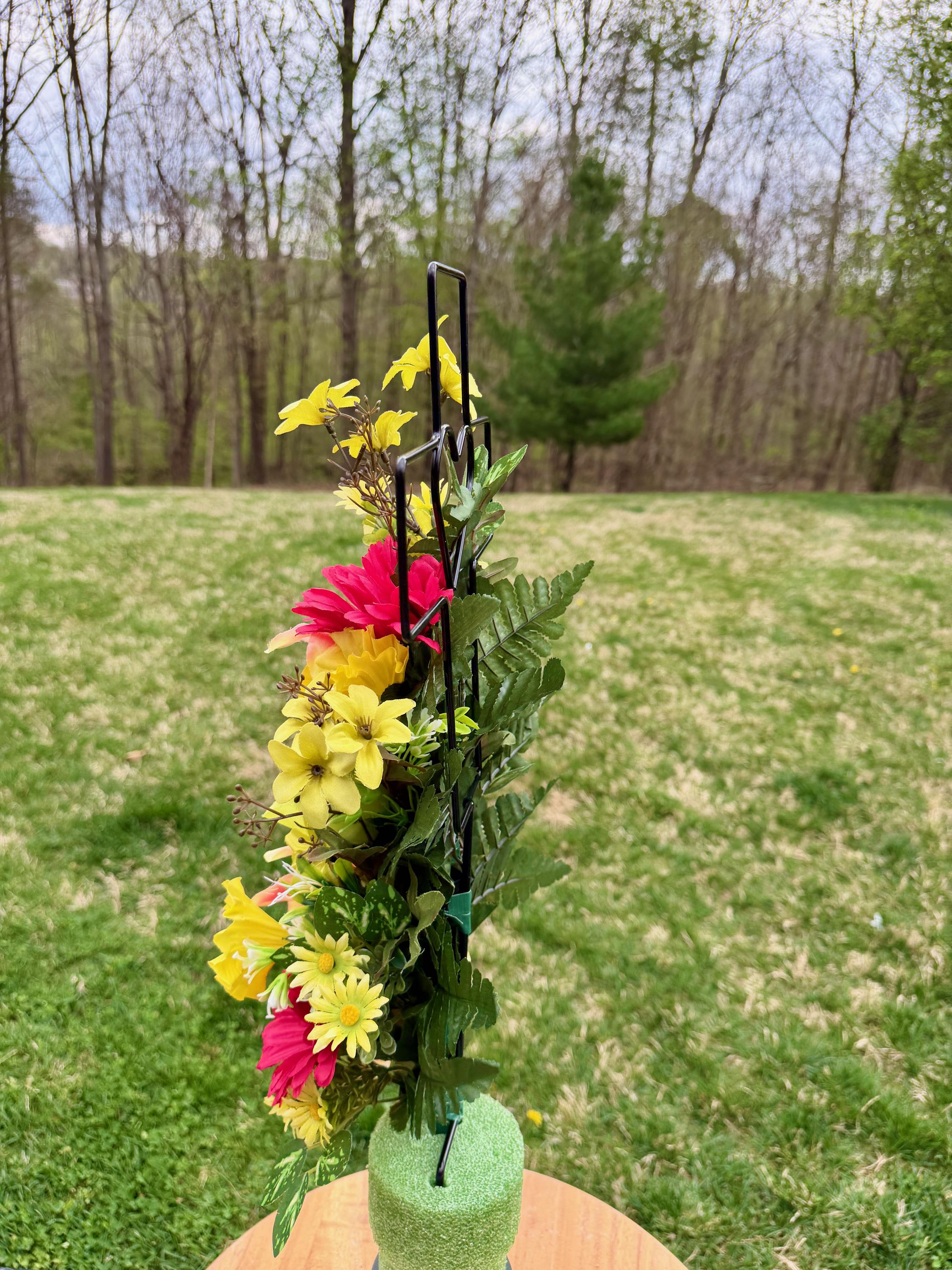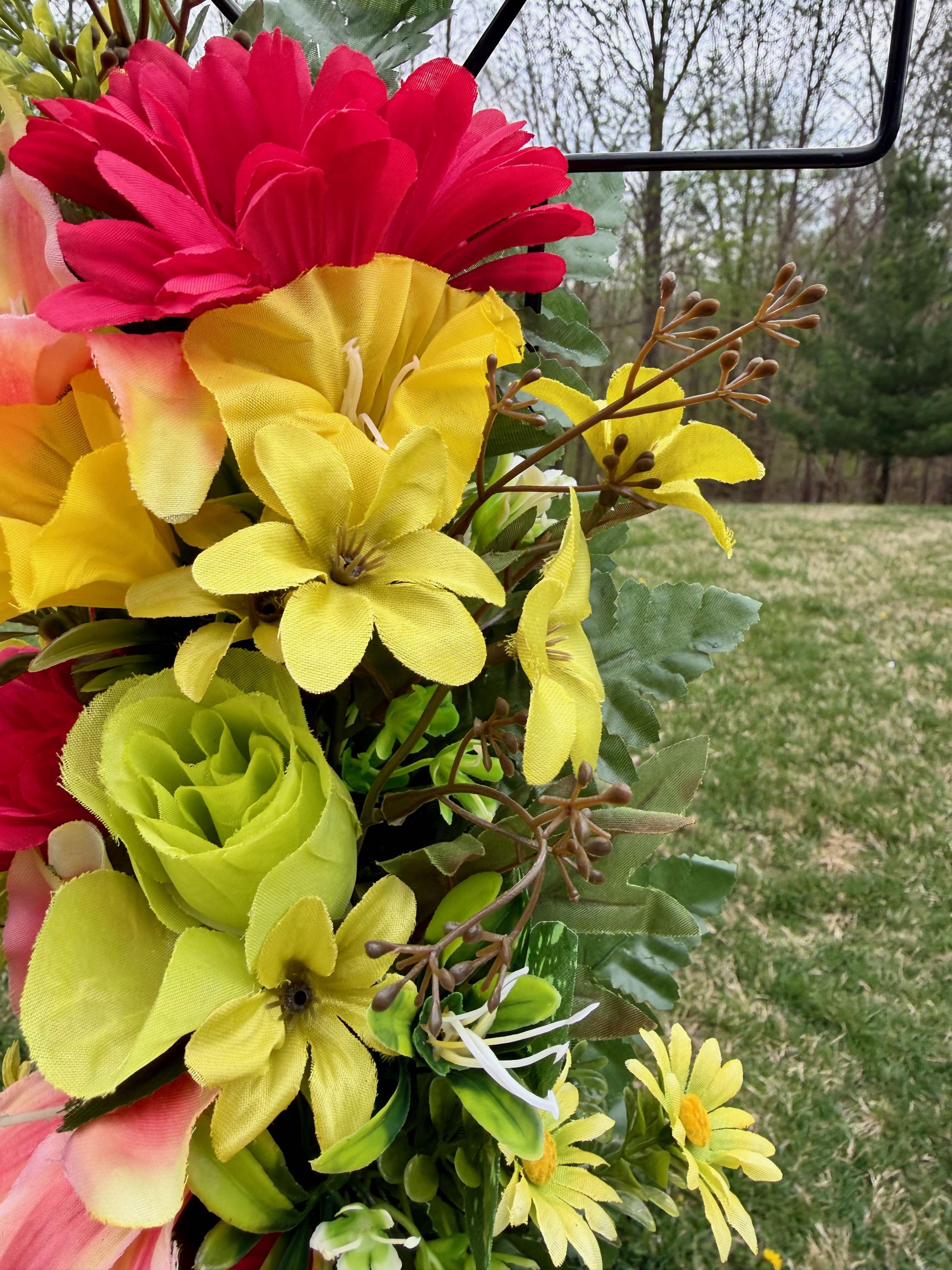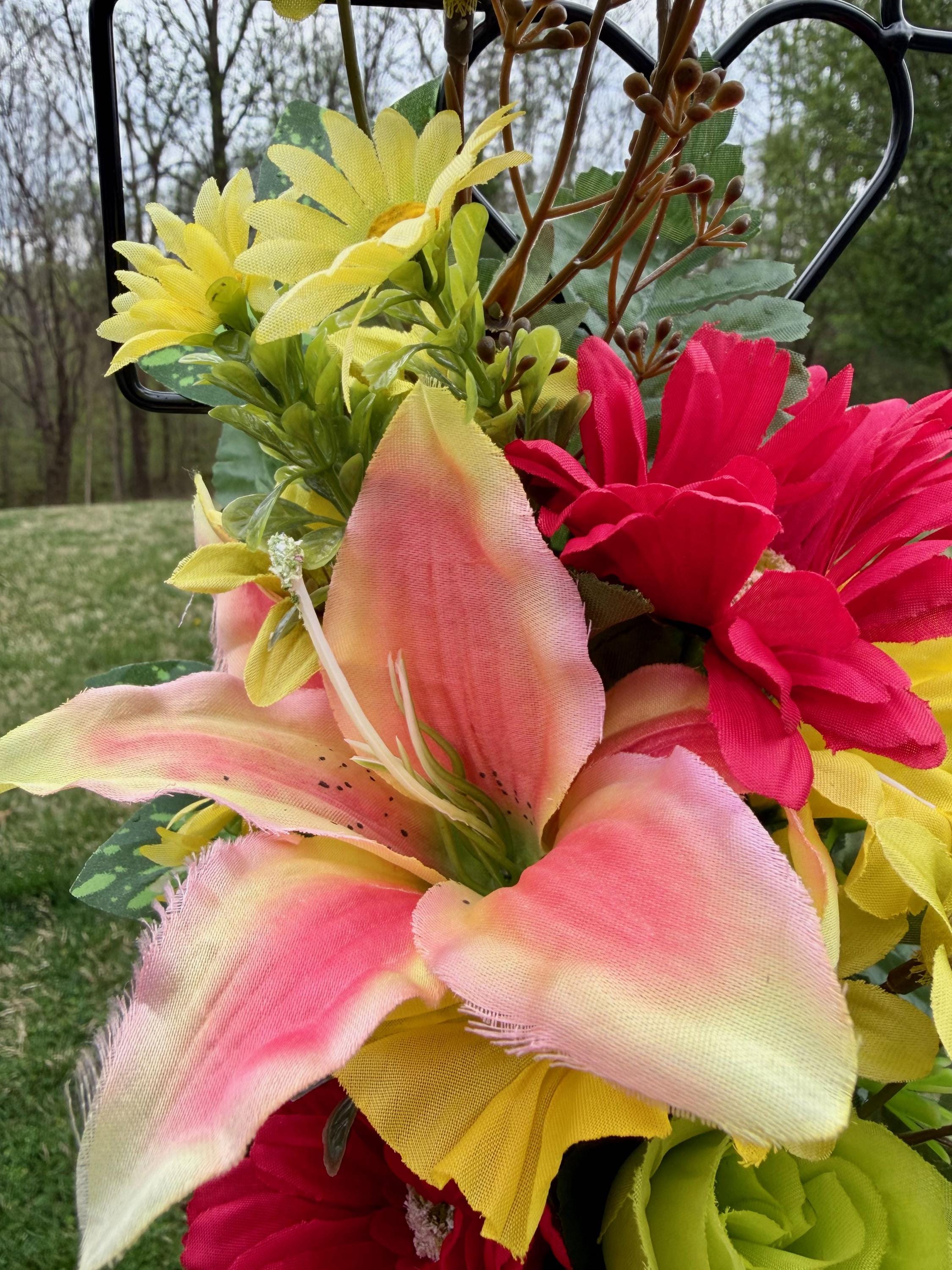 We’re a small, family-operated business consisting of myself, my husband, and my daughter. We personally manage every order and strive for excellent customer service. All our arrangements use high-quality silk flowers, though all silk blooms may fade over time. Each stem is glued into foam to withstand the elements. Designed by M&E uses only premium silks, and we put genuine care into every piece we create. Rest assured, the arrangement shown in our photos is exactly the one you’ll receive, as I design and assemble each one myself. If you’re searching for something unique or have a particular flower, color, or matching vases in mind, please contact me to discuss a custom order.
