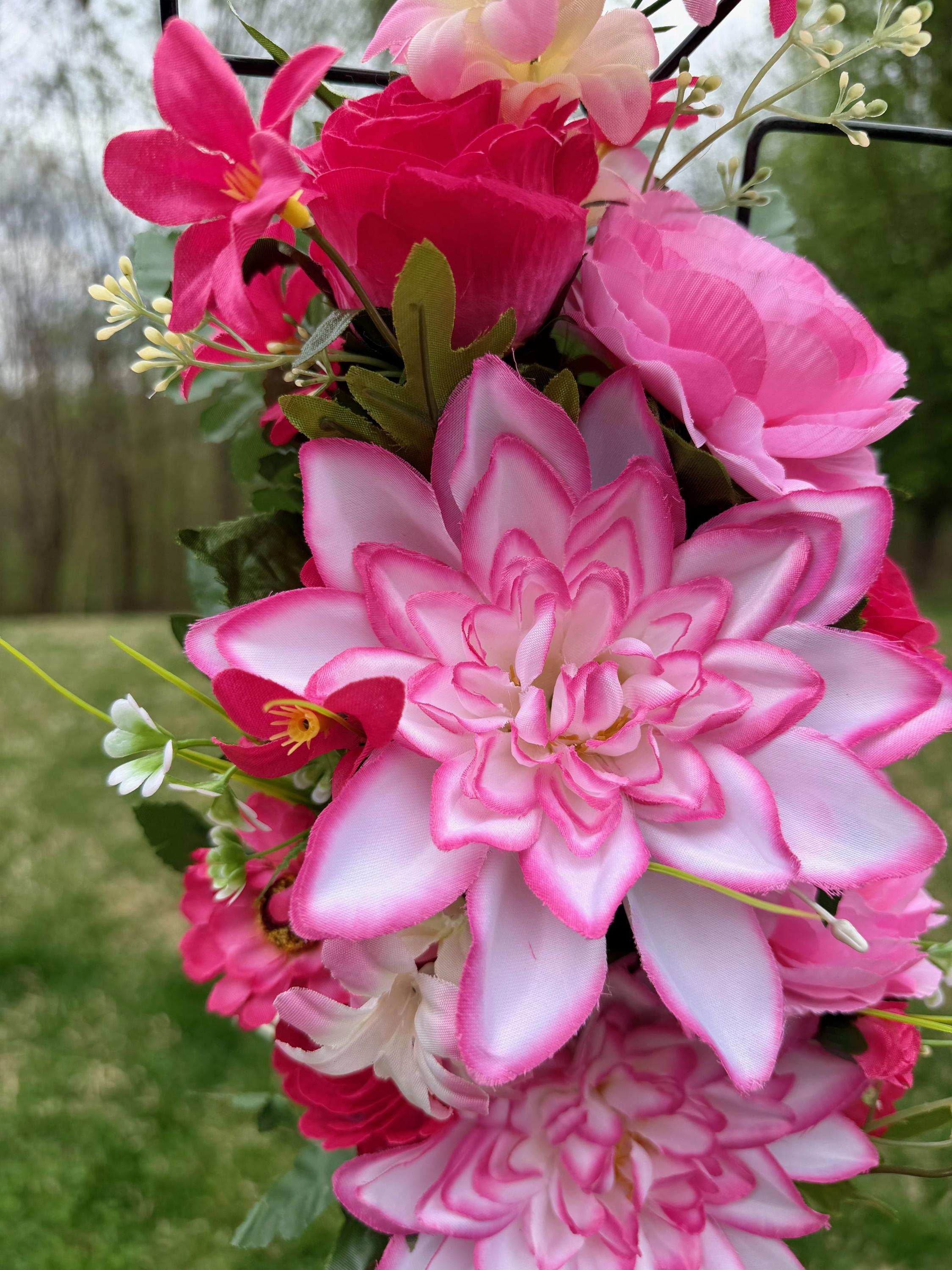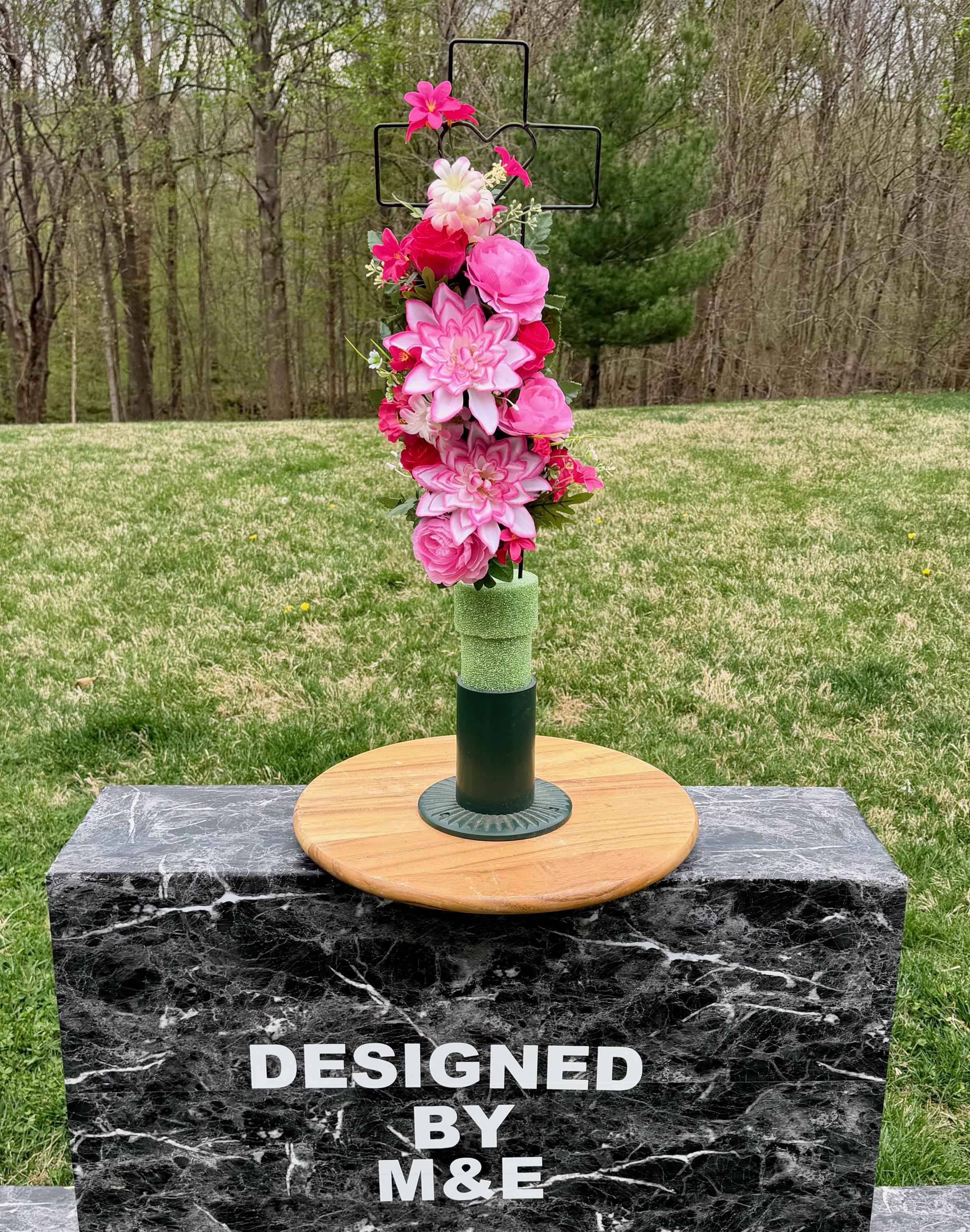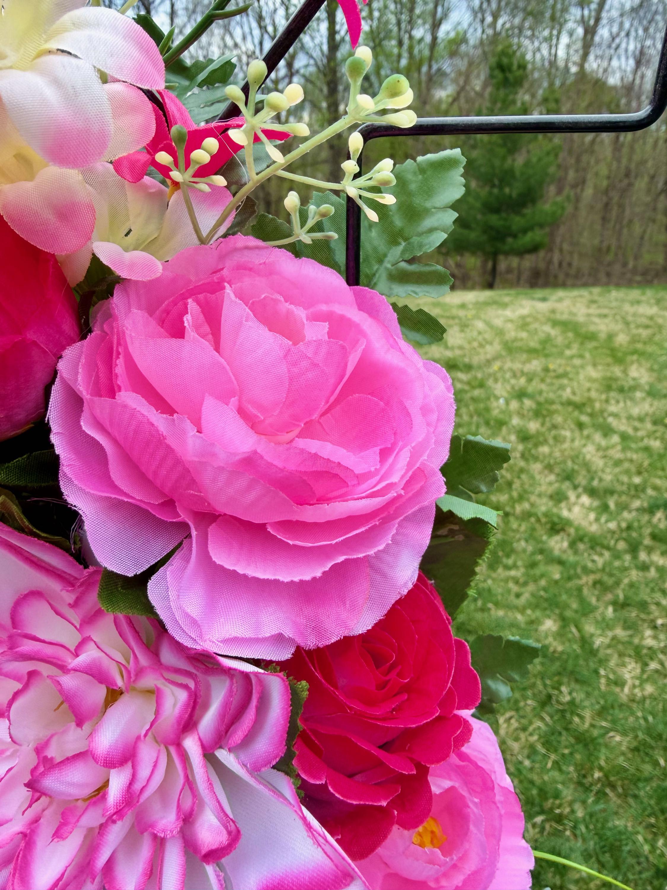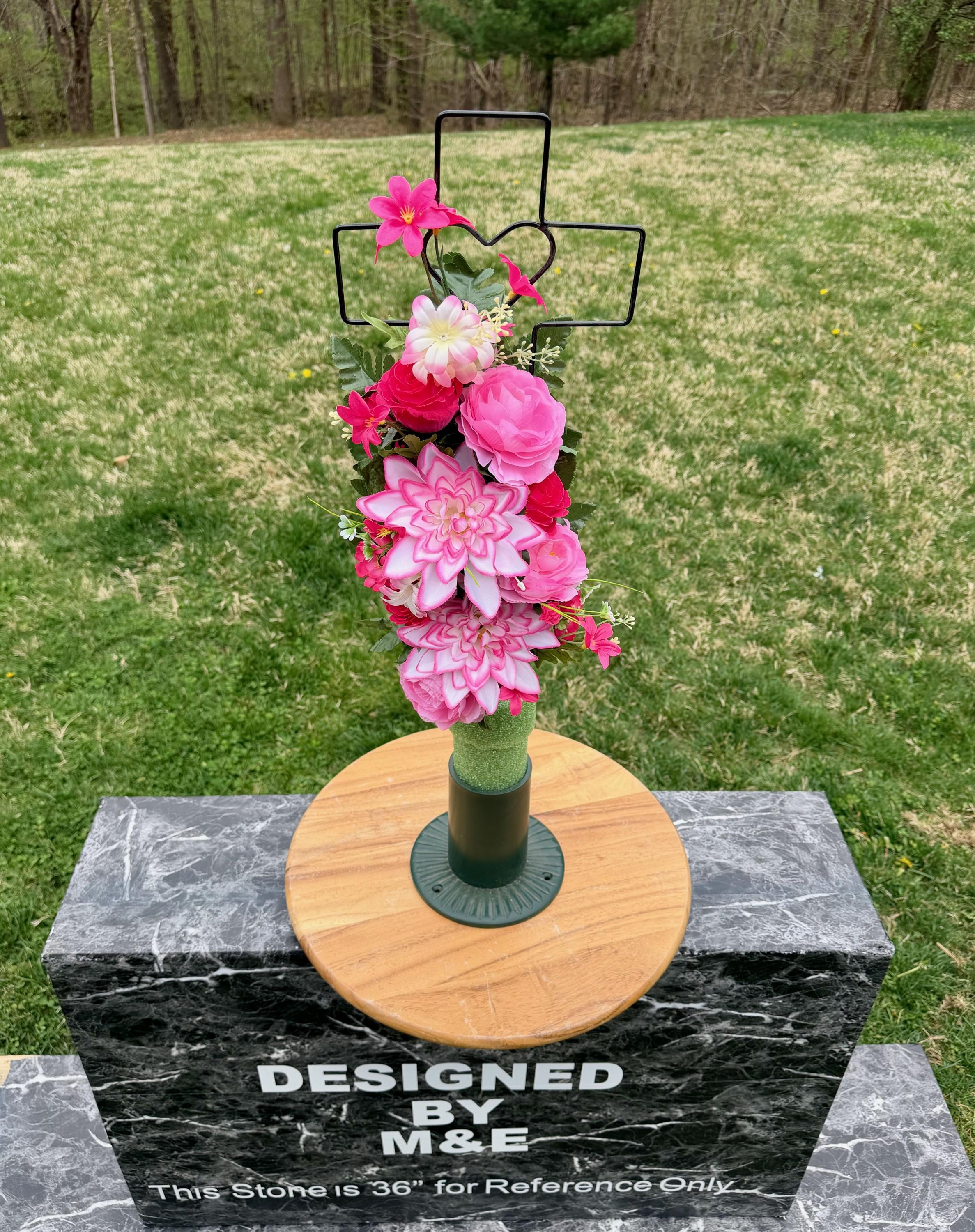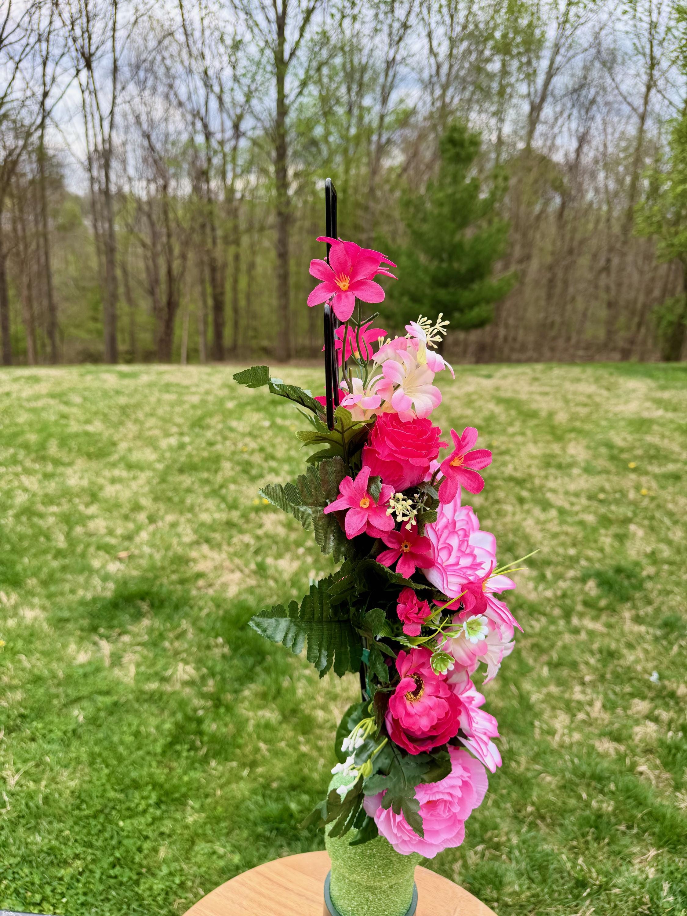We’re a small, family-operated business consisting of myself, my husband, and my daughter. We personally manage every order and strive for excellent customer service. All our arrangements use high-quality silk flowers, though all silk blooms may fade over time. Each stem is glued into foam to withstand the elements. Designed by M&E uses only premium silks, and we put genuine care into every piece we create. Rest assured, the arrangement shown in our photos is exactly the one you’ll receive, as I design and assemble each one myself. If you’re searching for something unique or have a particular flower, color, or matching vases in mind, please contact me to discuss a custom order.