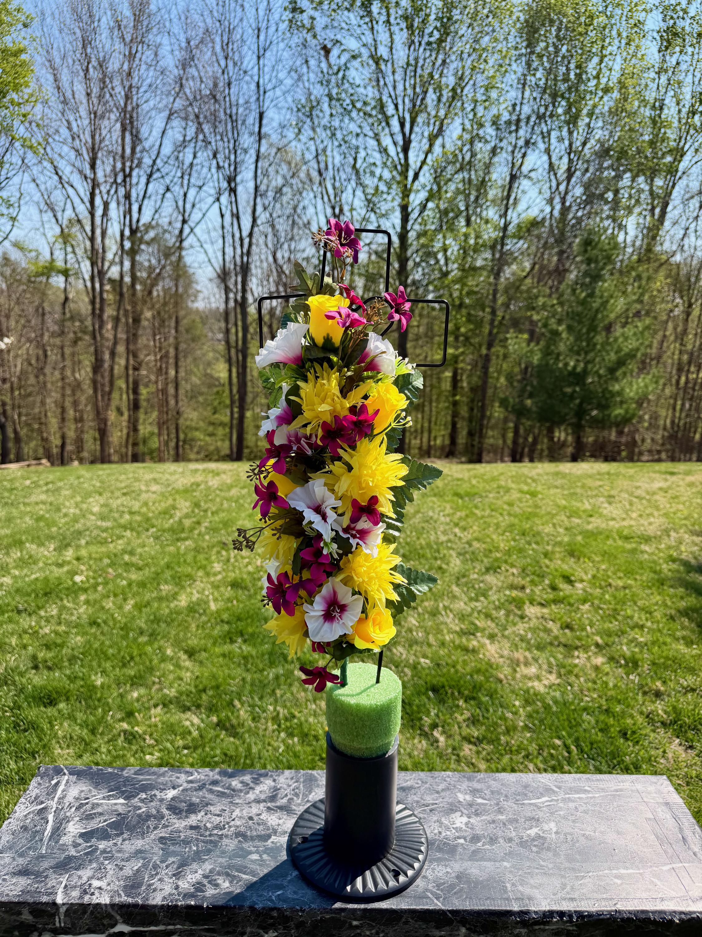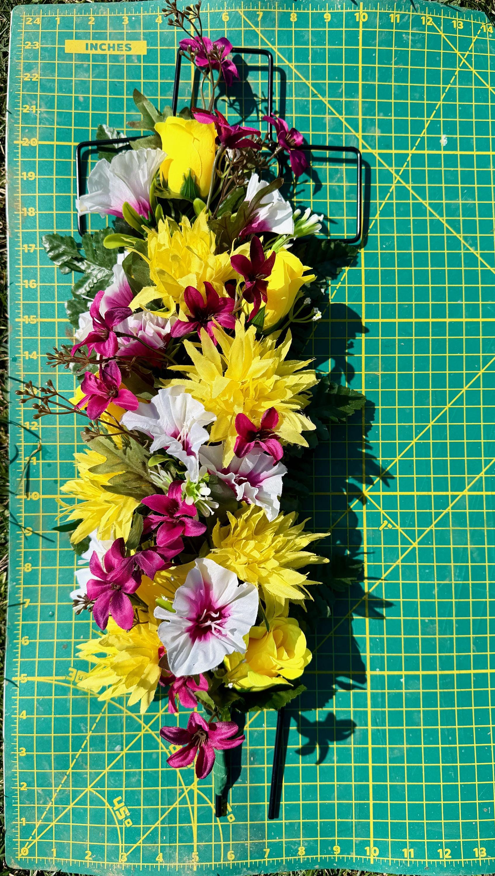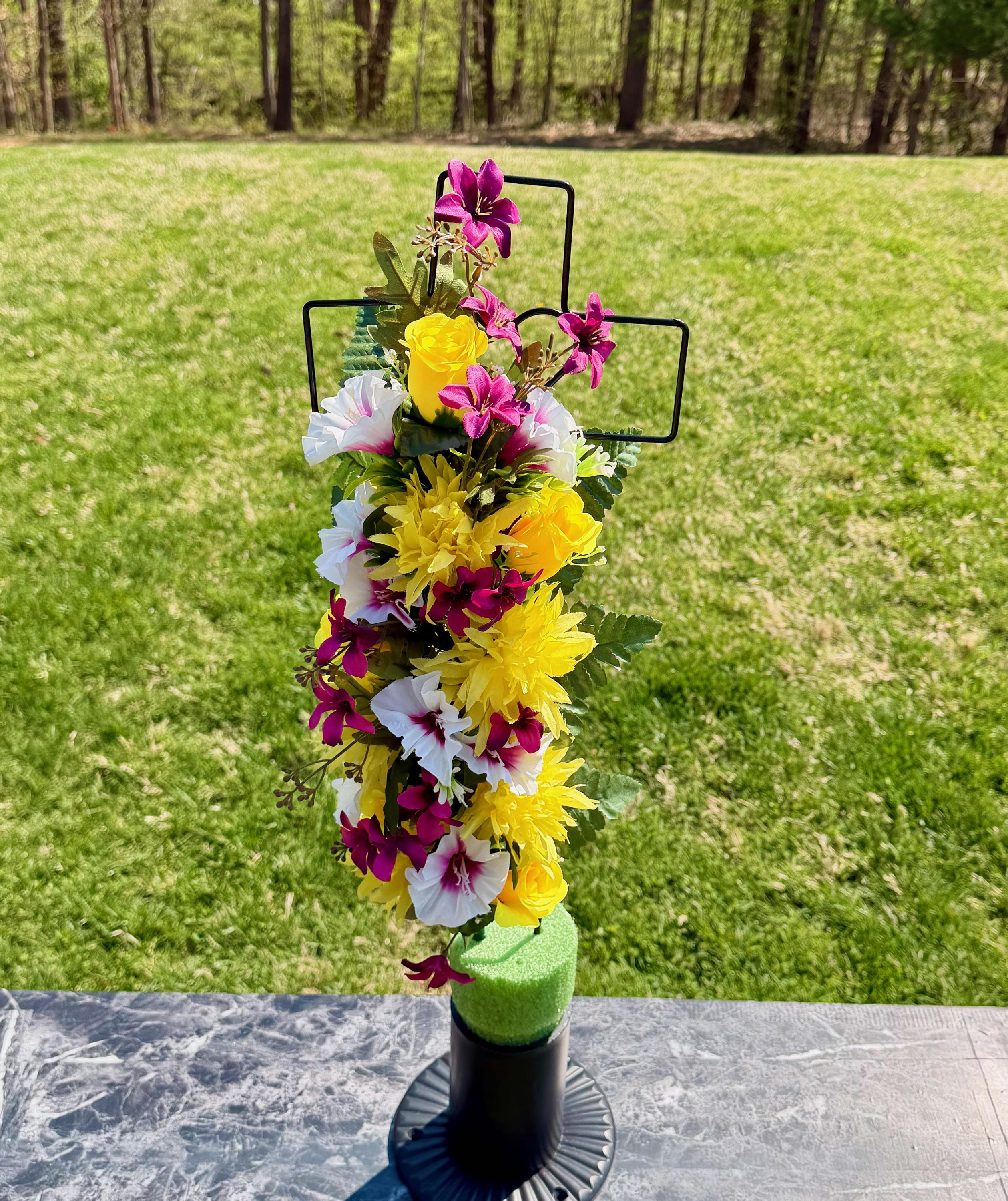 Pink, White and Yellow Silk Flower Cemetery Reusable Cross - Grave Decoration - Memorial Arrangement