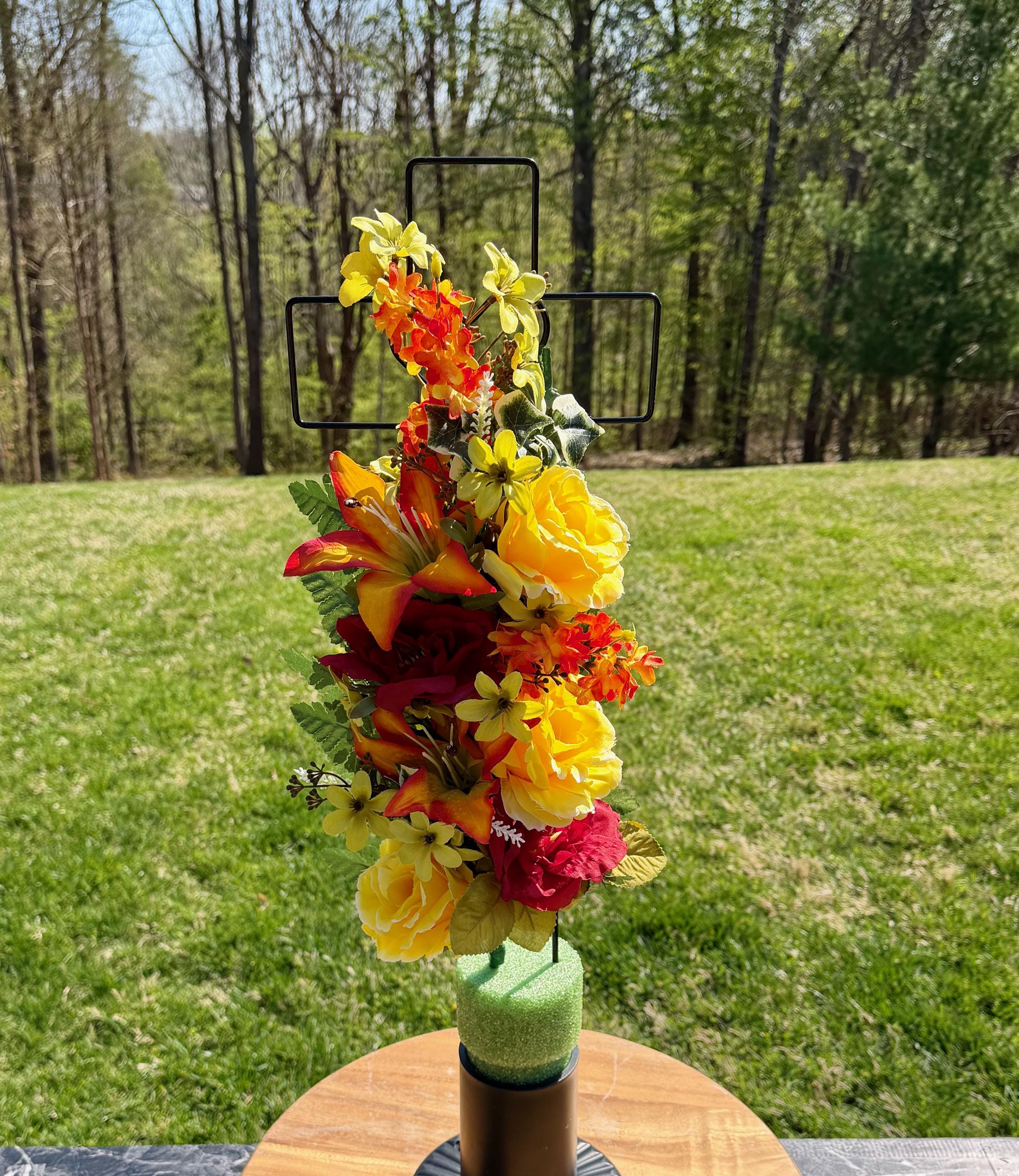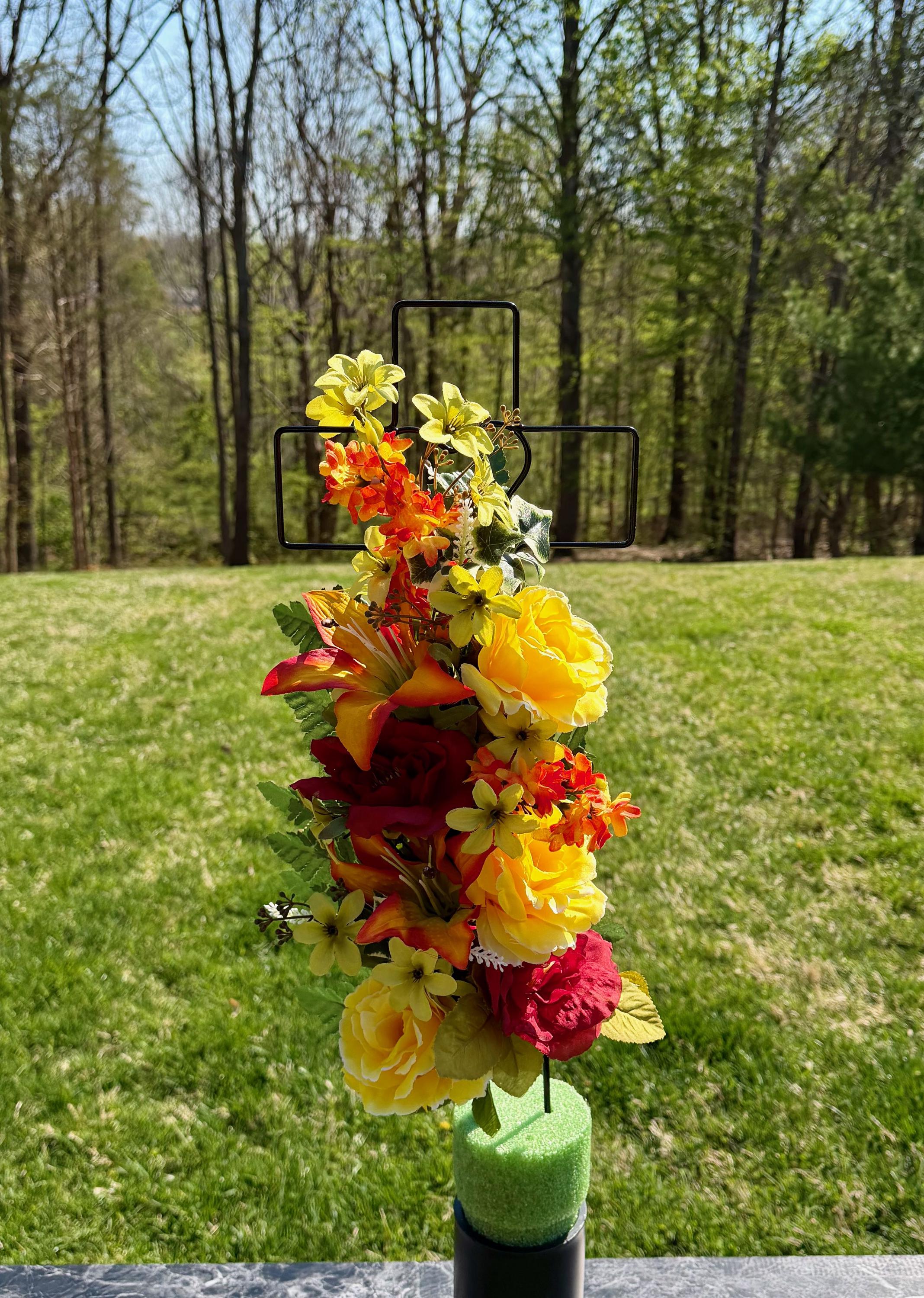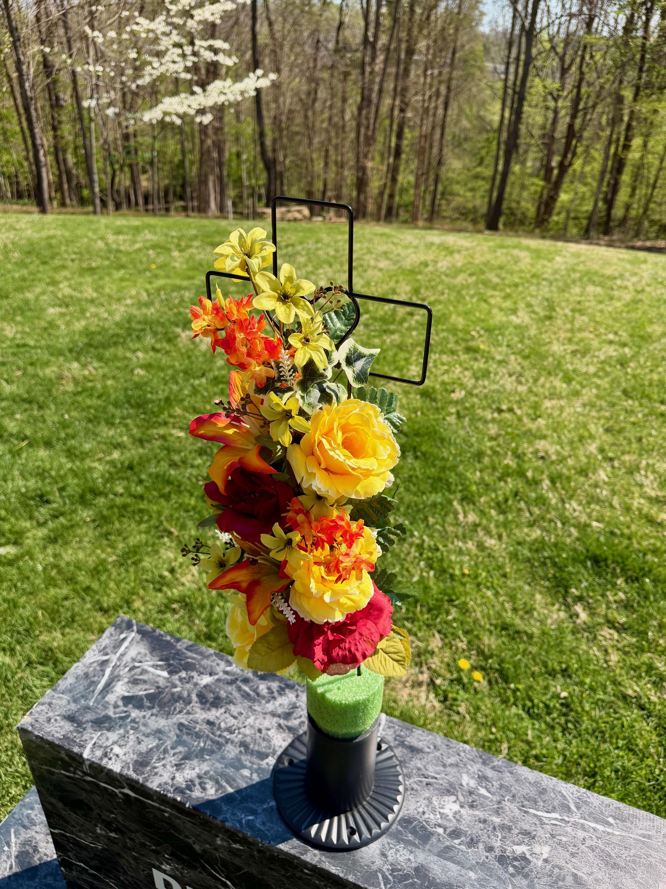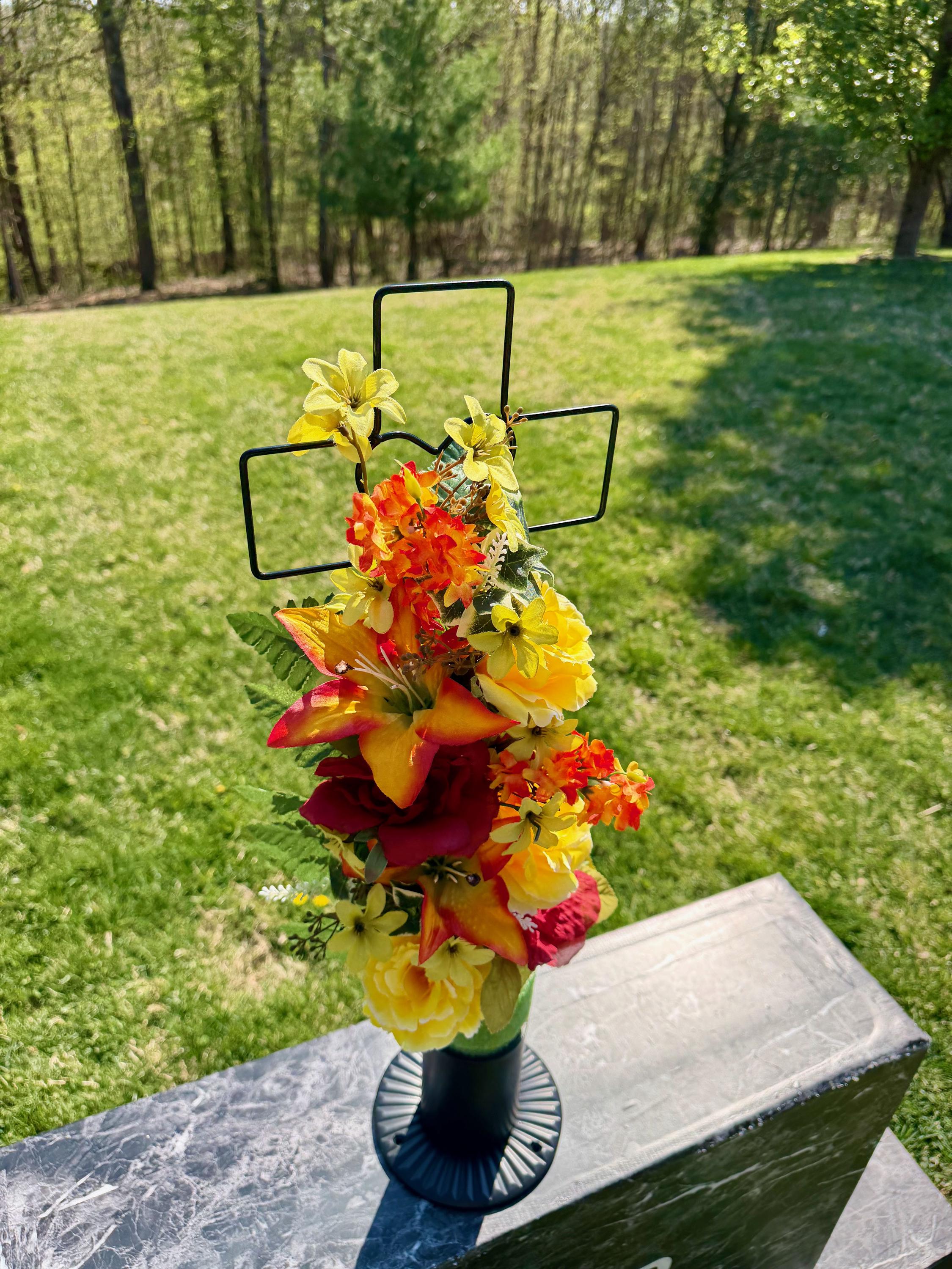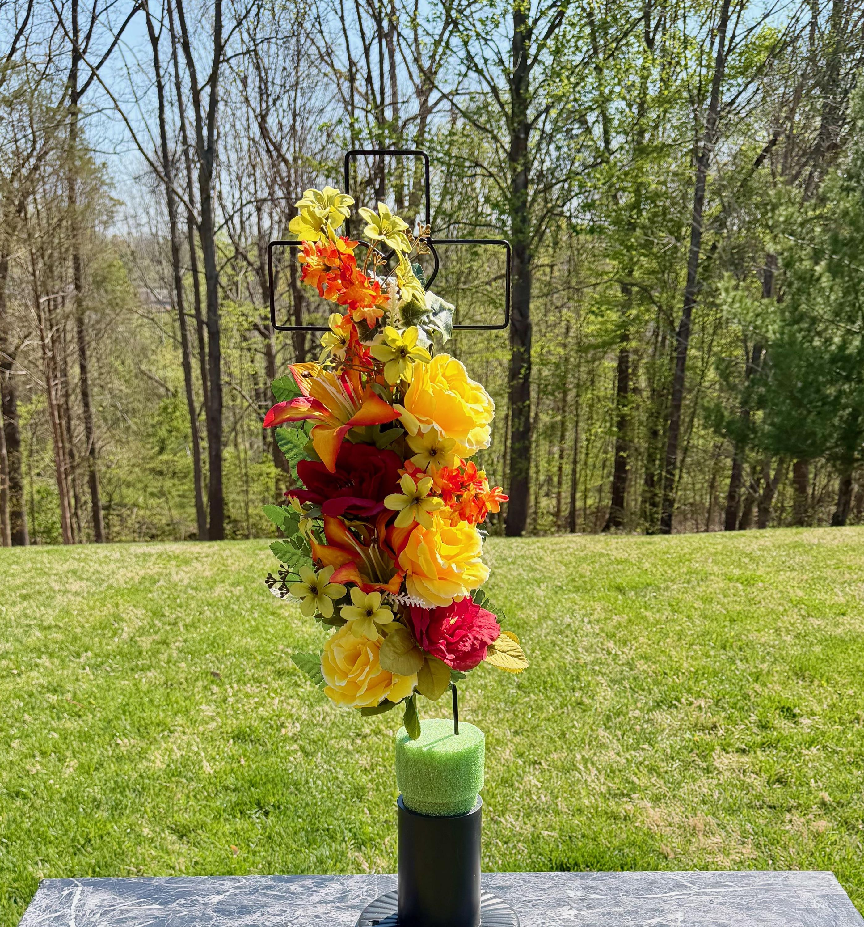 Orange and Yellow Silk Flower Cemetery Reusable Cross - Grave Decoration - Memorial Arrangement