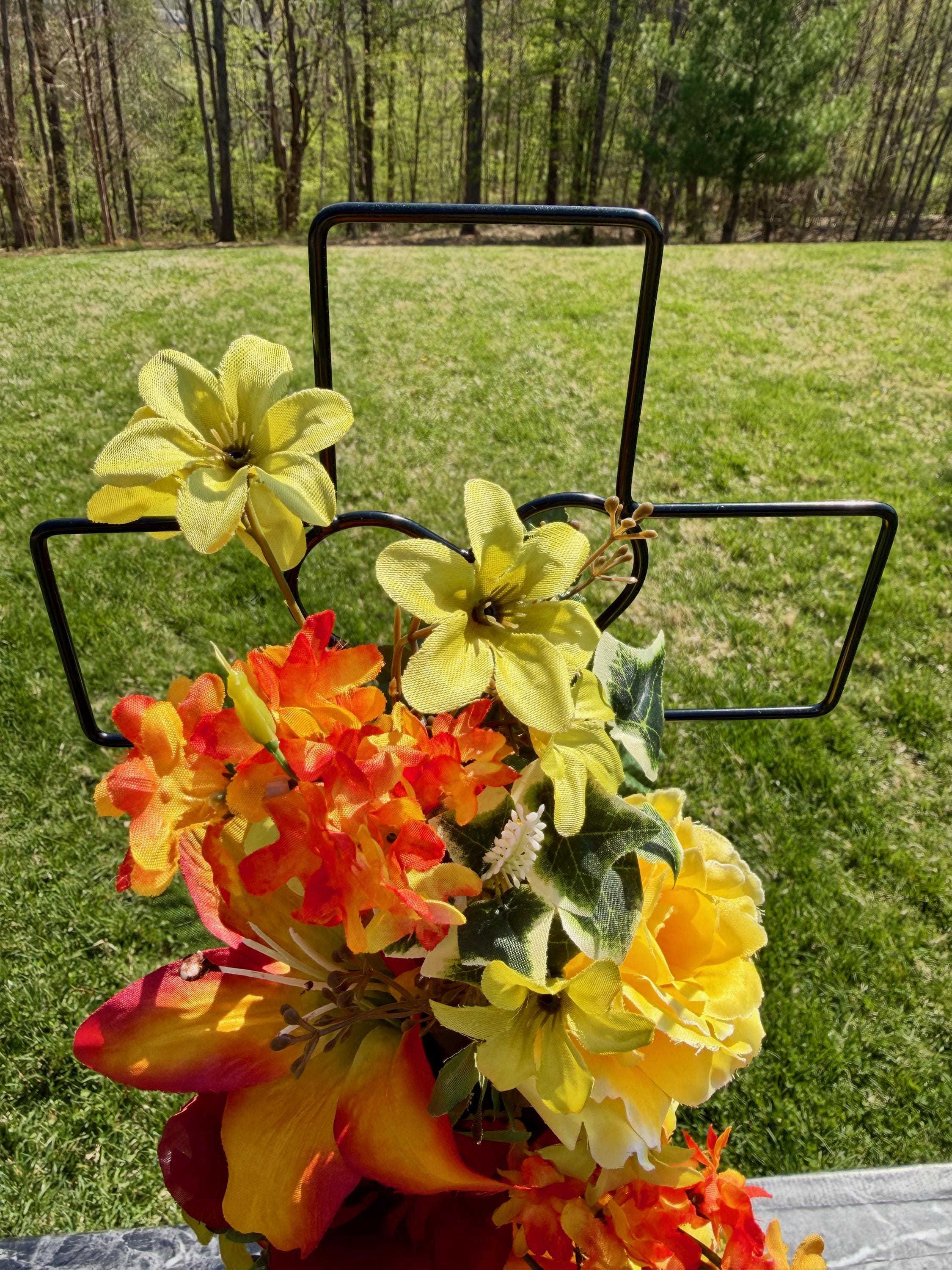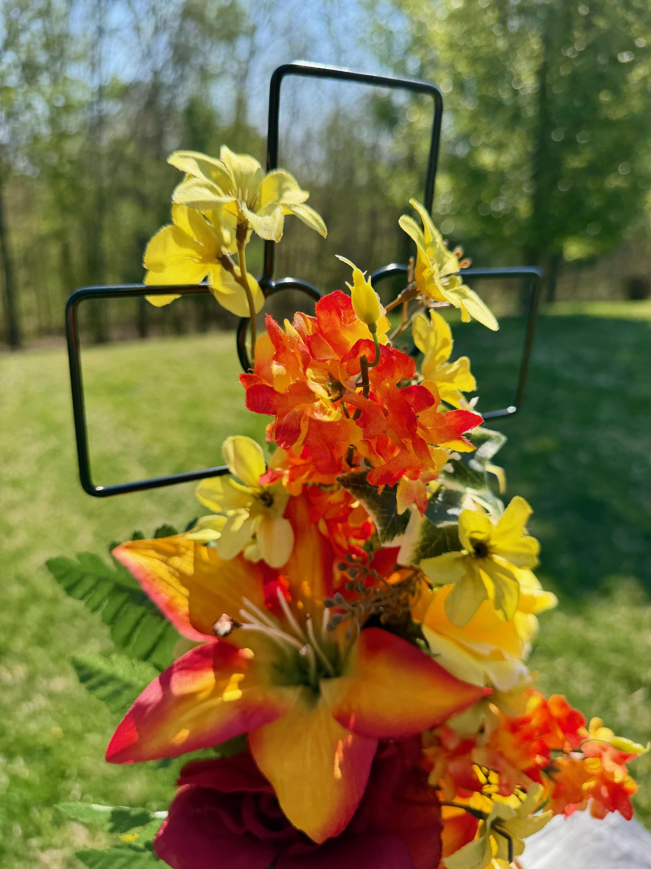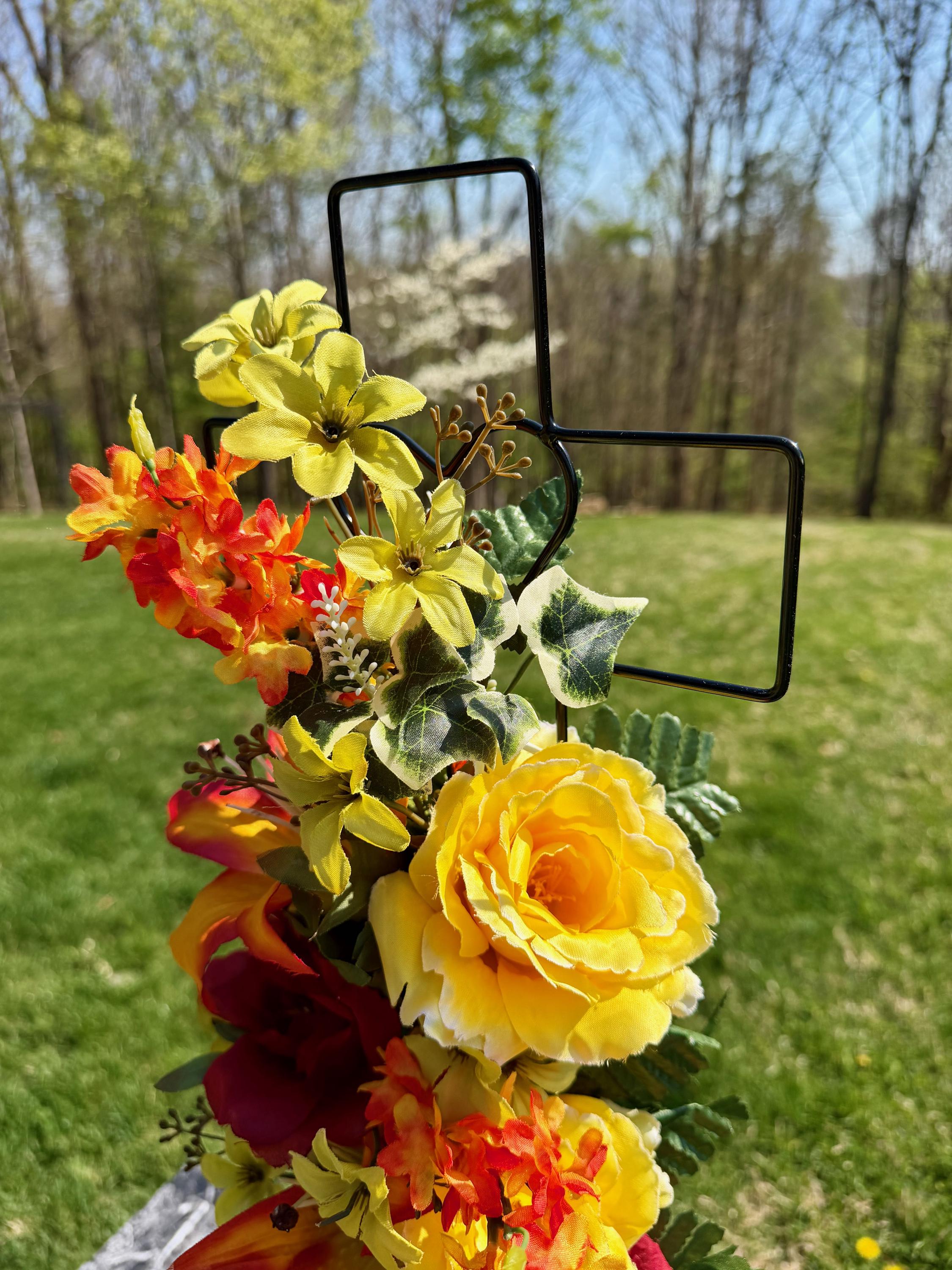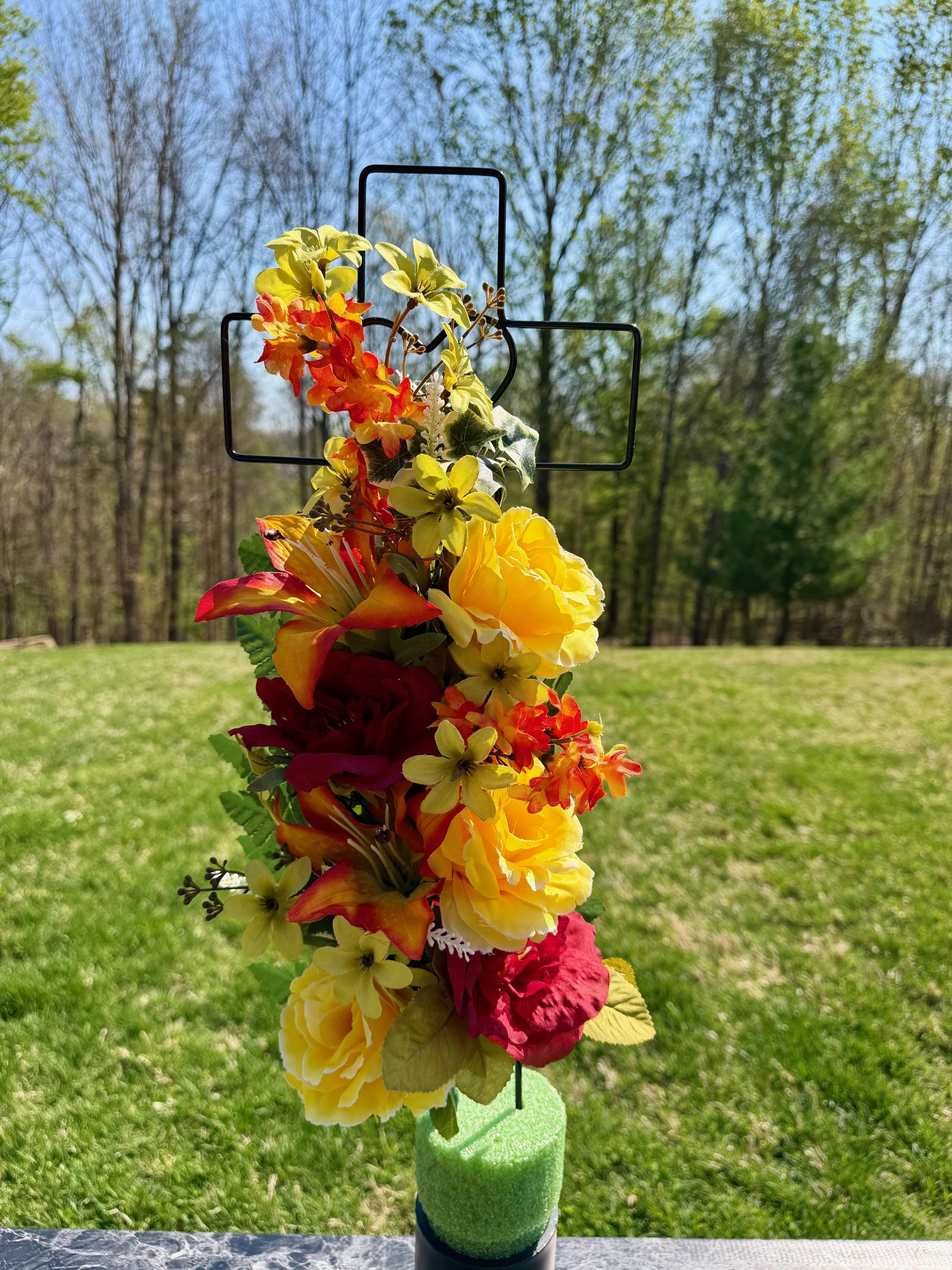 Orange and Yellow Silk Flower Cemetery Reusable Cross - Grave Decoration - Memorial Arrangement