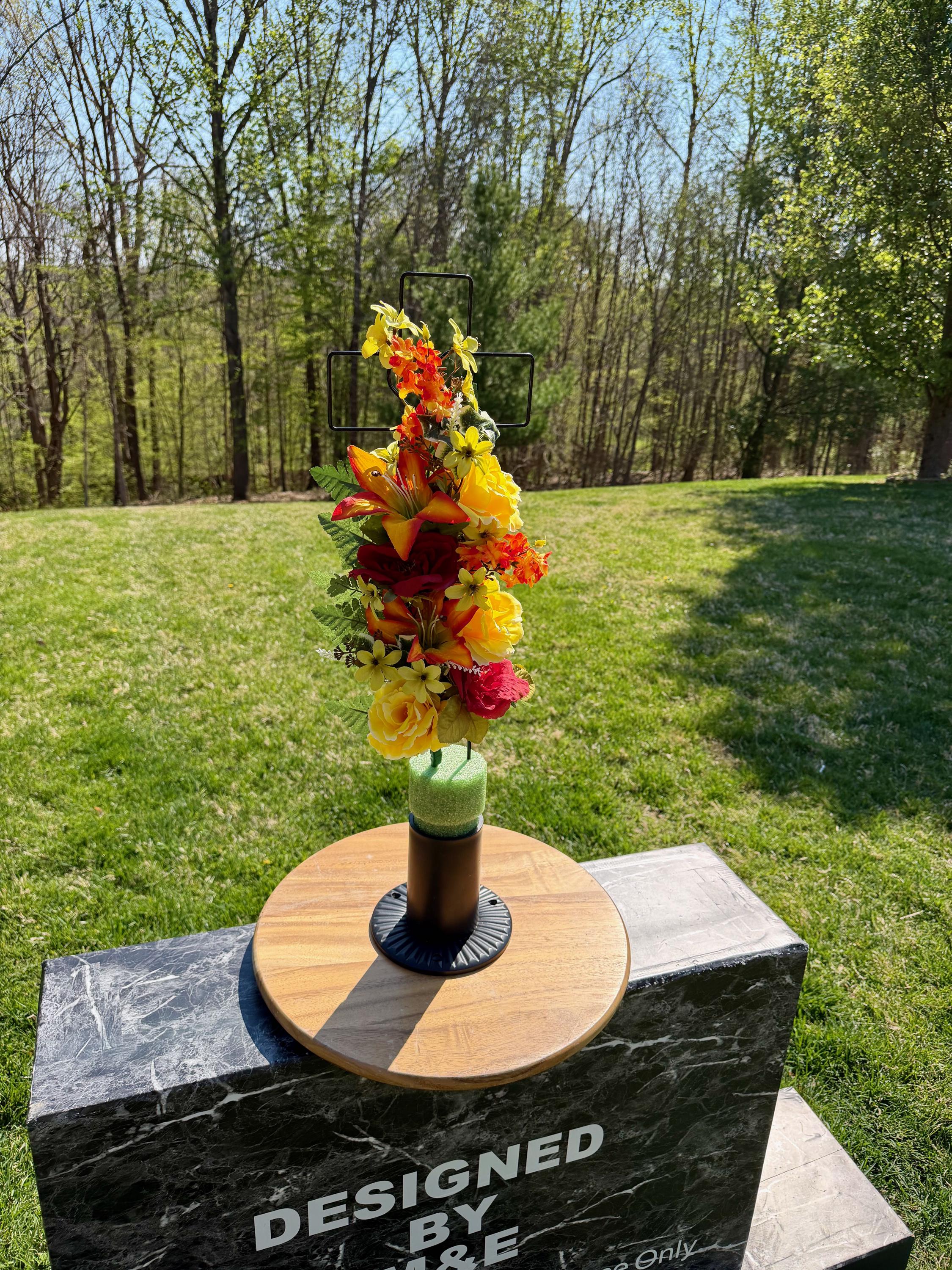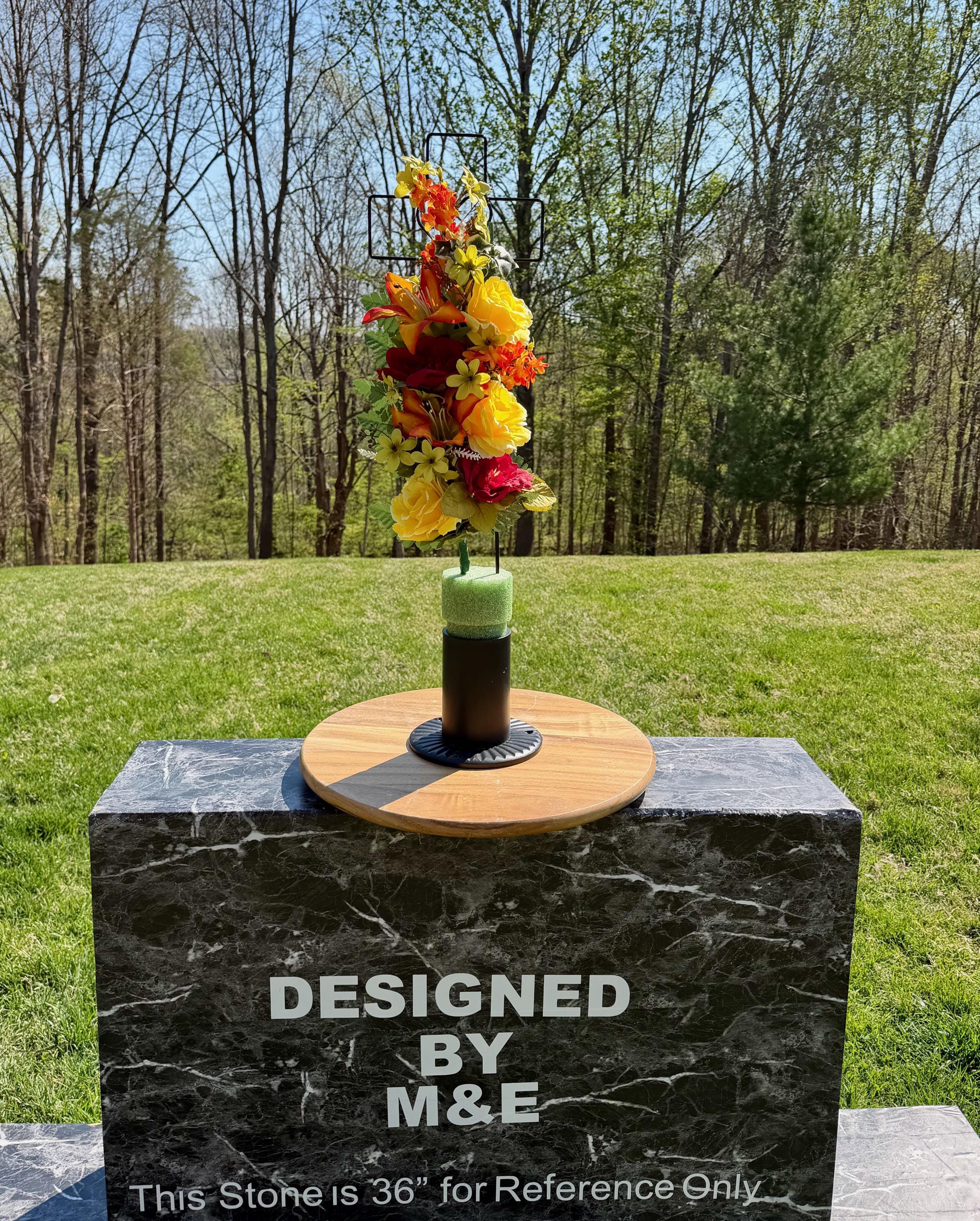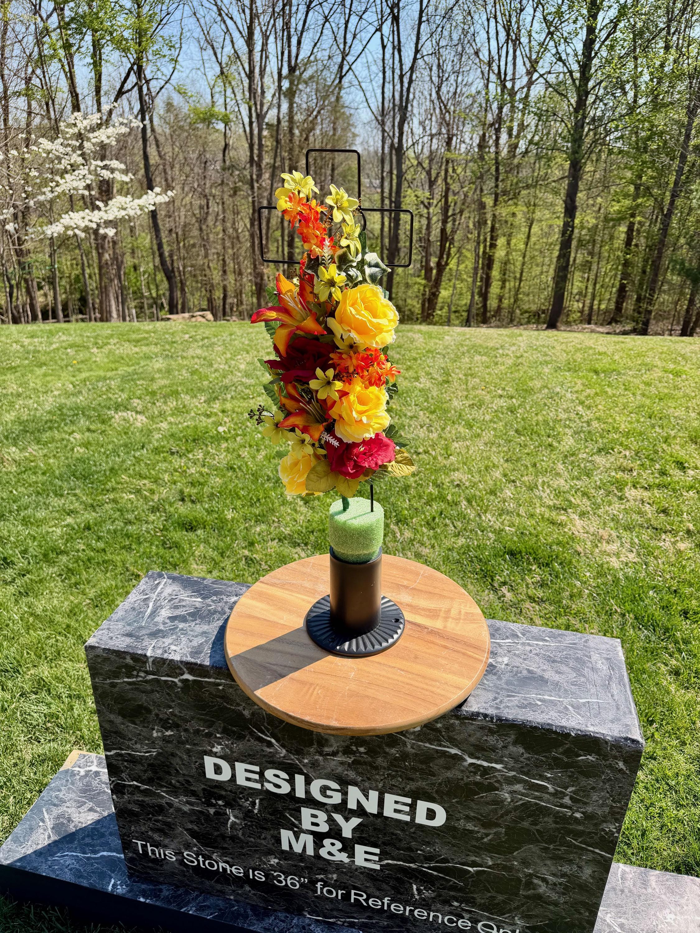We’re a small, family-operated business consisting of myself, my husband, and my daughter. We personally manage every order and strive for excellent customer service. All our arrangements use high-quality silk flowers, though all silk blooms may fade over time. Each stem is glued into foam to withstand the elements. Designed by M&E uses only premium silks, and we put genuine care into every piece we create. Rest assured, the arrangement shown in our photos is exactly the one you’ll receive, as I design and assemble each one myself. If you’re searching for something unique or have a particular flower, color, or matching vases in mind, please contact me to discuss a custom order.