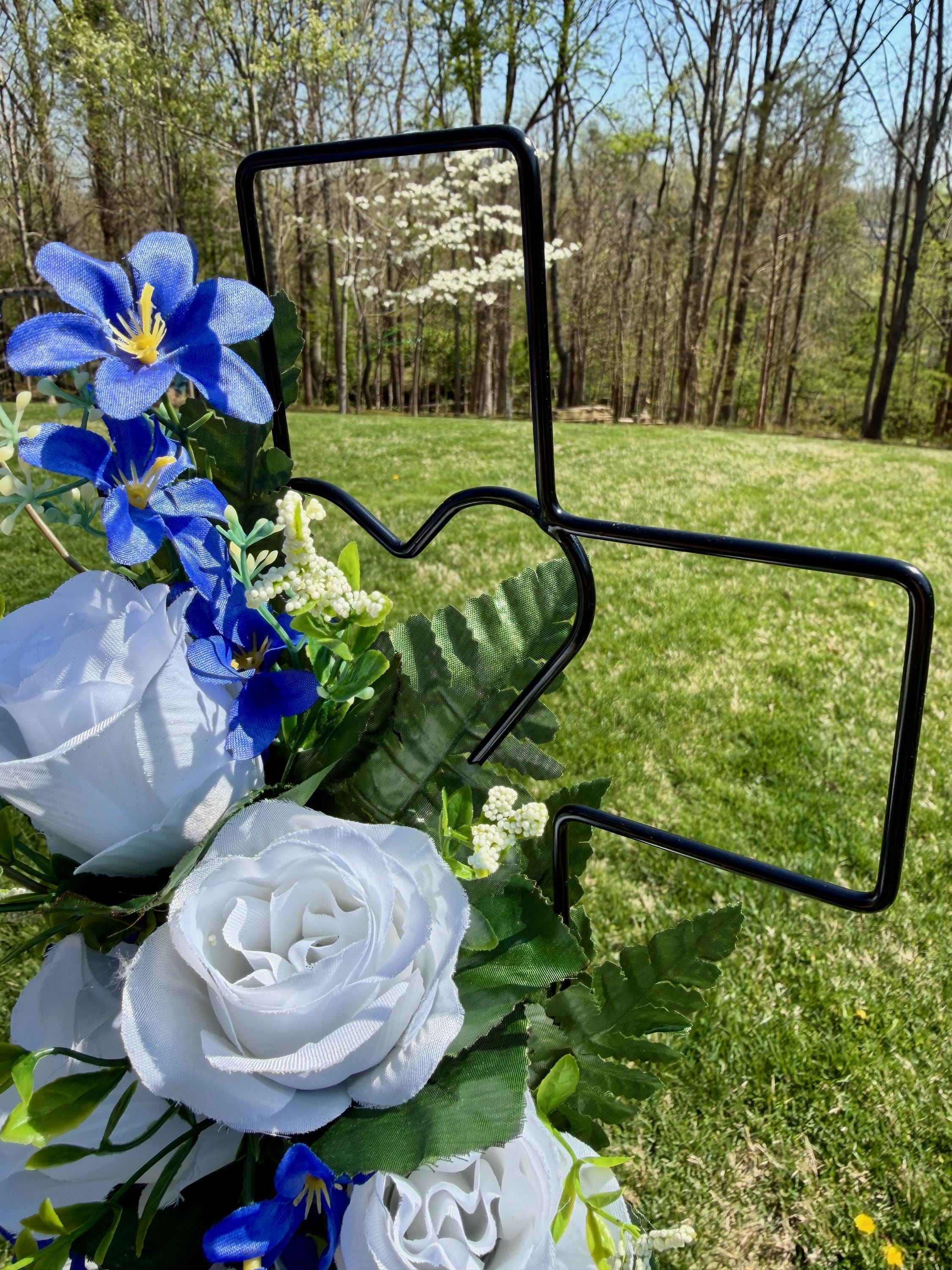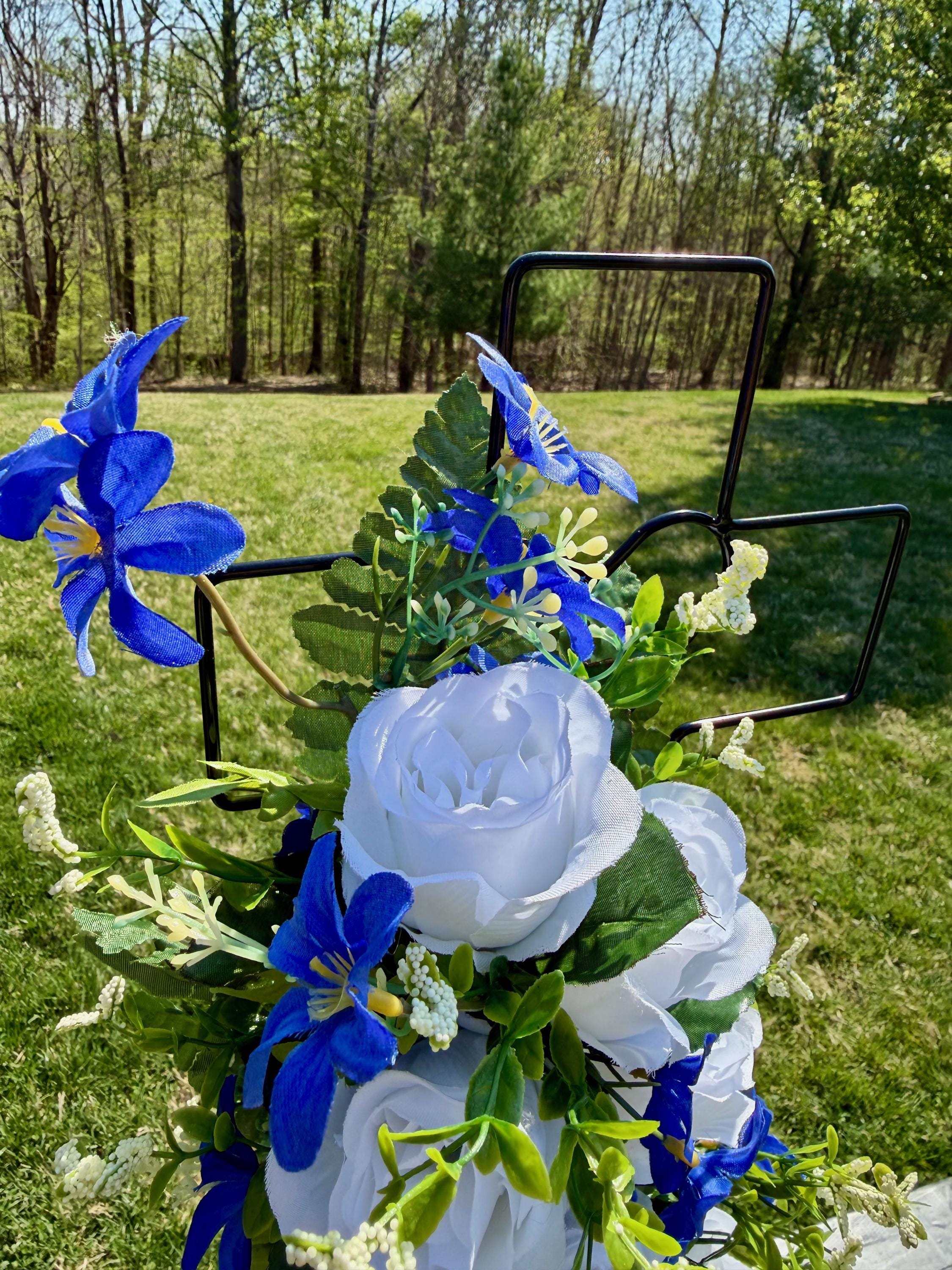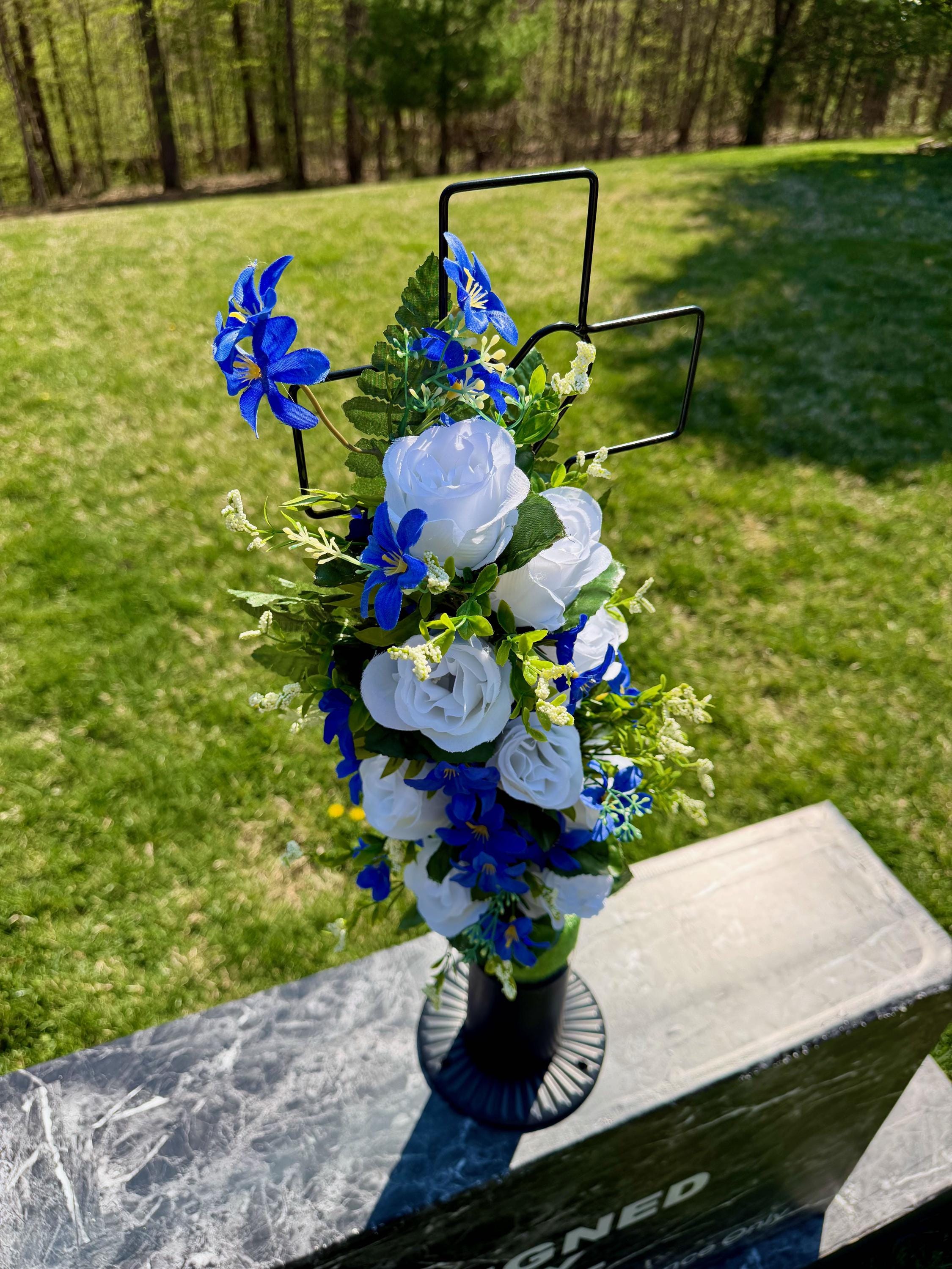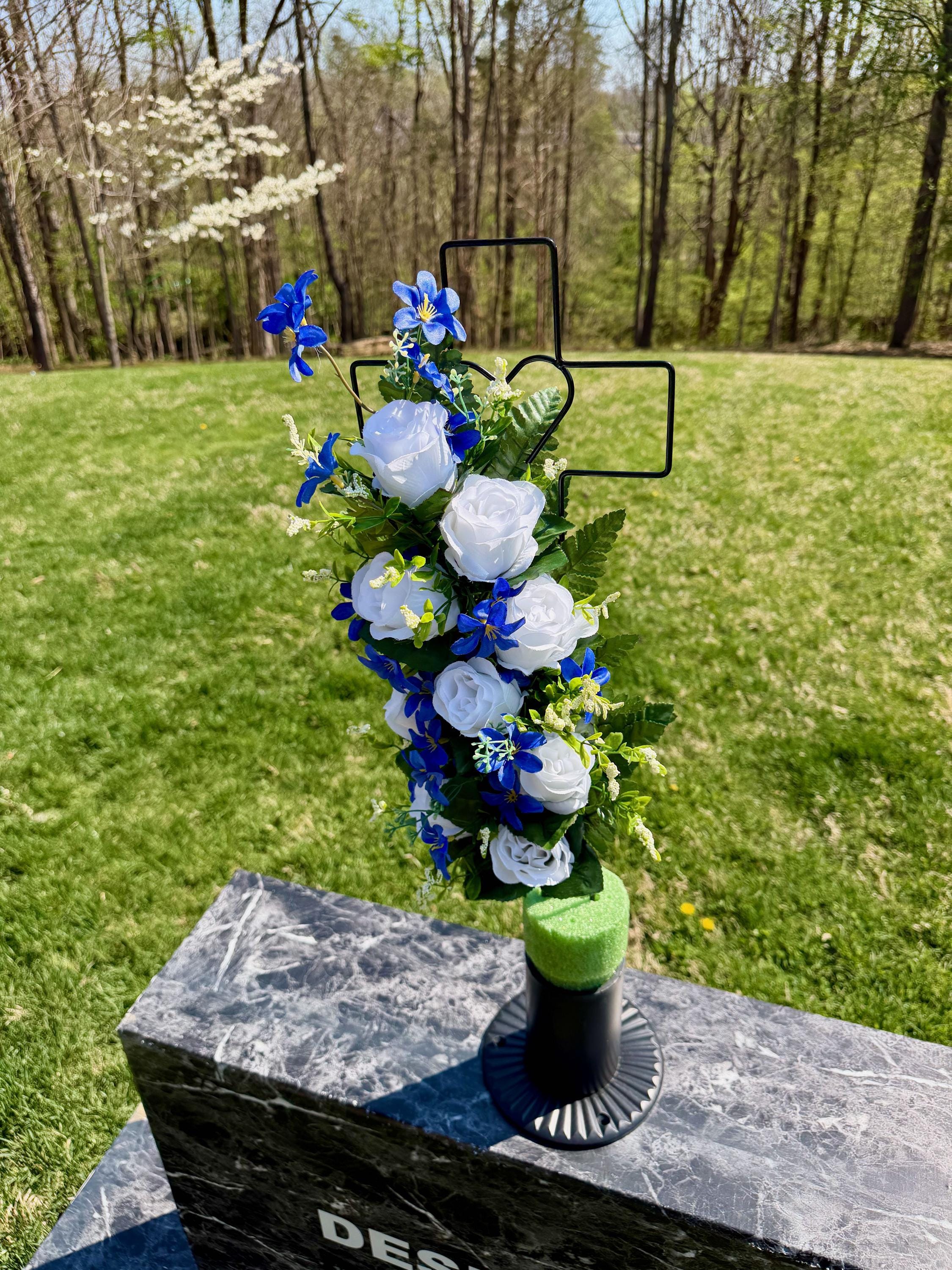 Blue and White Multi-Color Silk Flower Cemetery Reusable Cross - Grave Decoration - Memorial Arrangement
