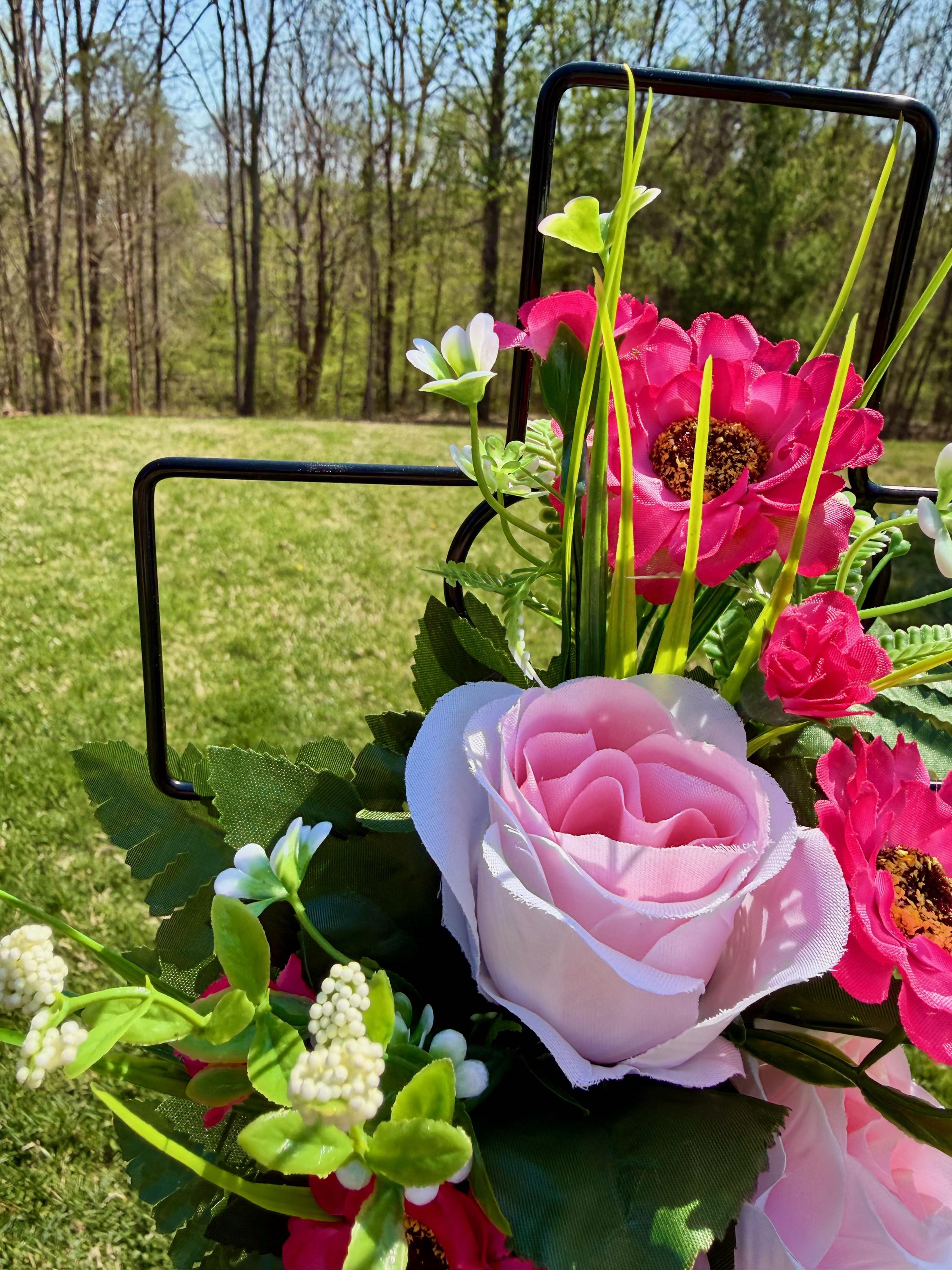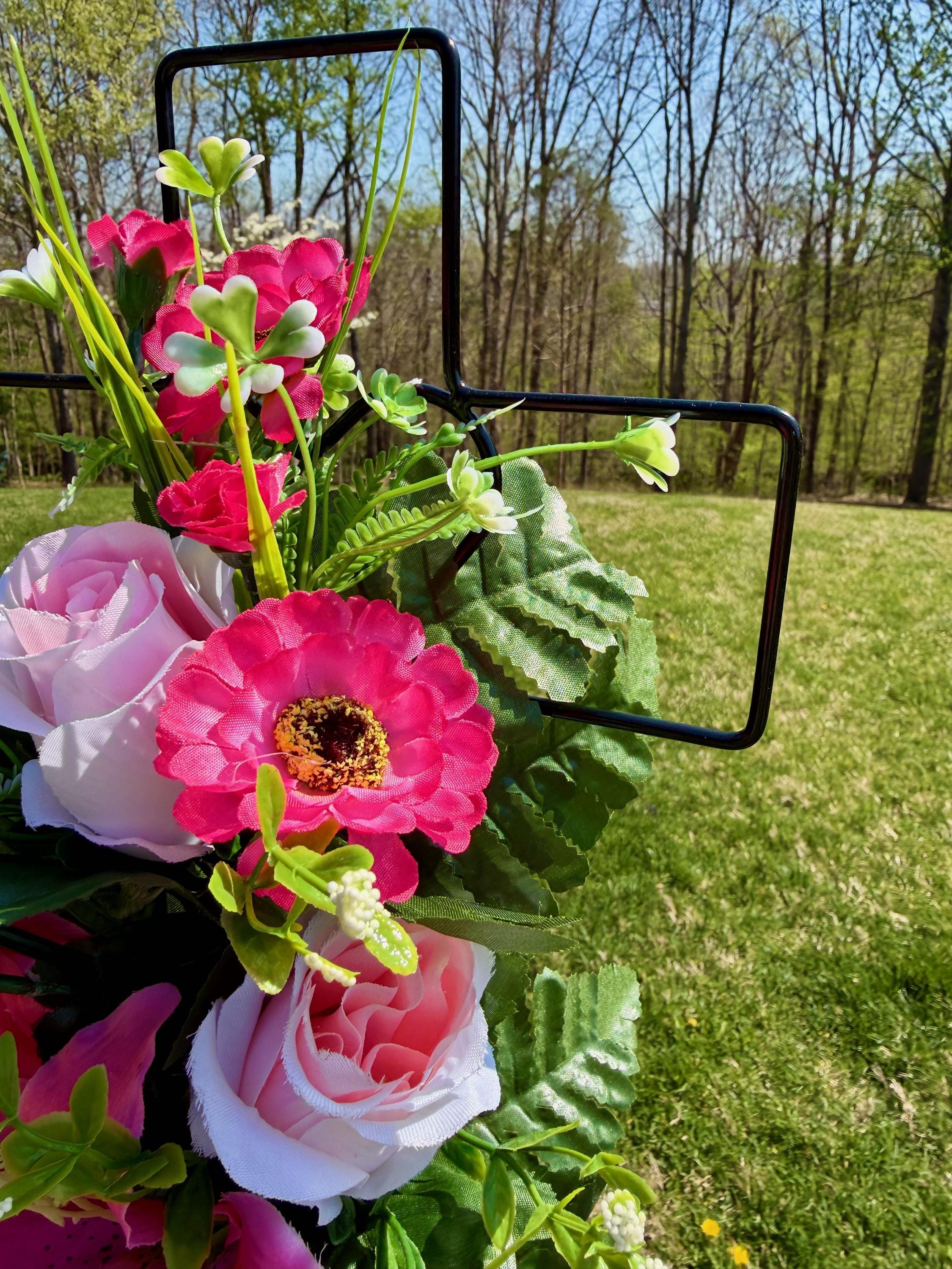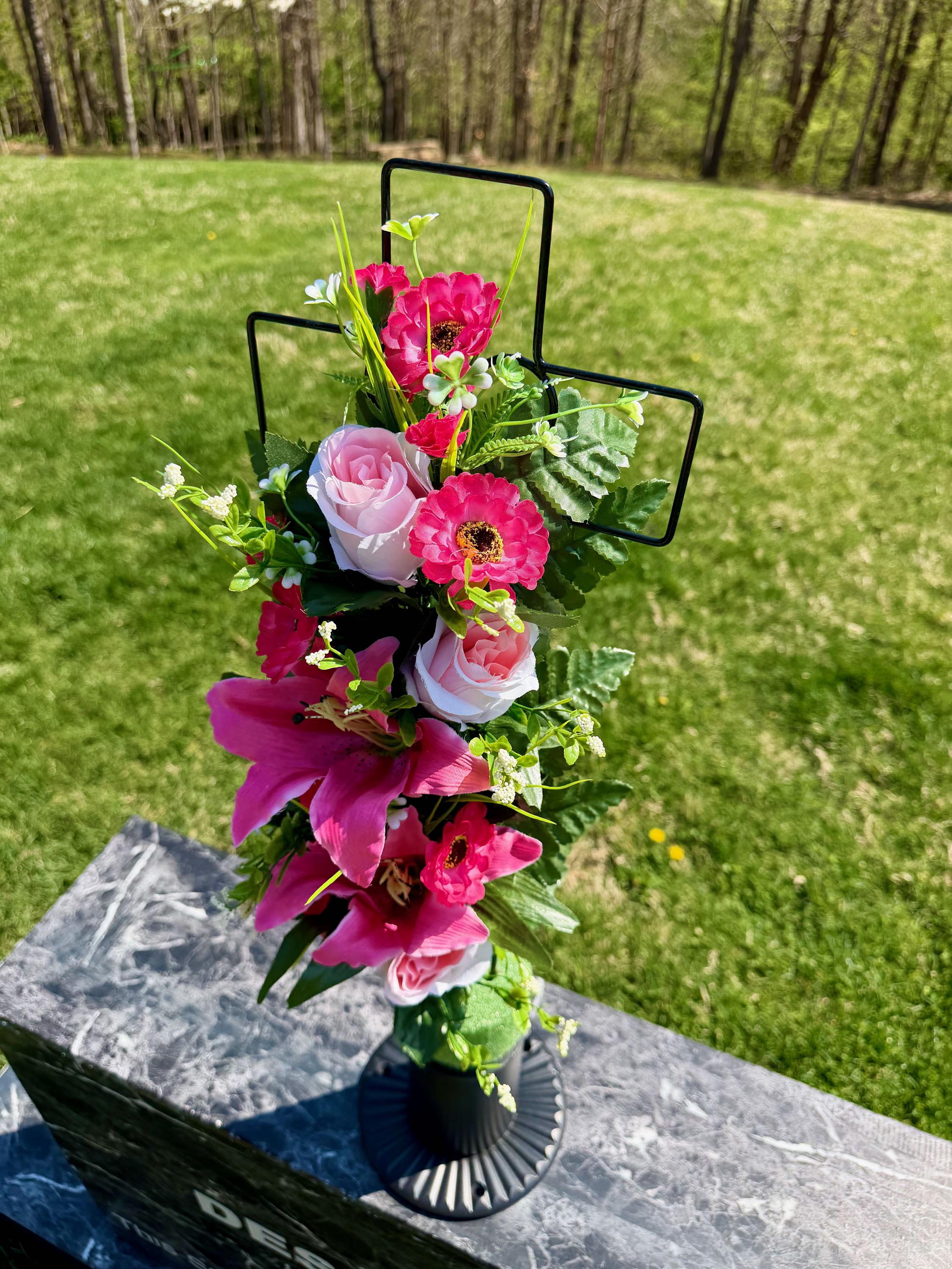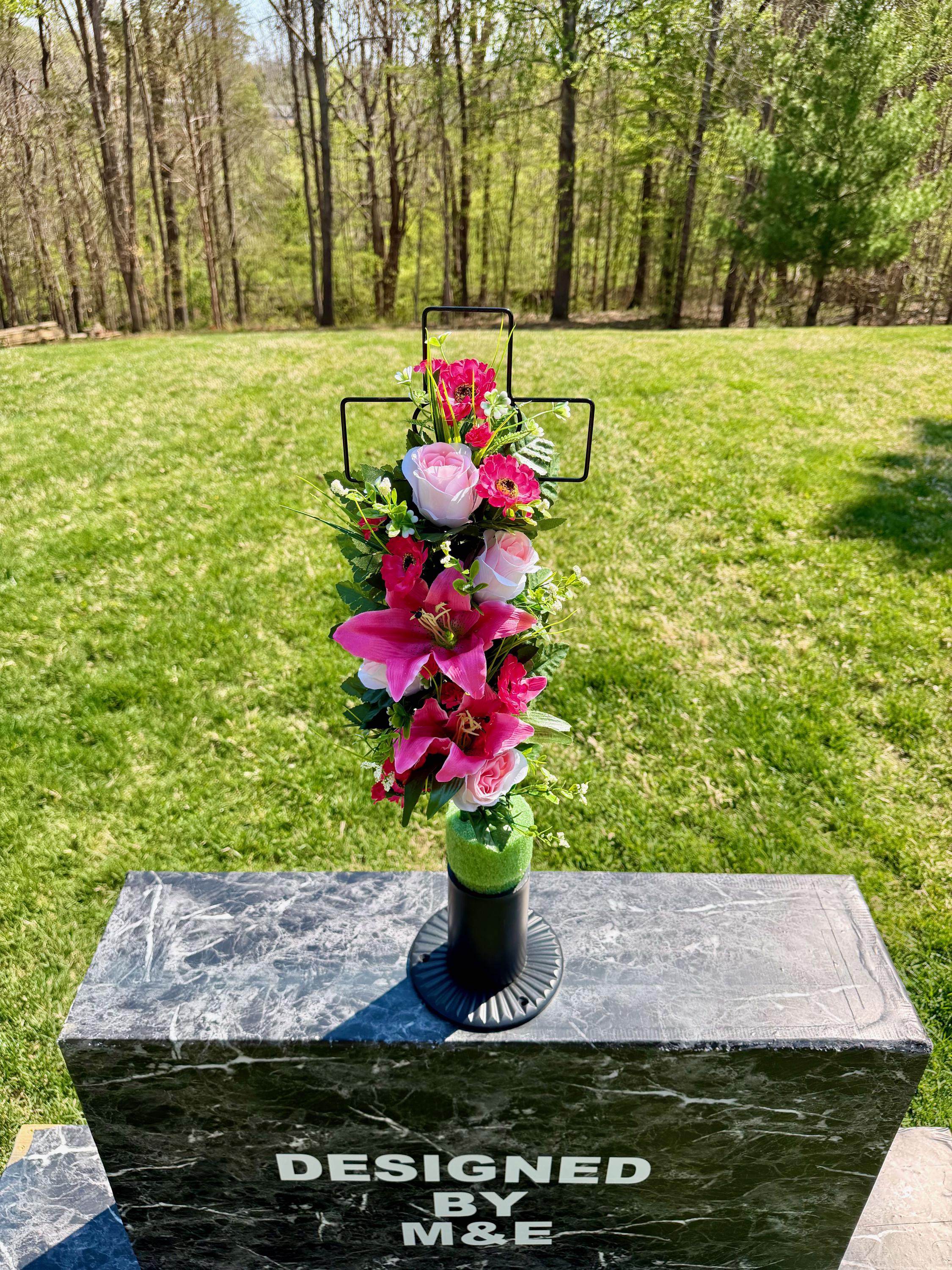 Pinks Silk Flower Cemetery Reusable Cross - Grave Decoration - Memorial Arrangement
