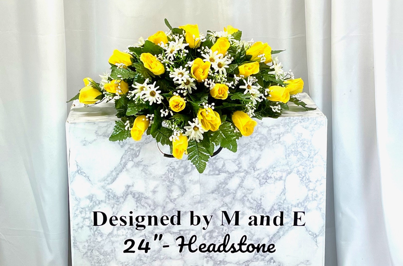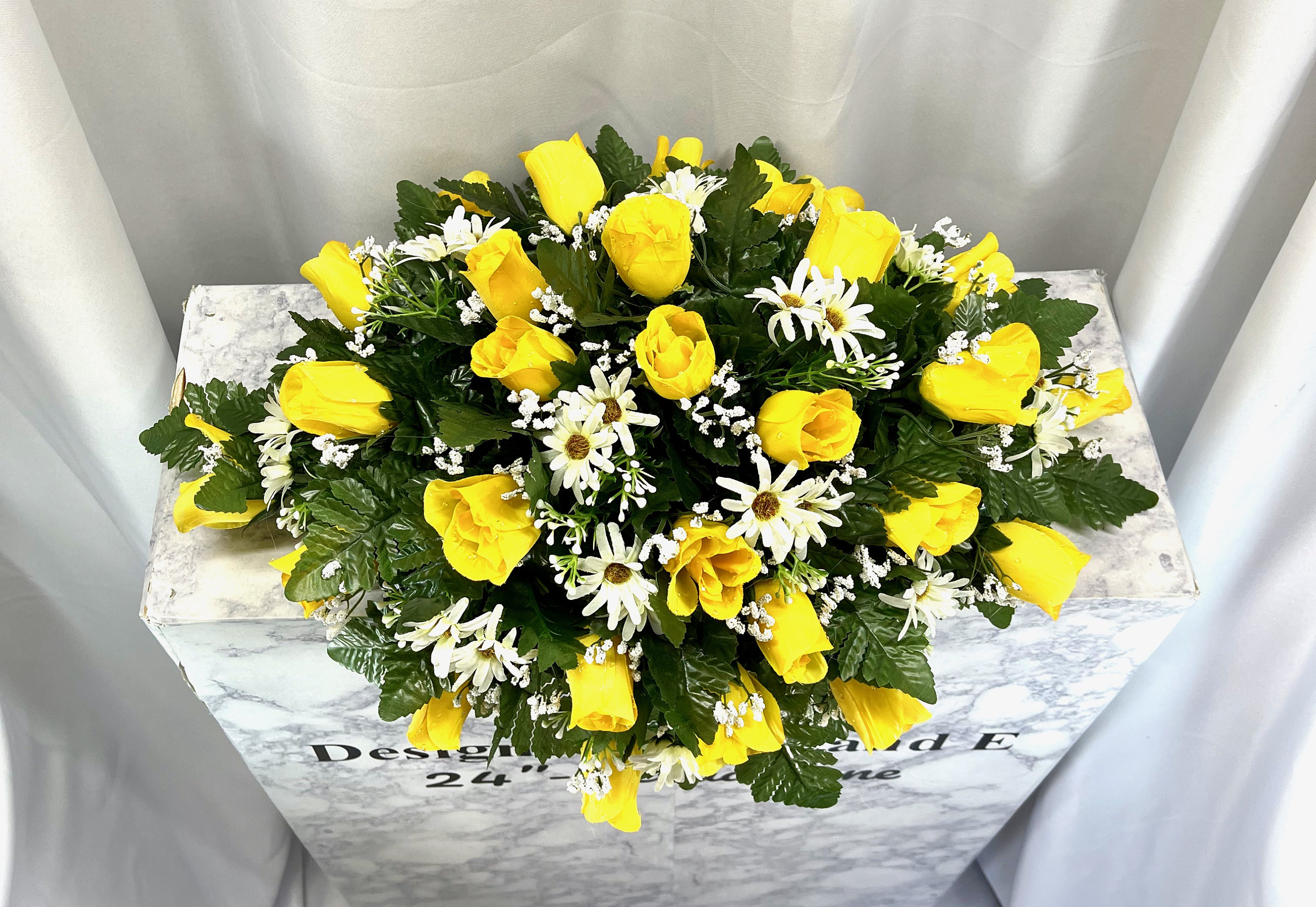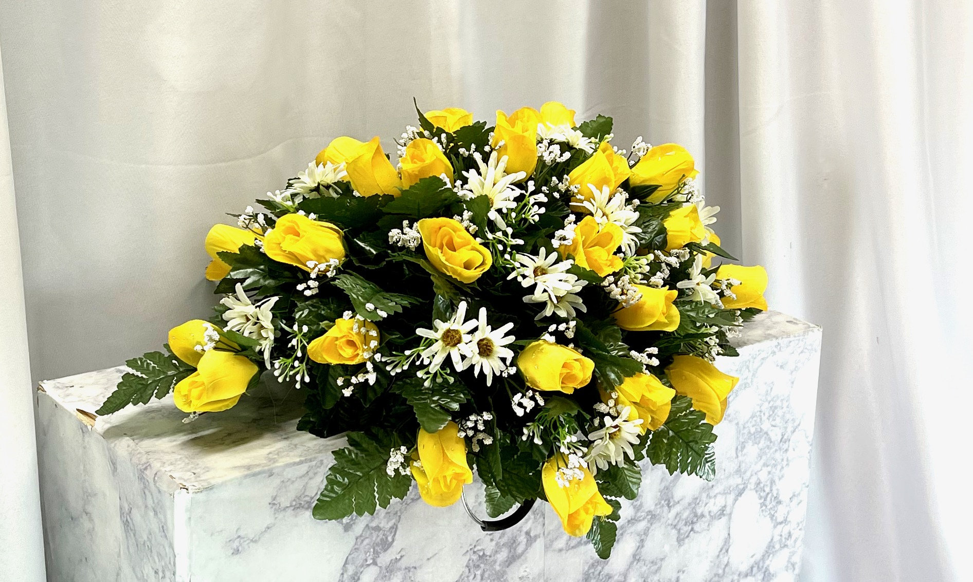 Yellow Cemetery Saddle, 22"-24", Cemetery Flower Arrangement, Flowers for Cemetery, Memorial Saddle, Sympathy, Headstone Flowers, Gravesite