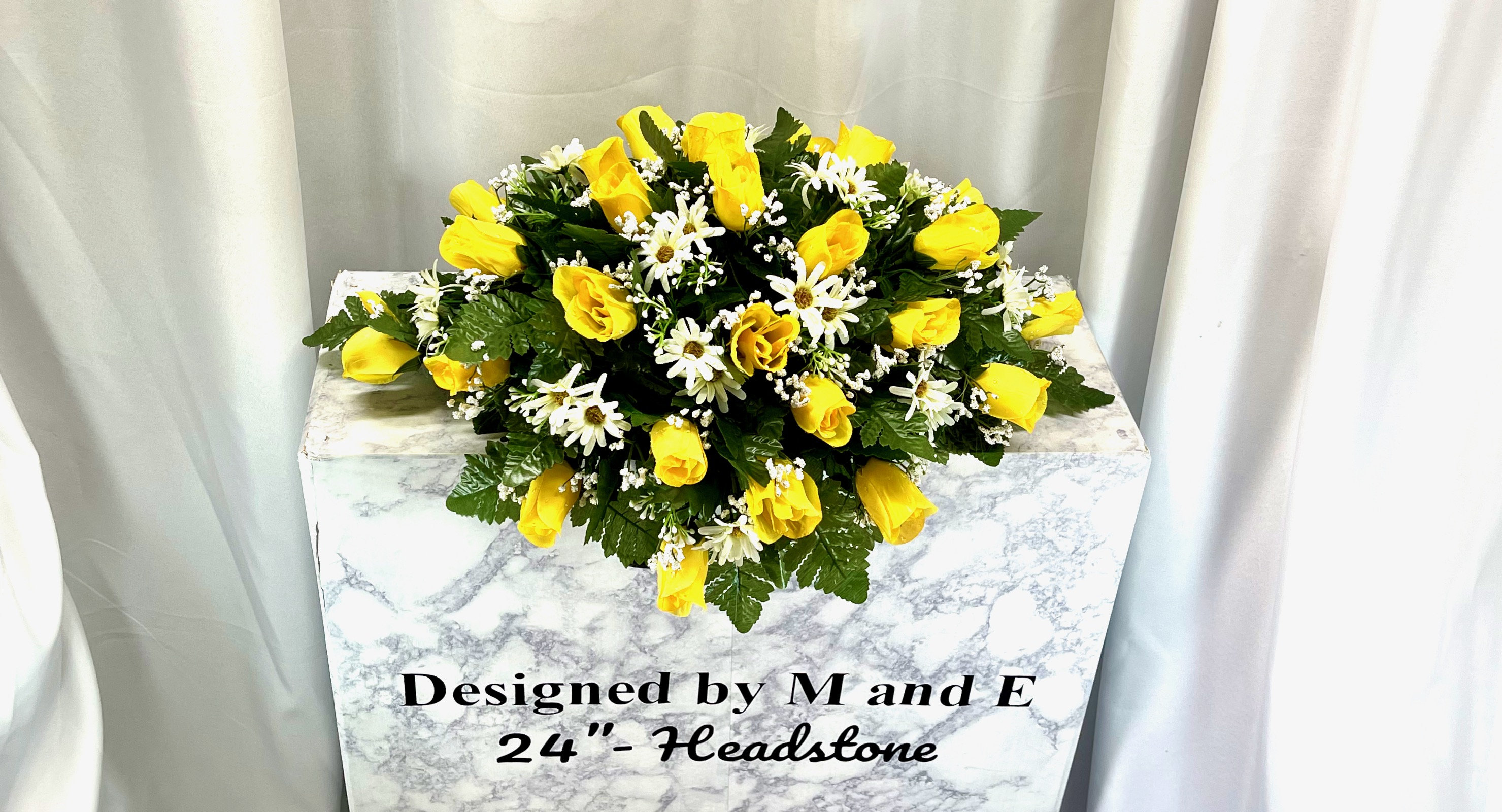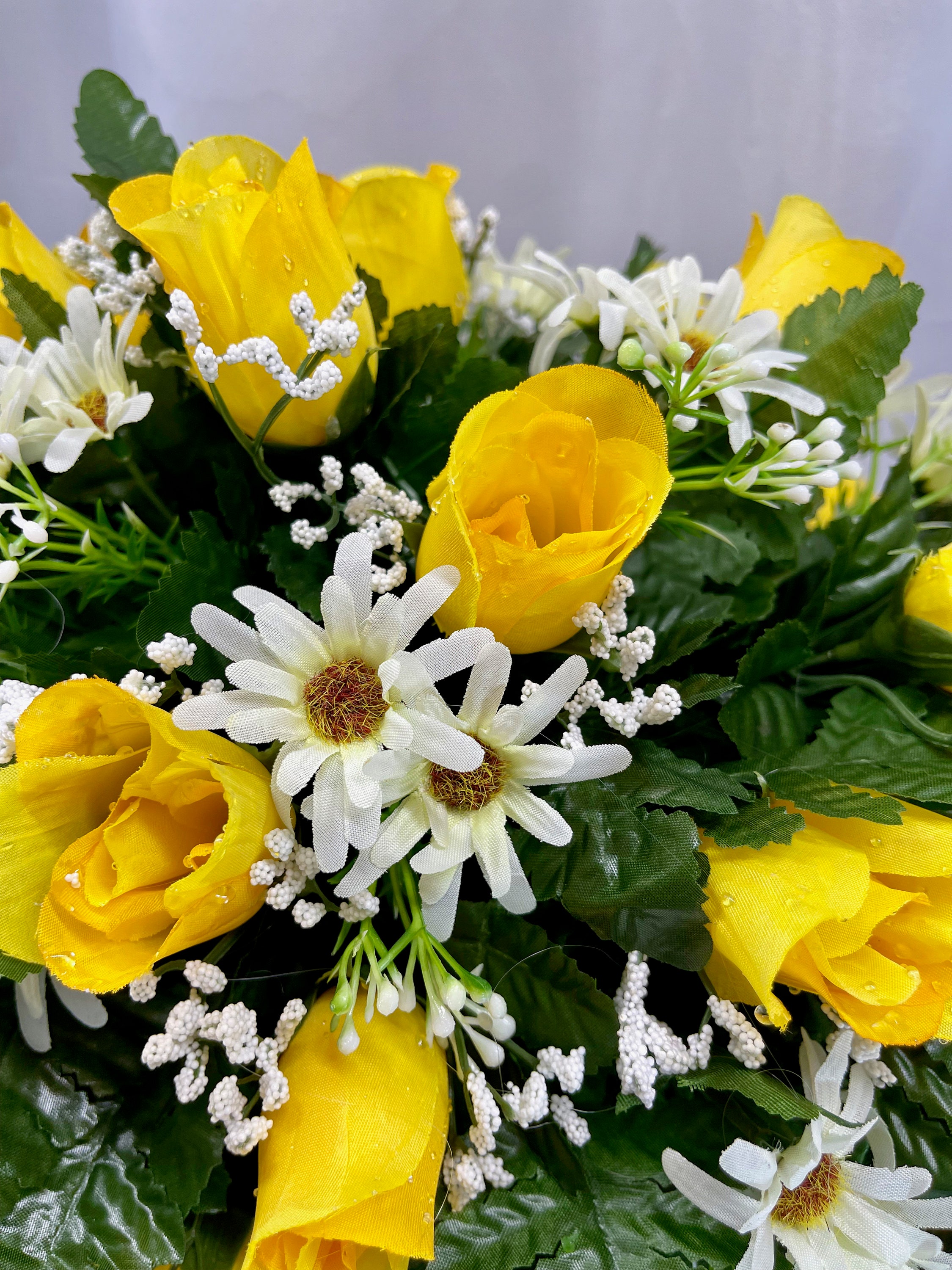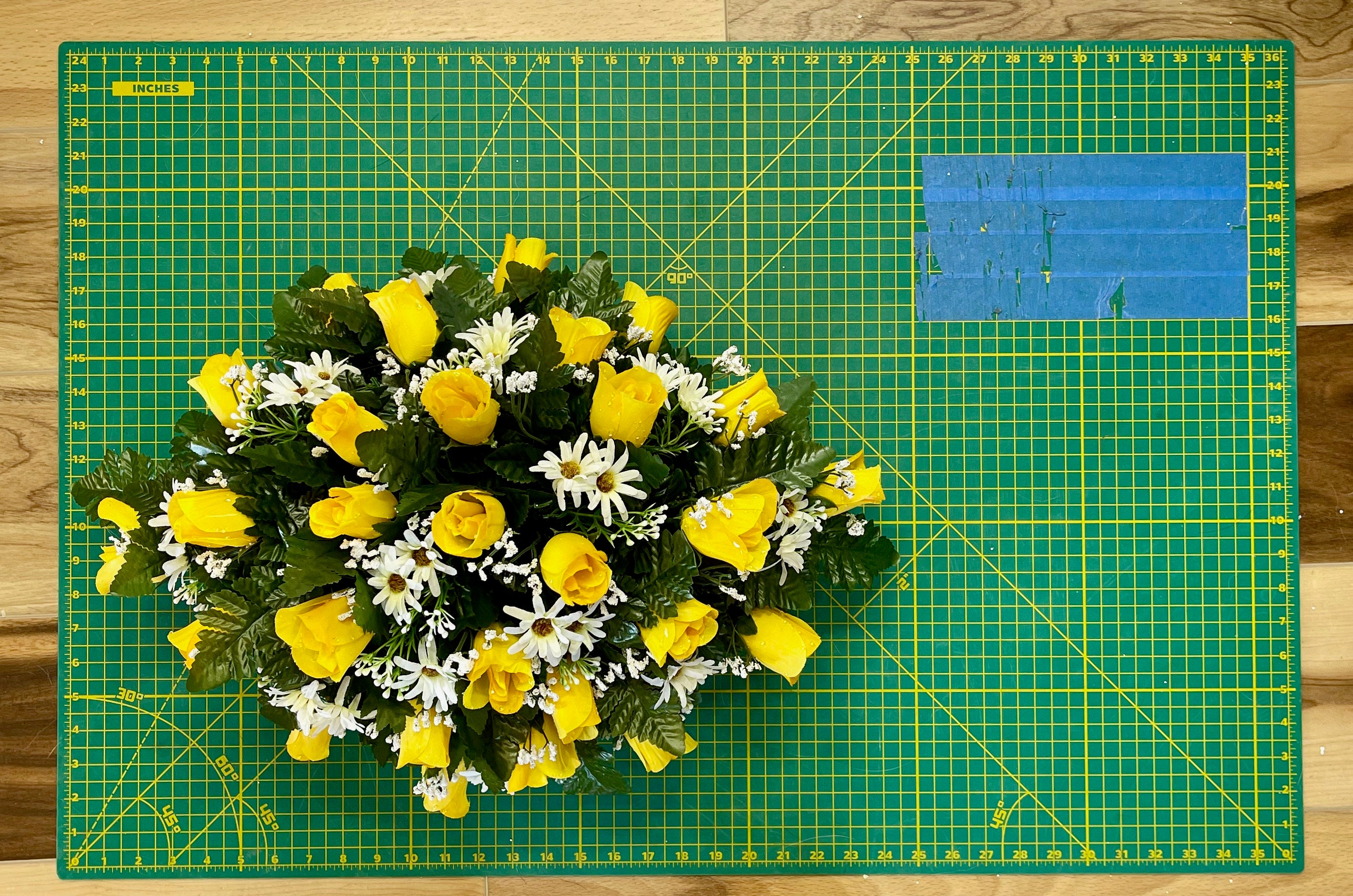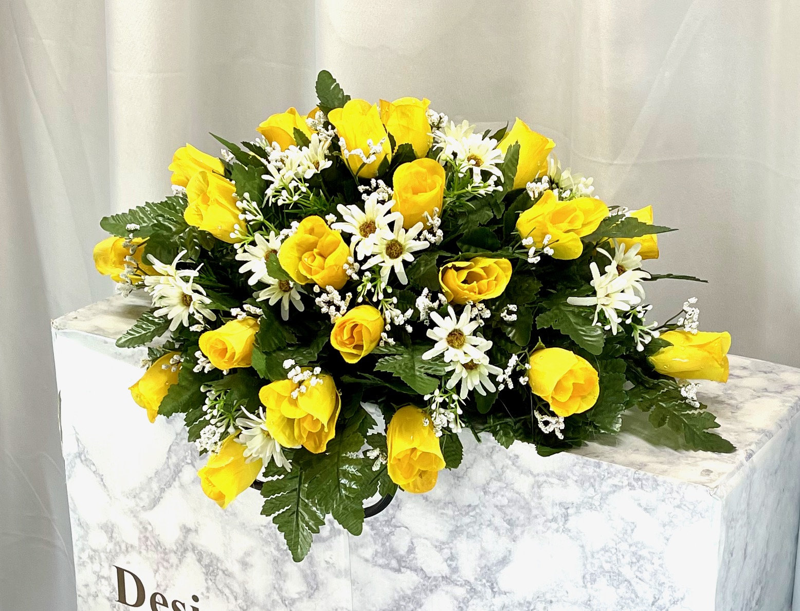 Yellow Cemetery Saddle, 22"-24", Cemetery Flower Arrangement, Flowers for Cemetery, Memorial Saddle, Sympathy, Headstone Flowers, Gravesite